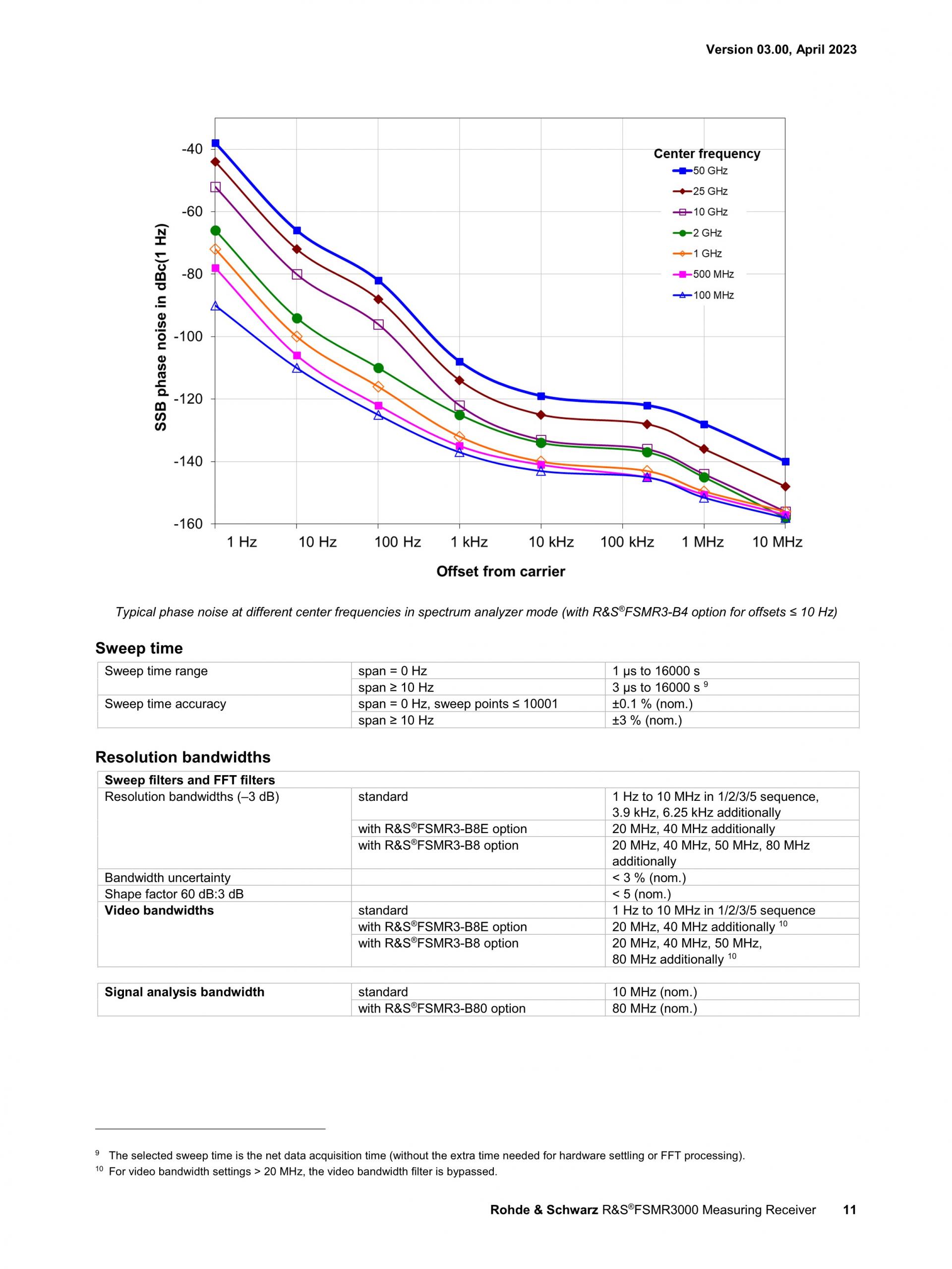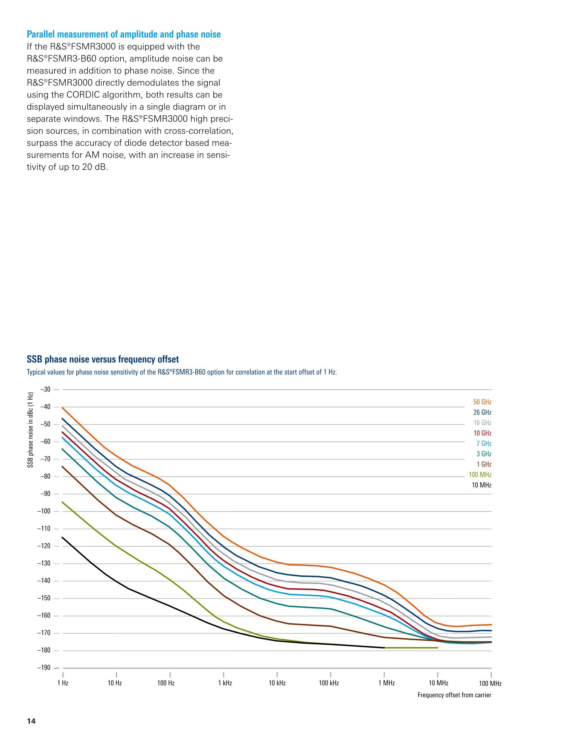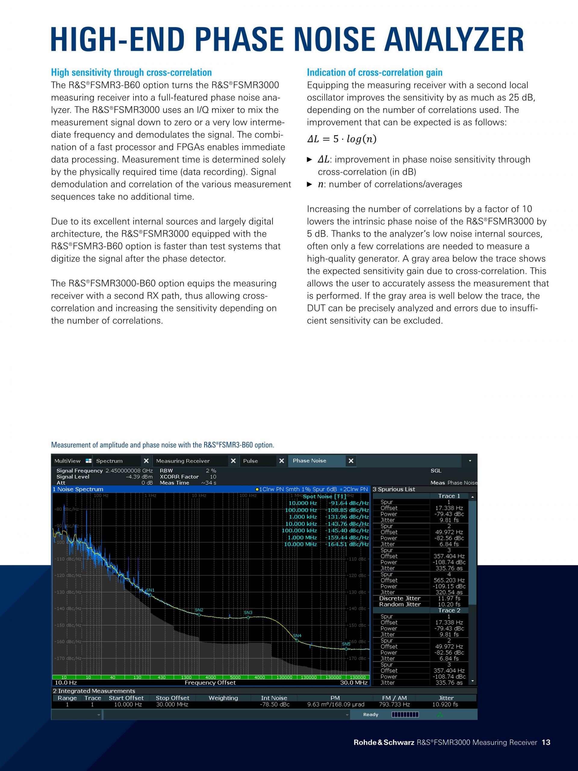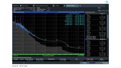- 교차 상관관계의 하이엔드 위상 노이즈 분석기, 10 kHz 오프셋(1 GHz)에서 typ. –163 dBc/Hz
