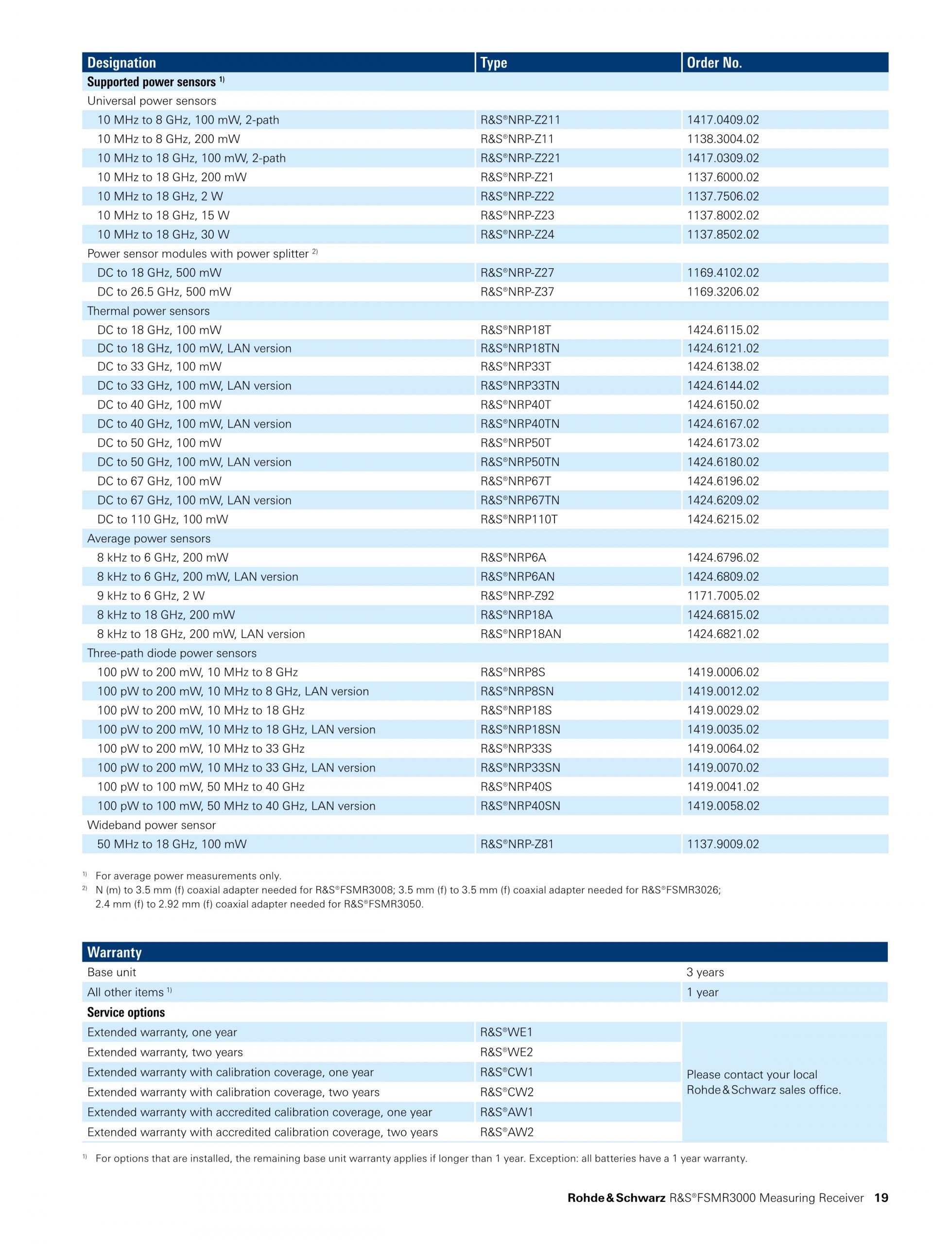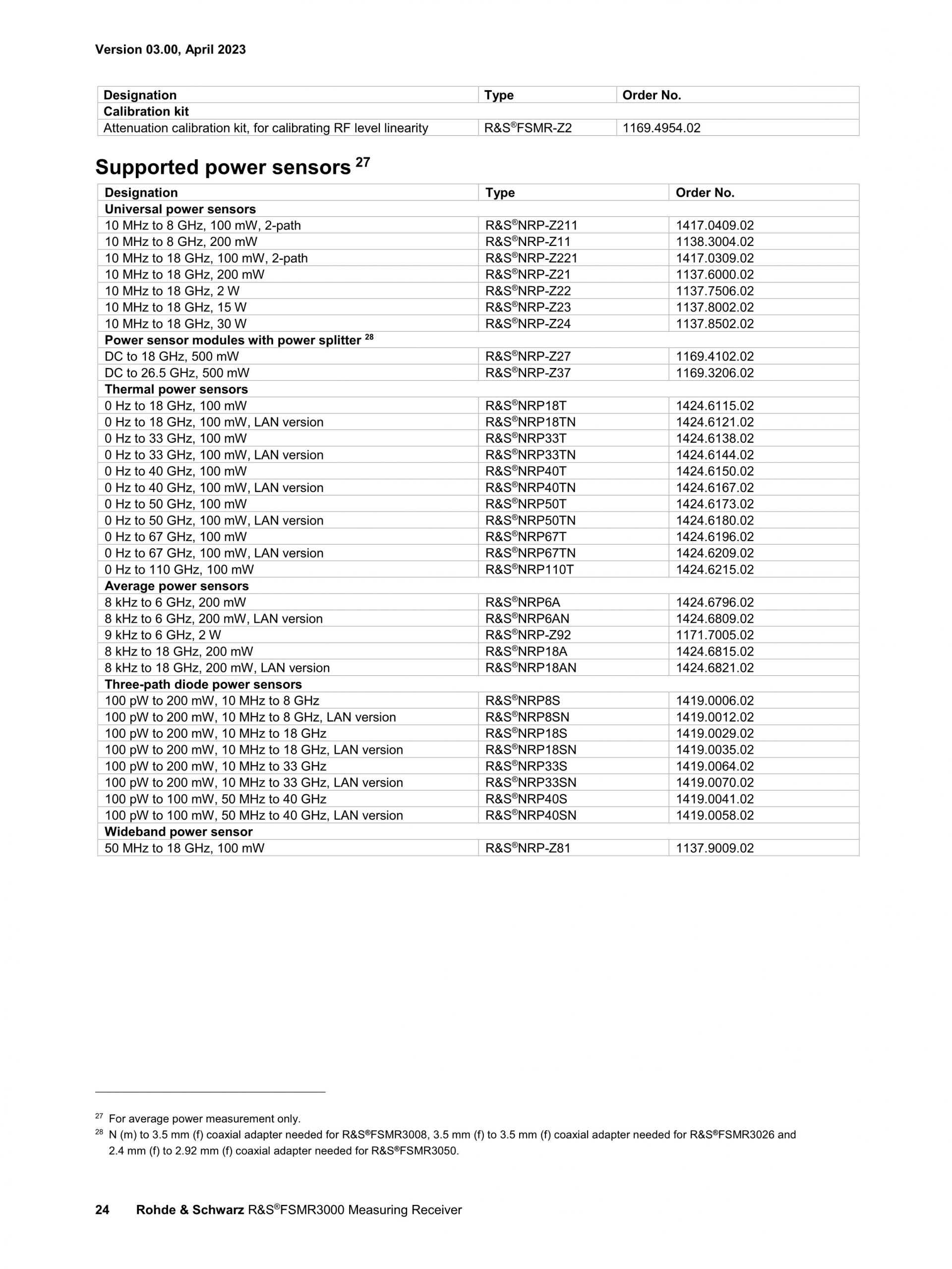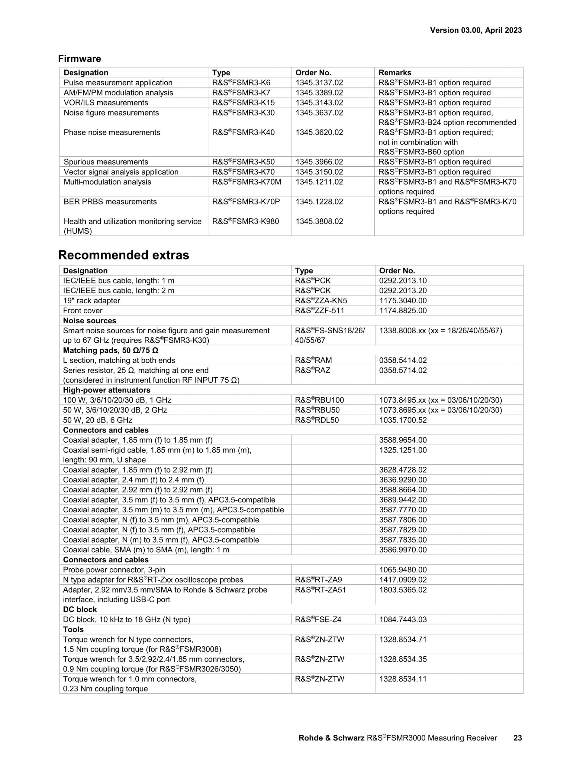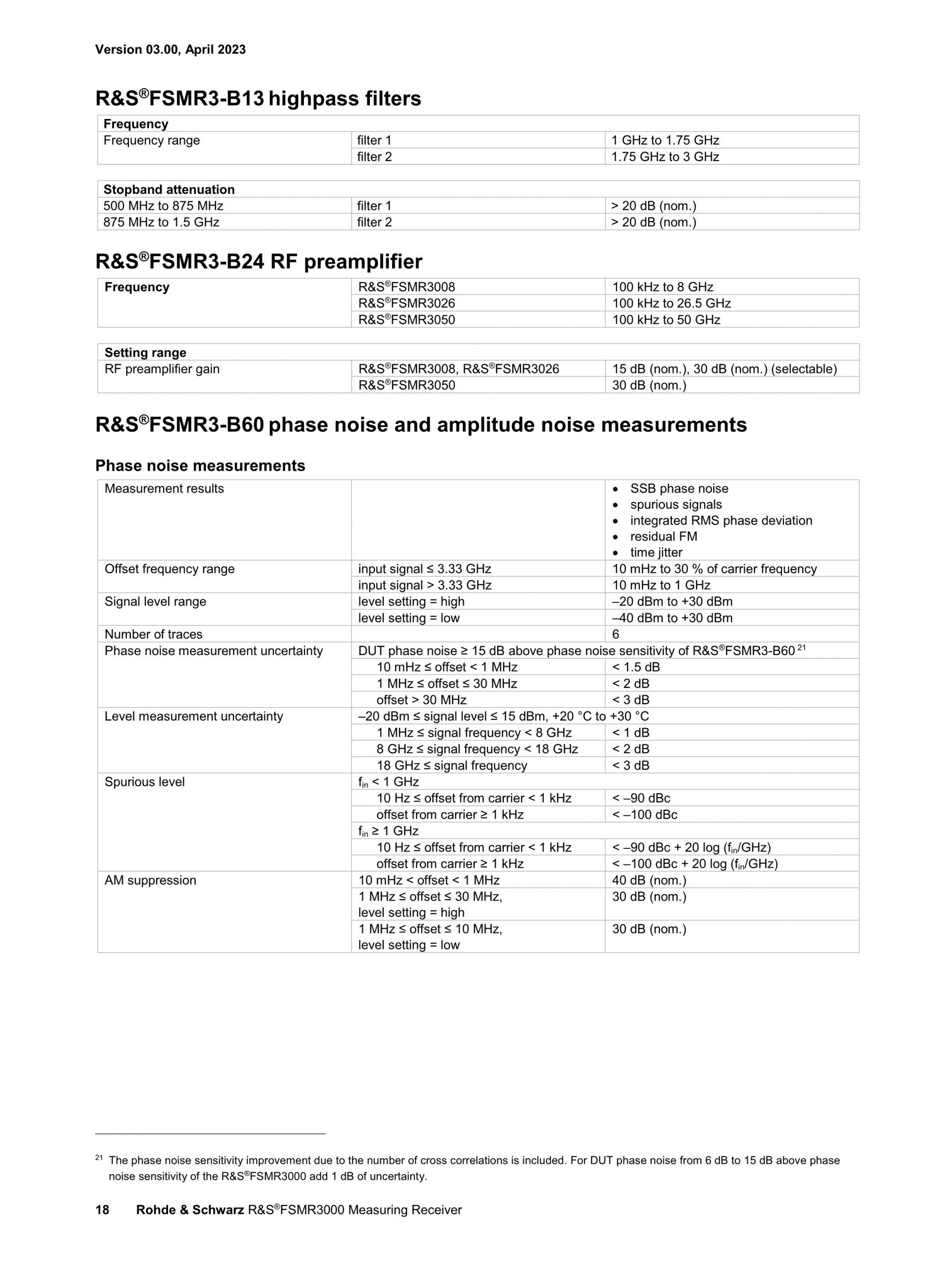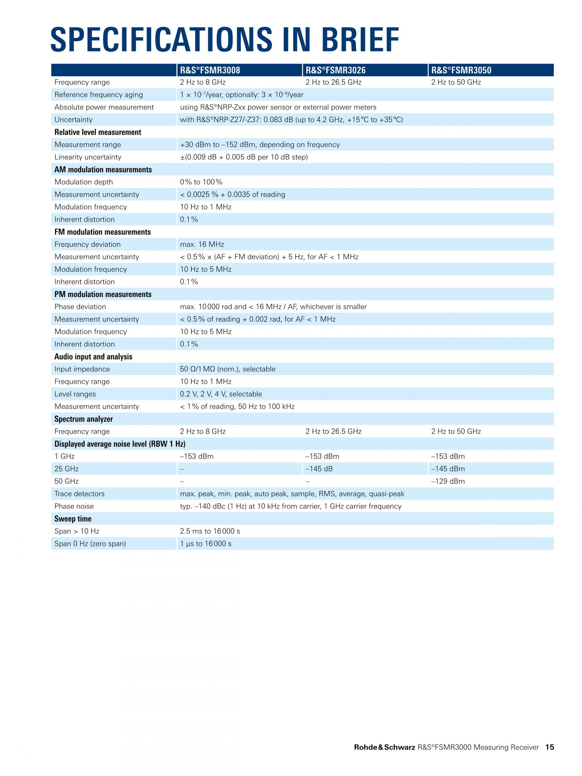 R&S®FSMR3000은 기기 한 대로 신호 발생기와 감쇠기를 교정하는 Microwave 측정 수신기입니다. 이 수신기에서 가장 중요한 기능은 TRFL(Tuned RF Level) 측정, 레벨 측정, 아날로그 변조, 스펙트럼 분석입니다. 그 외에도 R&S®FSMR3000에 스펙트럼 분석기를 이용한 표준 위상 노이즈 테스트를 보완하는 하이엔드 위상 노이즈 테스트를 위해 강력한 하드웨어를 장착할 수 있습니다. 또한, 디지털 및 아날로그 변조 신호 분석, 80 MHz 분석 대역폭, 펄스 및 VOR/ILS 신호 분석 기능을 제공합니다. R&S®FSMR은 교정의 복잡성을 줄이기 위해 싱글 박스 기기로 설계되었습니다.