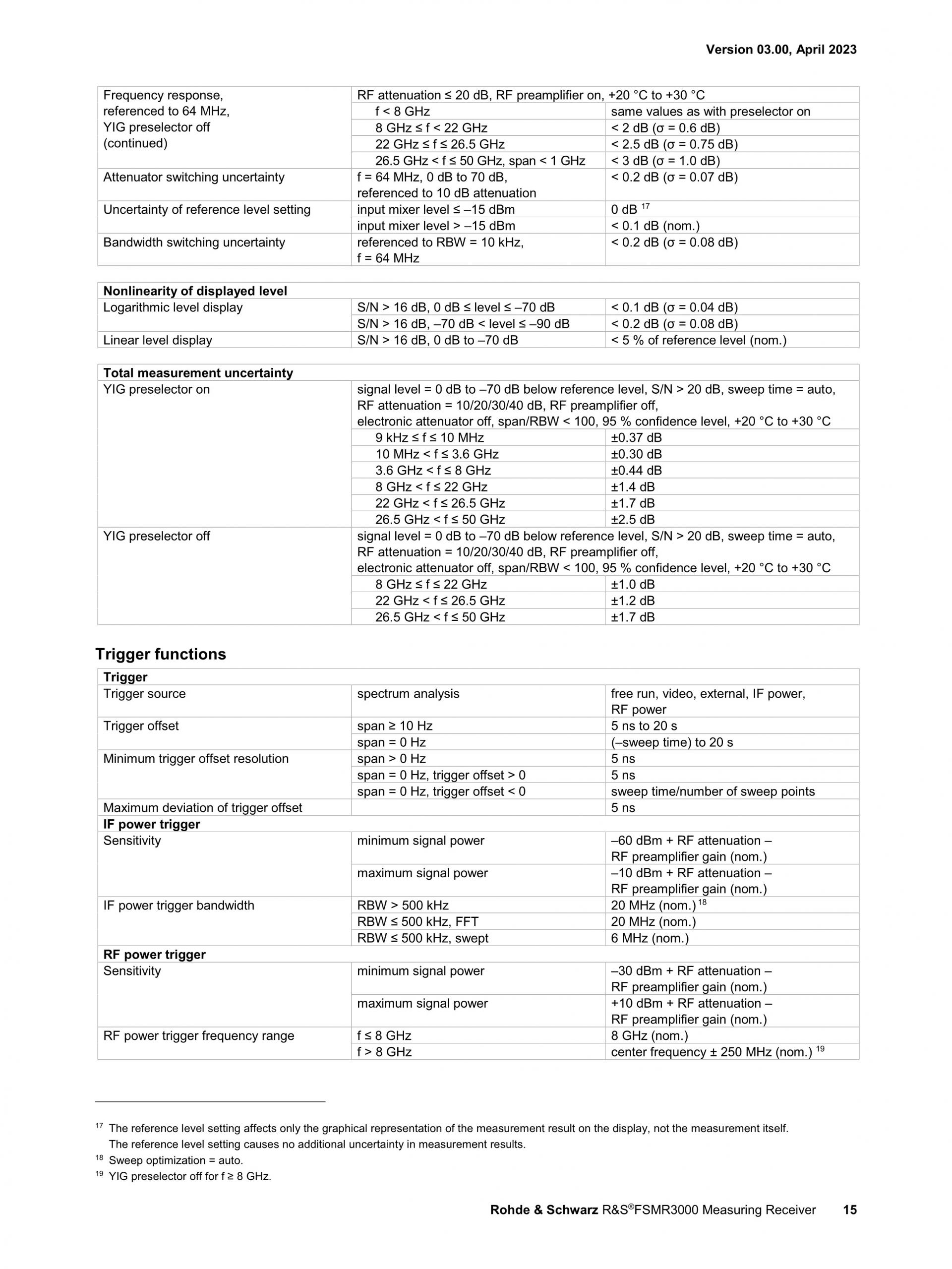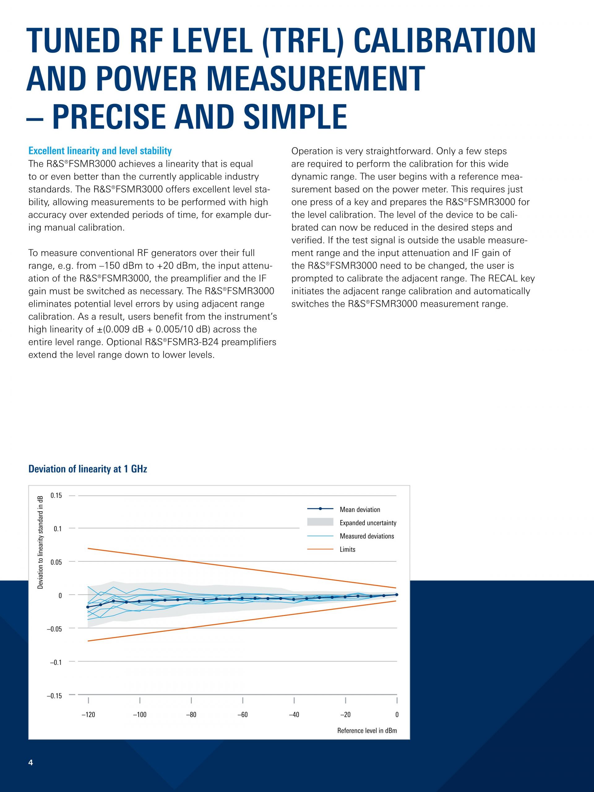 R&S®FSMR3000은 인접 대역 보정을 이용하여 레벨 오류의 가능성을 제거합니다. 따라서 전체 레벨 범위에서 (0.009 dB ± 0.005 dB/10 dB 스텝) 미만의 높은 선형성을 활용할 수 있습니다. |