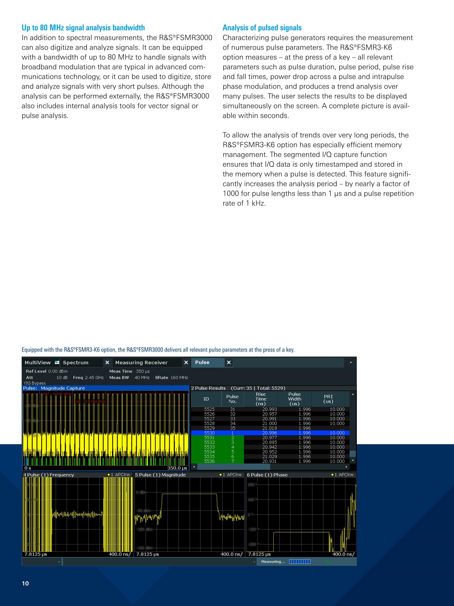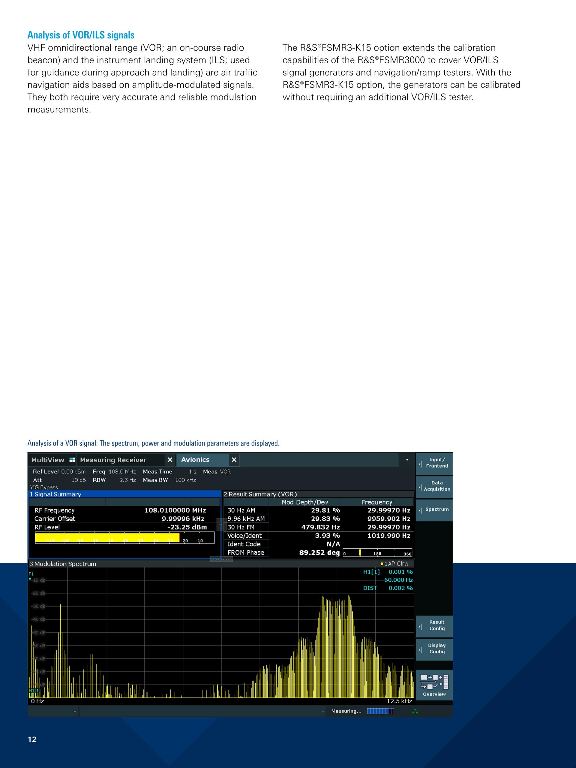 측정 수신기와 함께 R&S®FSMR3-B1 옵션을 사용할 경우 고급 신호 및 스펙트럼 분석기로 활용하여 TOI, 고차 하모닉, 노이즈 지수 또는 위상 노이즈를 측정할 수 있습니다. 스펙트럼 측정 외에도 80 MHz 디지털 변조 신호, 펄스 또는 VOR/ILS 신호를 분석할 수 있습니다. |