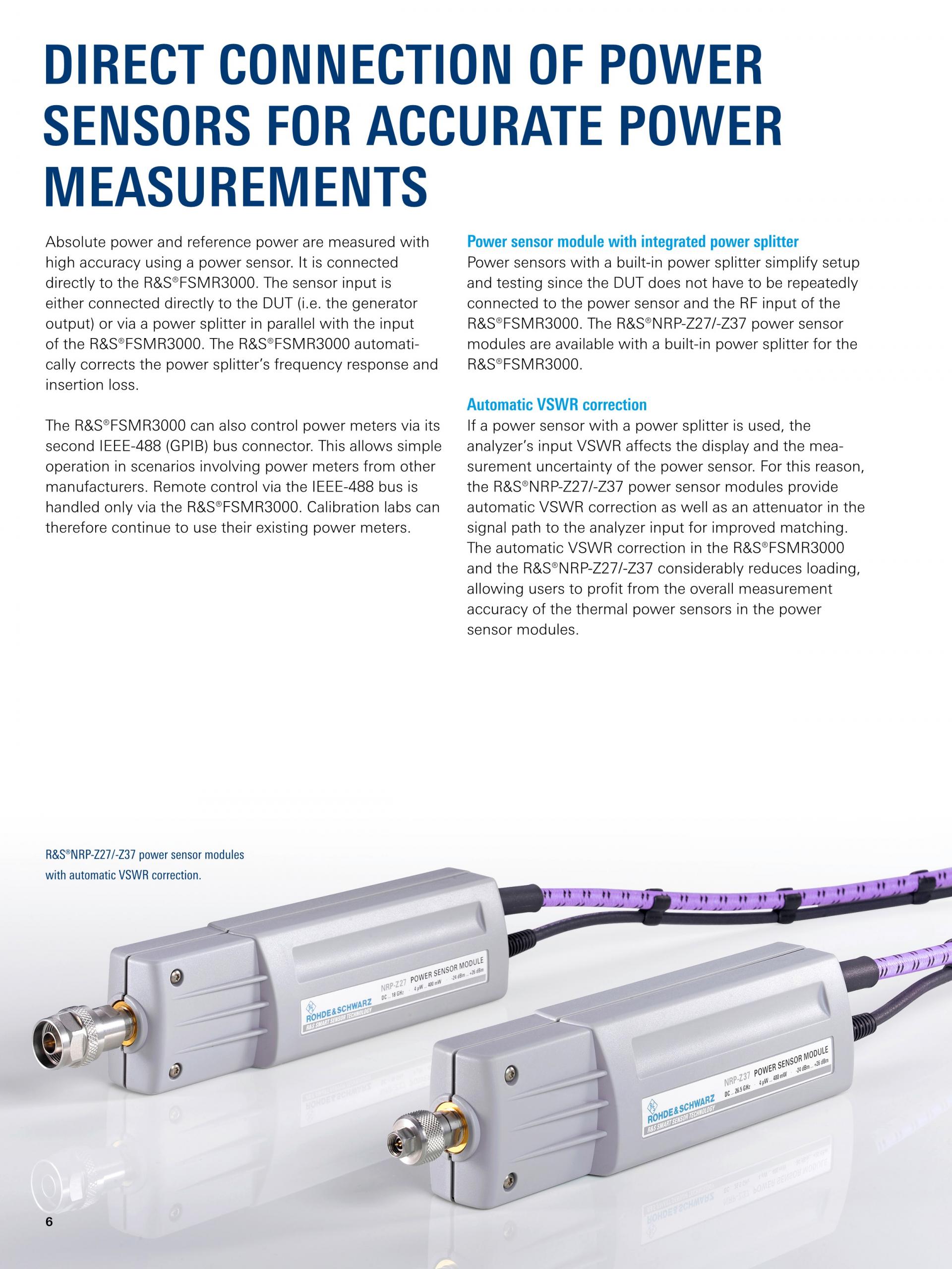 R&S®NRP50T는 DC부터 50 GHz까지 전체 주파수 대역을 지원하며 파워 센서에 전력 분배기가 탑재되어 있어 DUT를 파워 센서와 R&S®FSMR3000의 RF 입력에 반복적으로 연결하지 않아도 되므로 셋업과 테스트를 간단히 수행할 수 있습니다. R&S®NRP-Z27/-Z37 Power Sensor Module은 R&S®FSMR3000용 기본 탑재 전력 분배기와 함께 사용할 수 있습니다. |
