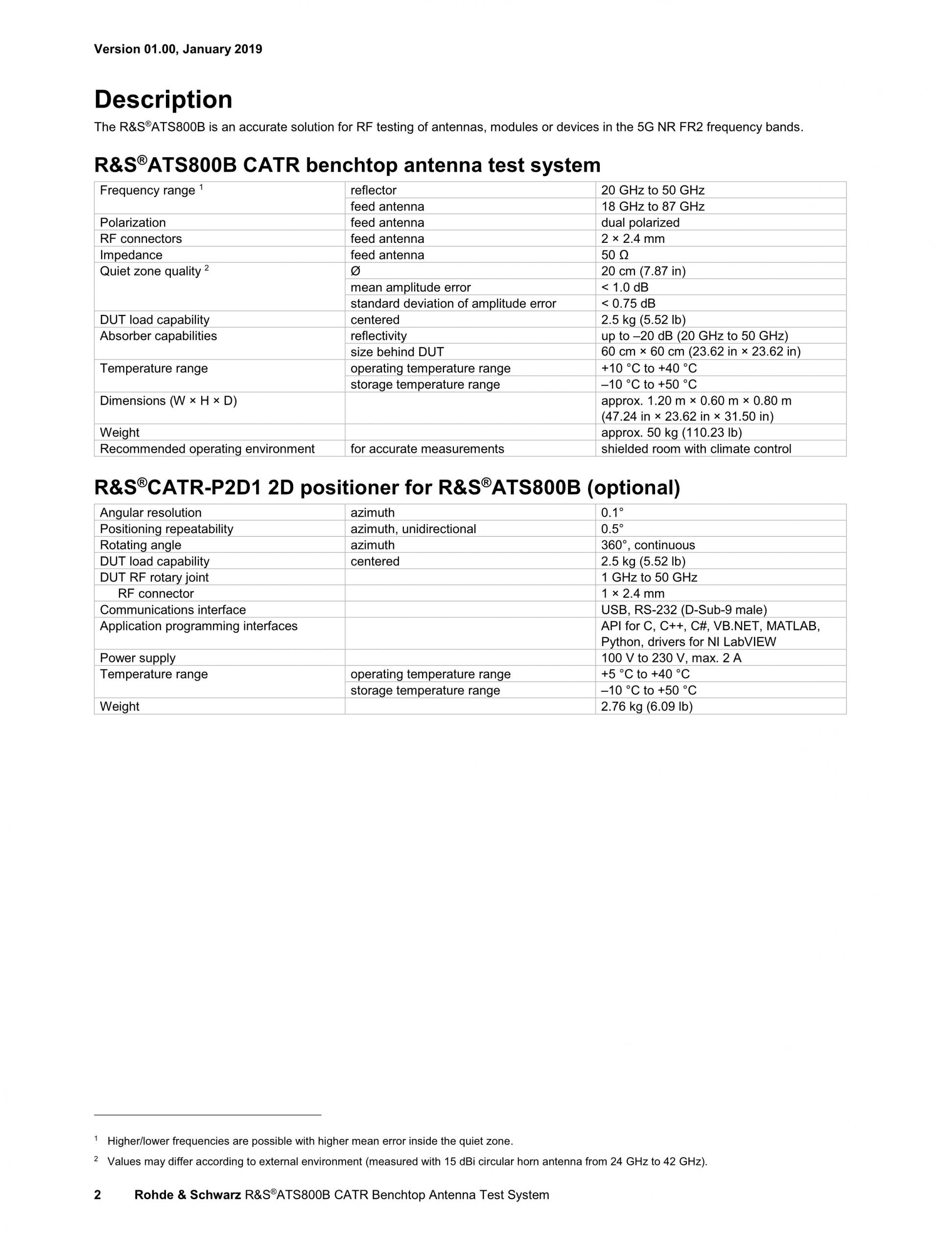 R&S®ATS800B는 초소형 벤치탑 CATR Far-field 안테나 테스트 시스템입니다. |