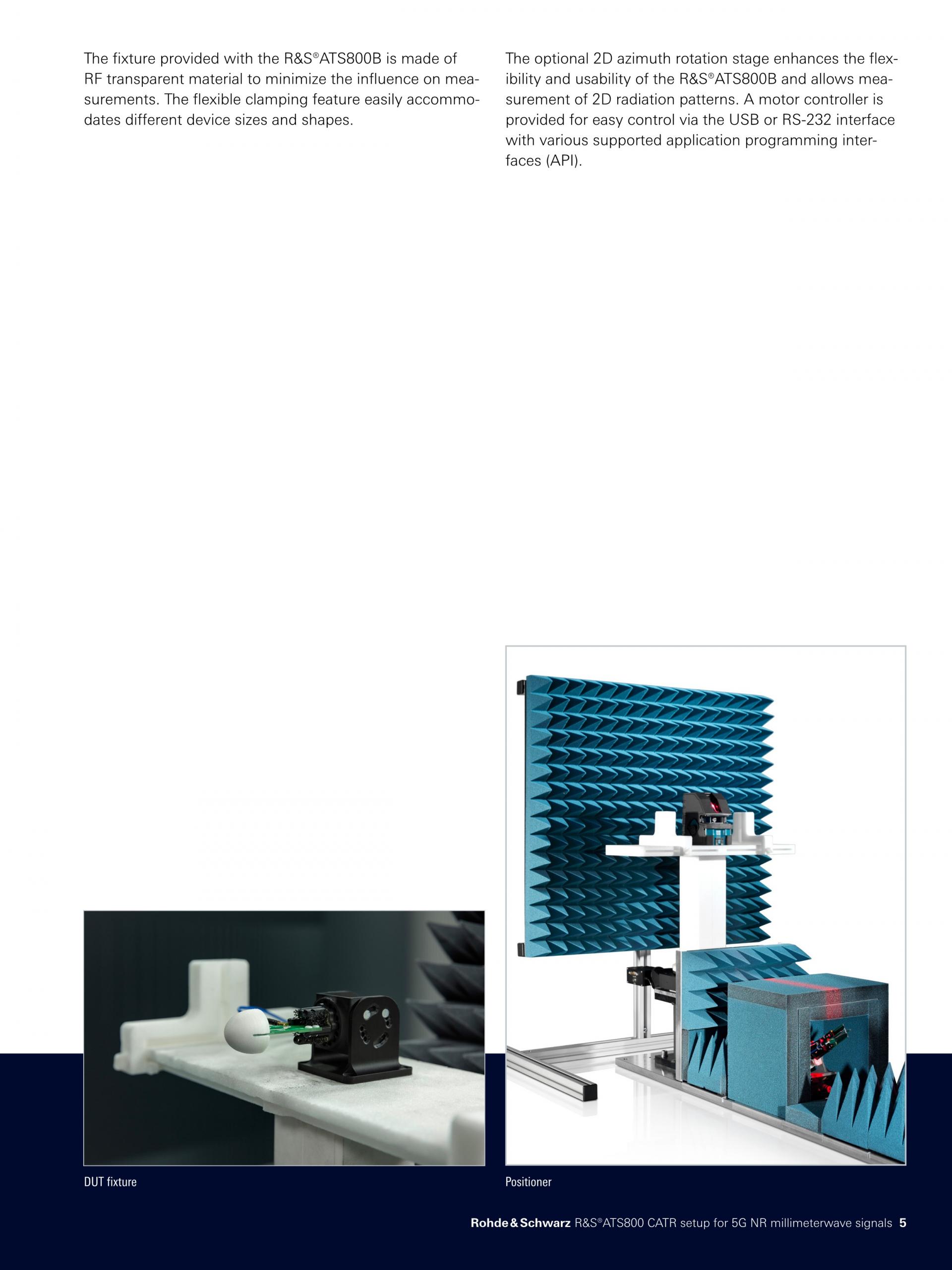 R&S®ATS800B를 포함하는 로데슈바르즈 테스트 시스템은 실험환경에서 빠르고 원활한 측정과 mmWave 대역에서 5G 기기의 안테나 성능과 특성을 파악하기 위한 최적화된 기능을 제공하는 원스톱 솔루션입니다. |