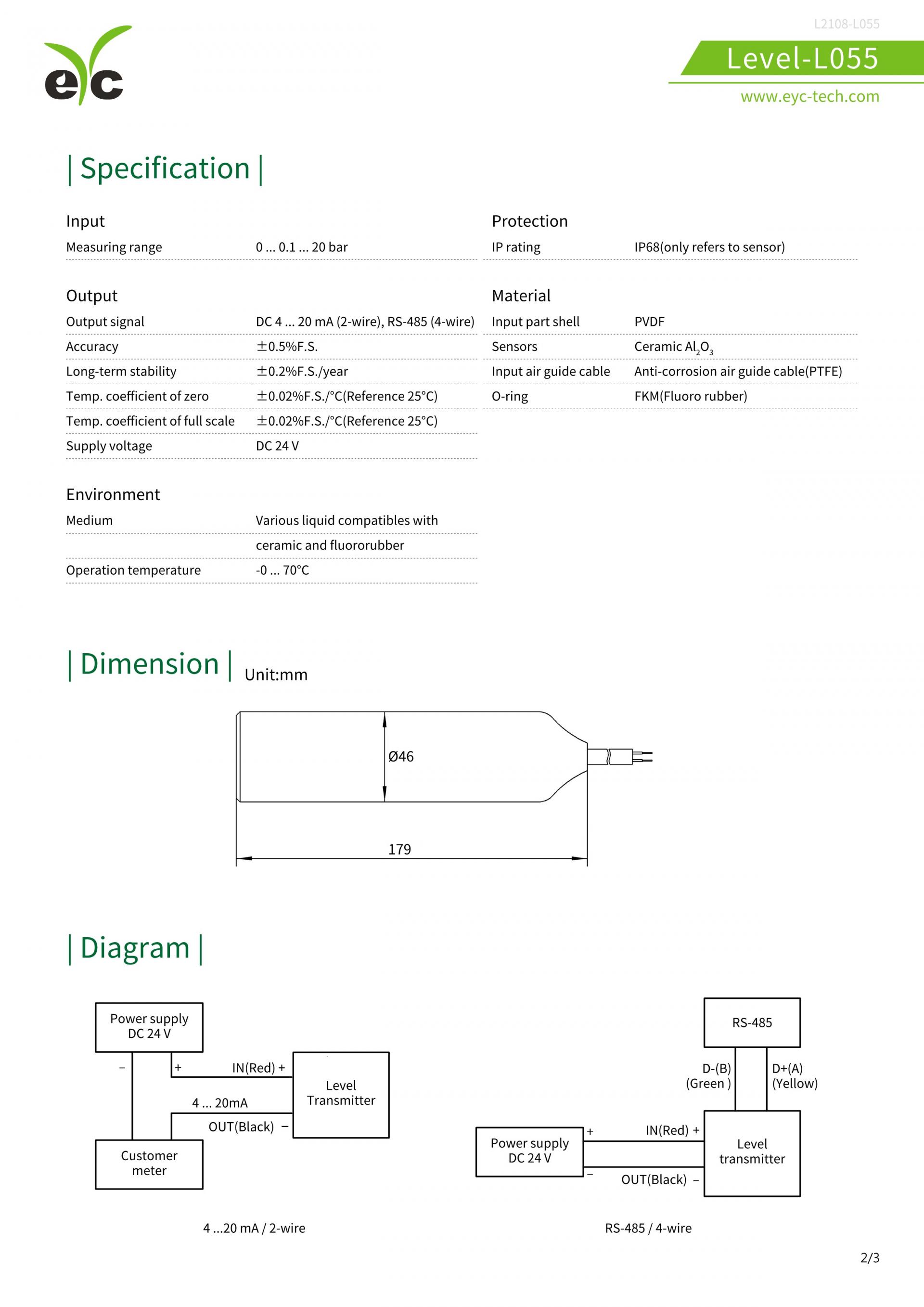 EYC-TECH L055 산-알칼리 저항 액체 레벨 트랜스미터
