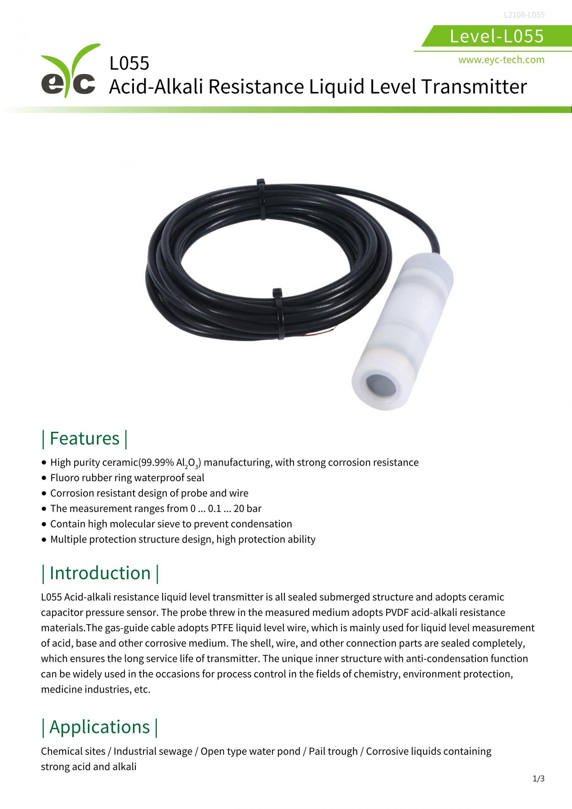EYC-TECH L055 Acid-Alkali Resistance Liquid Level Transmitter