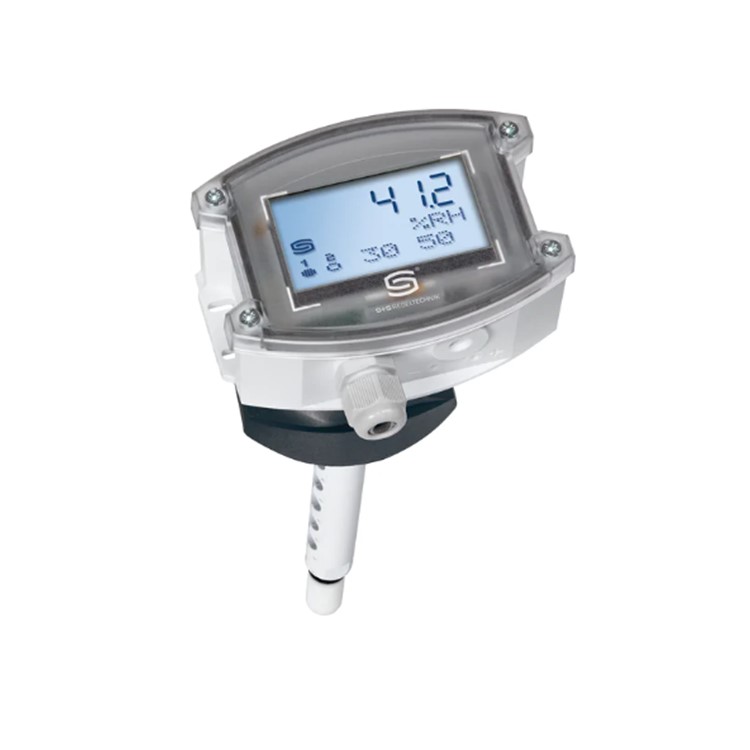 전자 HYGRASREG® KHT-30 덕트 항습기 및/또는 덕트 온도 조절기(1개의 연속 출력과 2개의 스위칭 출력, 조정 가능한 스위칭 임계값 및 실제 습도 및/또는 실제 온도를 나타내는 디스플레이(정확도 등급 ±2.0% rH)). 설정점은 상대 습도 및/또는 온도에 할당될 수 있습니다. 센서 장치는 환기 및 공조 덕트, 실험실, 생산 시설, 기후 테스트 챔버, 실내 수영장, 온실 등의 상대 습도(가습 및 제습 장비) 및/또는 온도(난방 및 냉각 시스템)를 제어하고 모니터링하는 역할을 합니다.