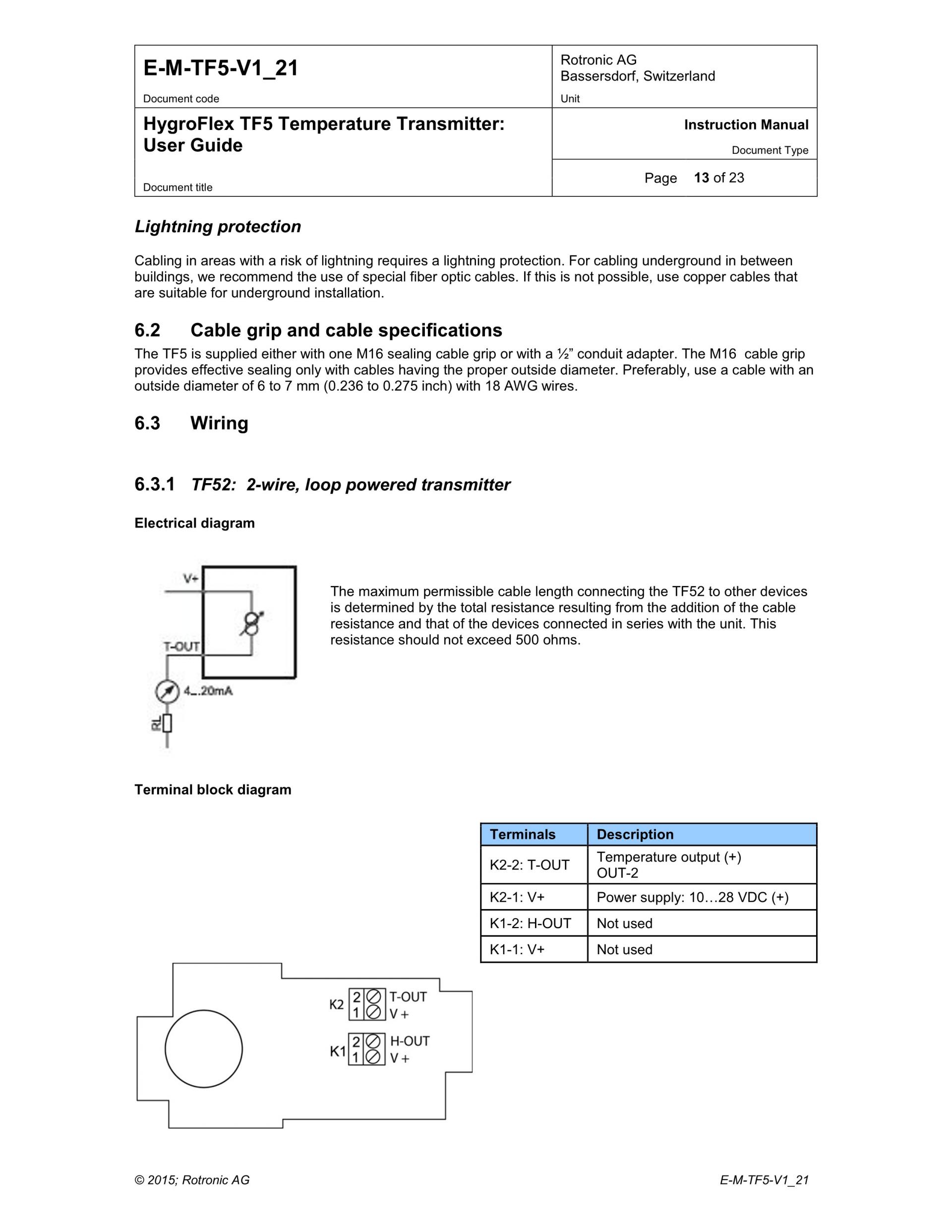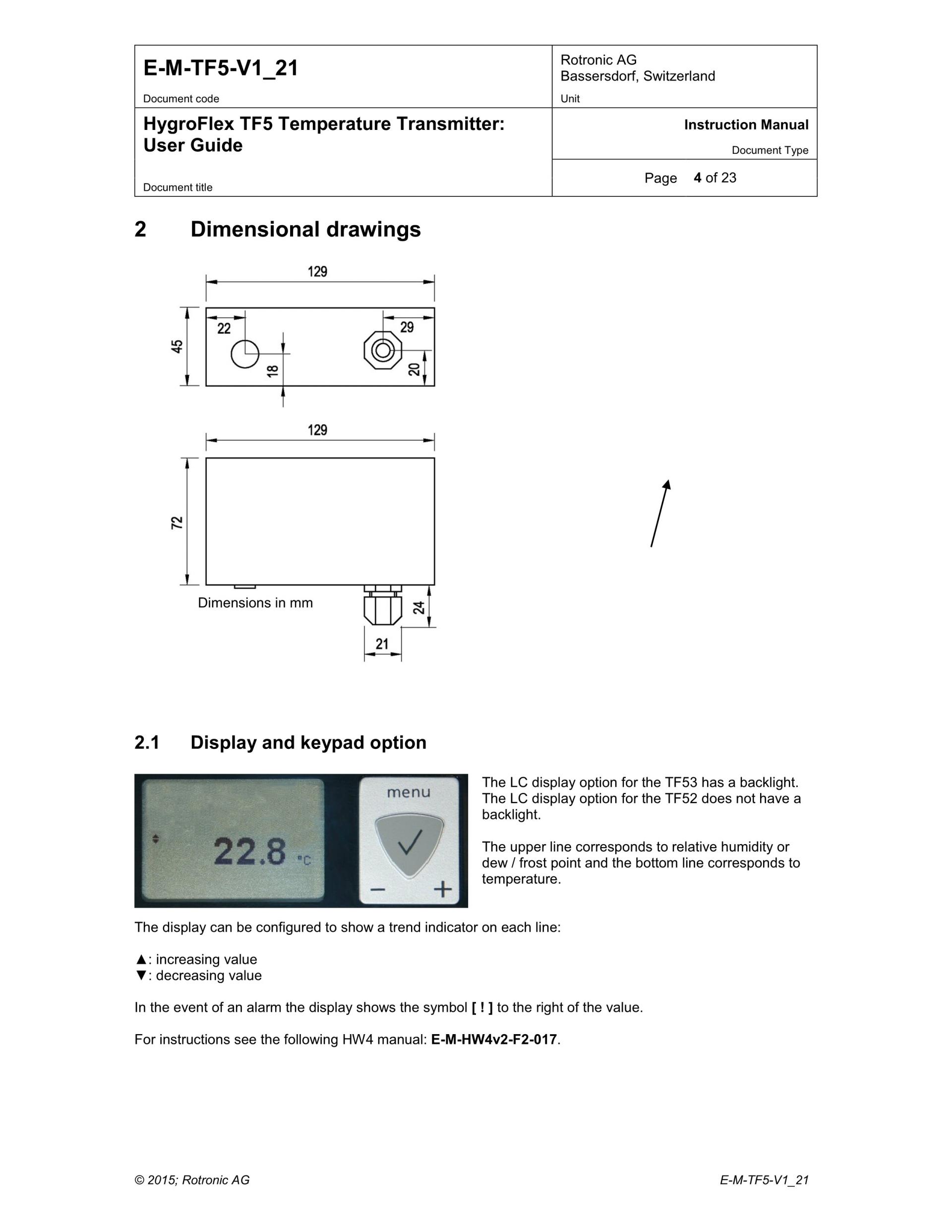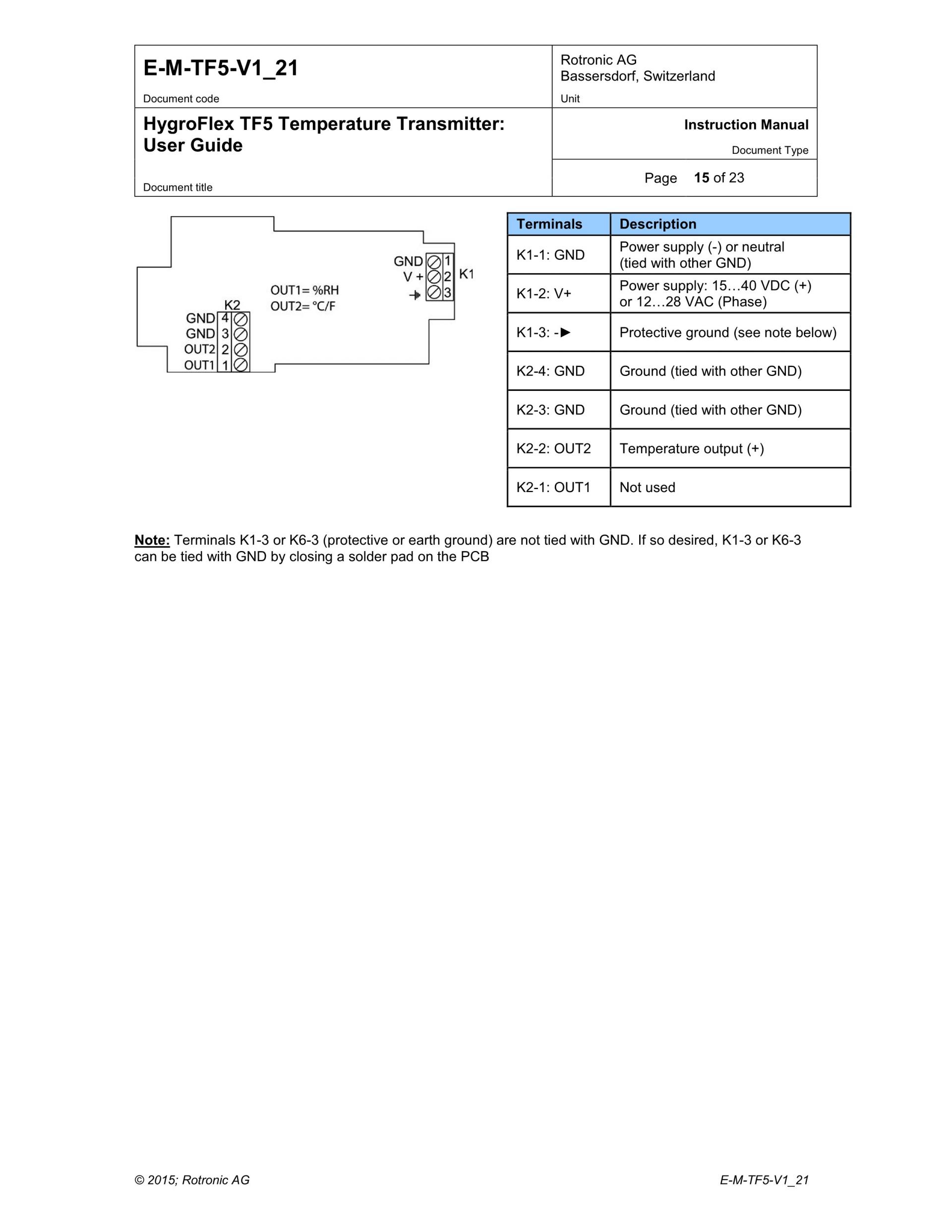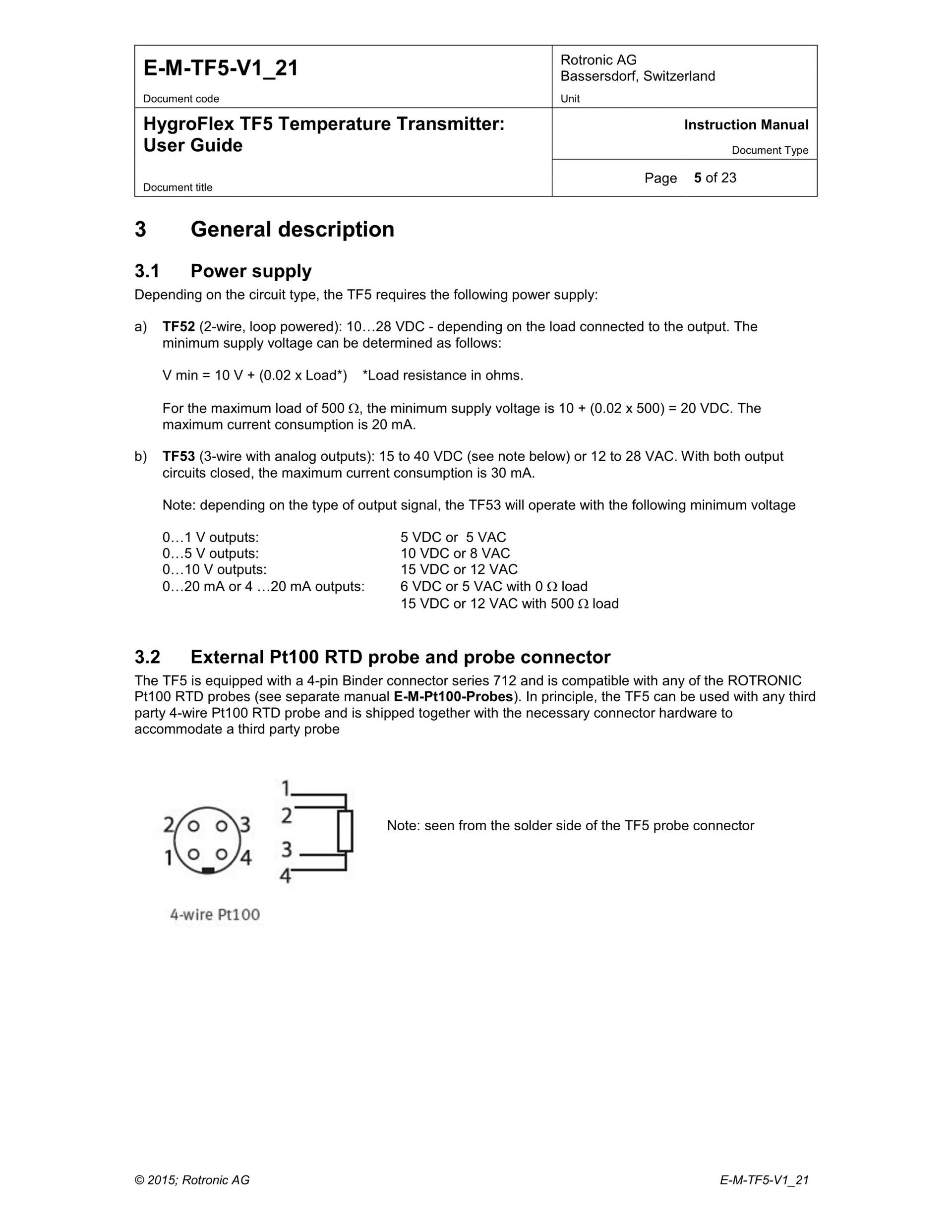 ROTRONIC TF5 TEMPERATURE TRANSMITTER