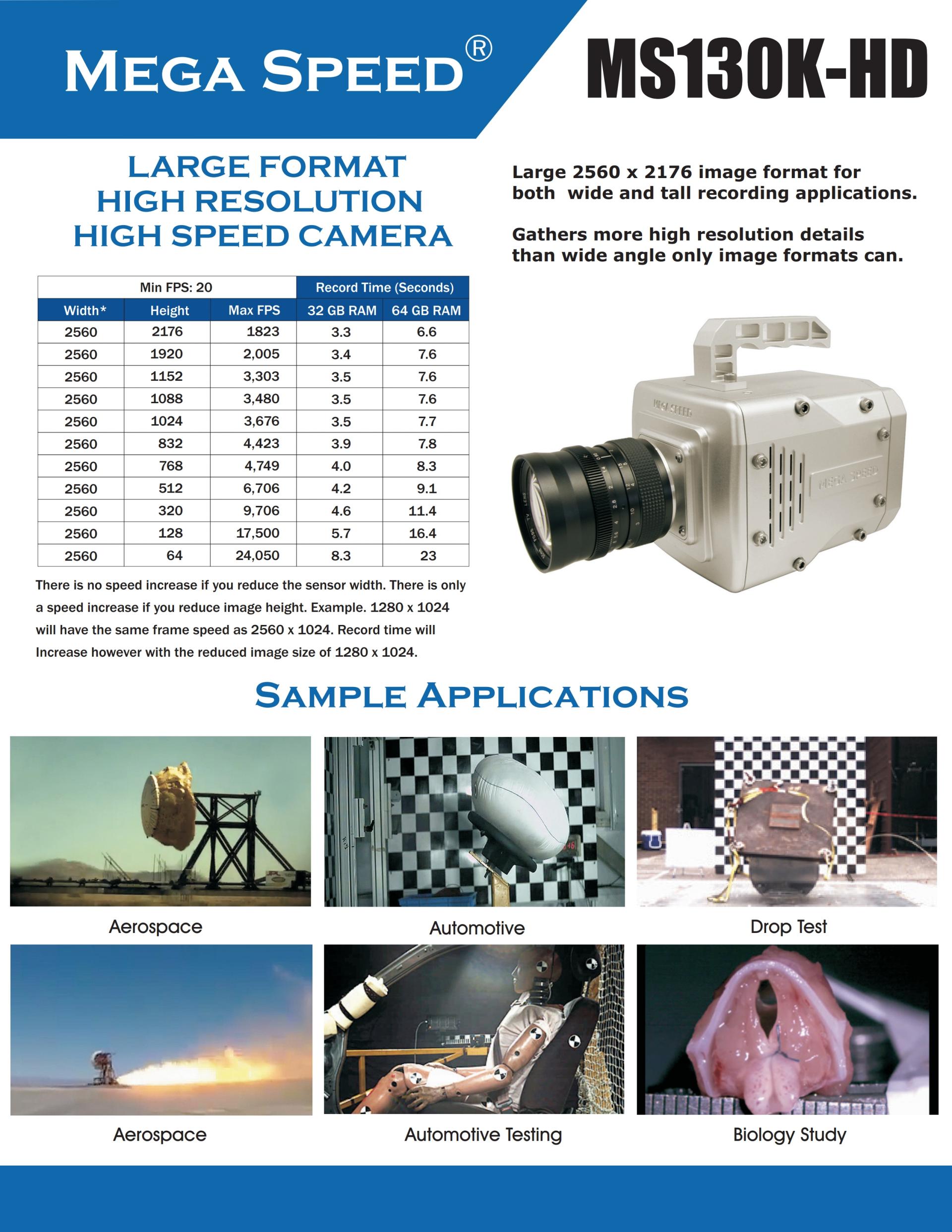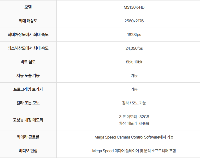 고속카메라 5.5MP, 2560x2176, 속도 1823FPS