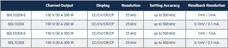 - SDL1020X(단일 채널): DC 150V/30A, 총 전력 최대 200W