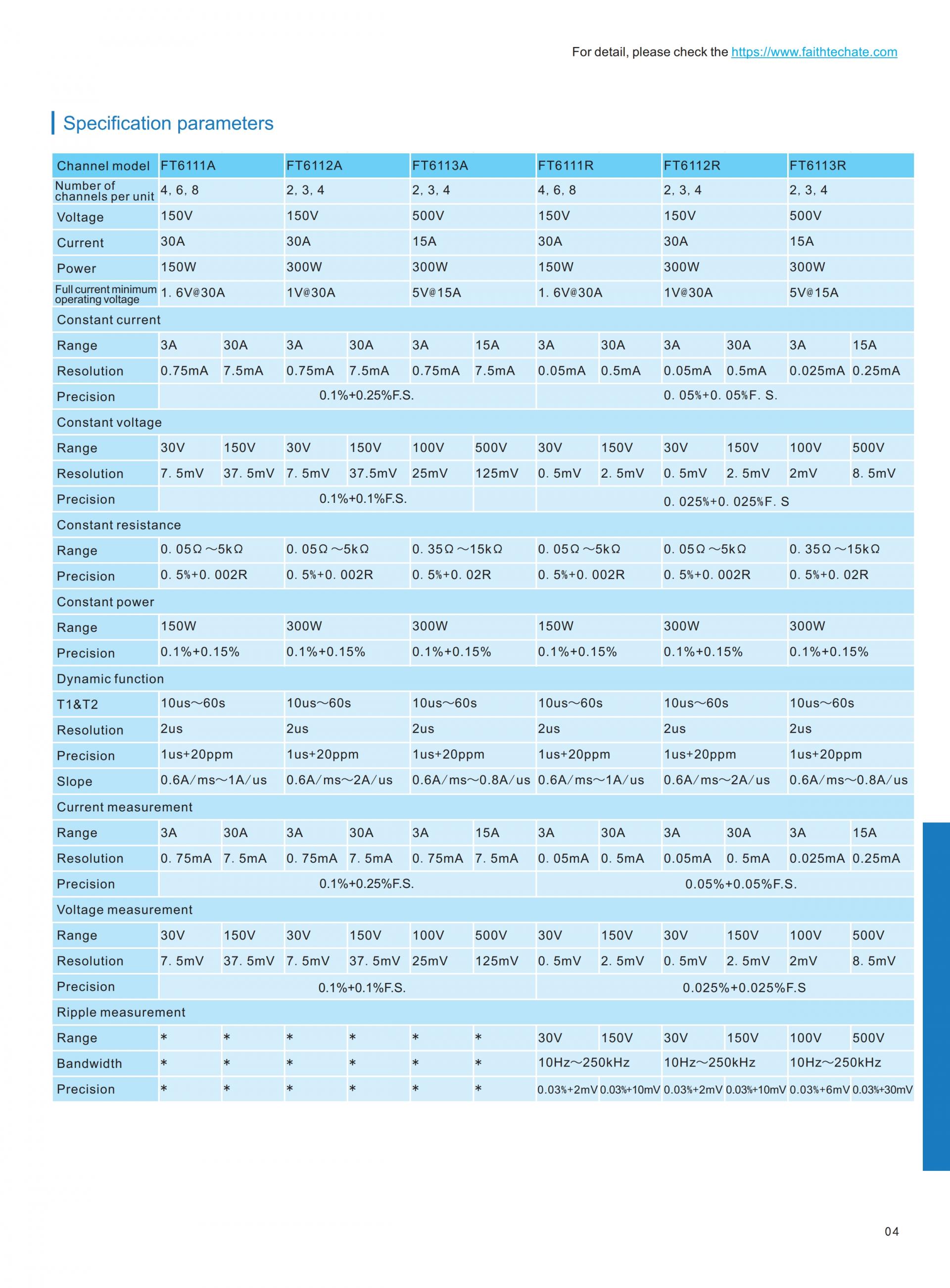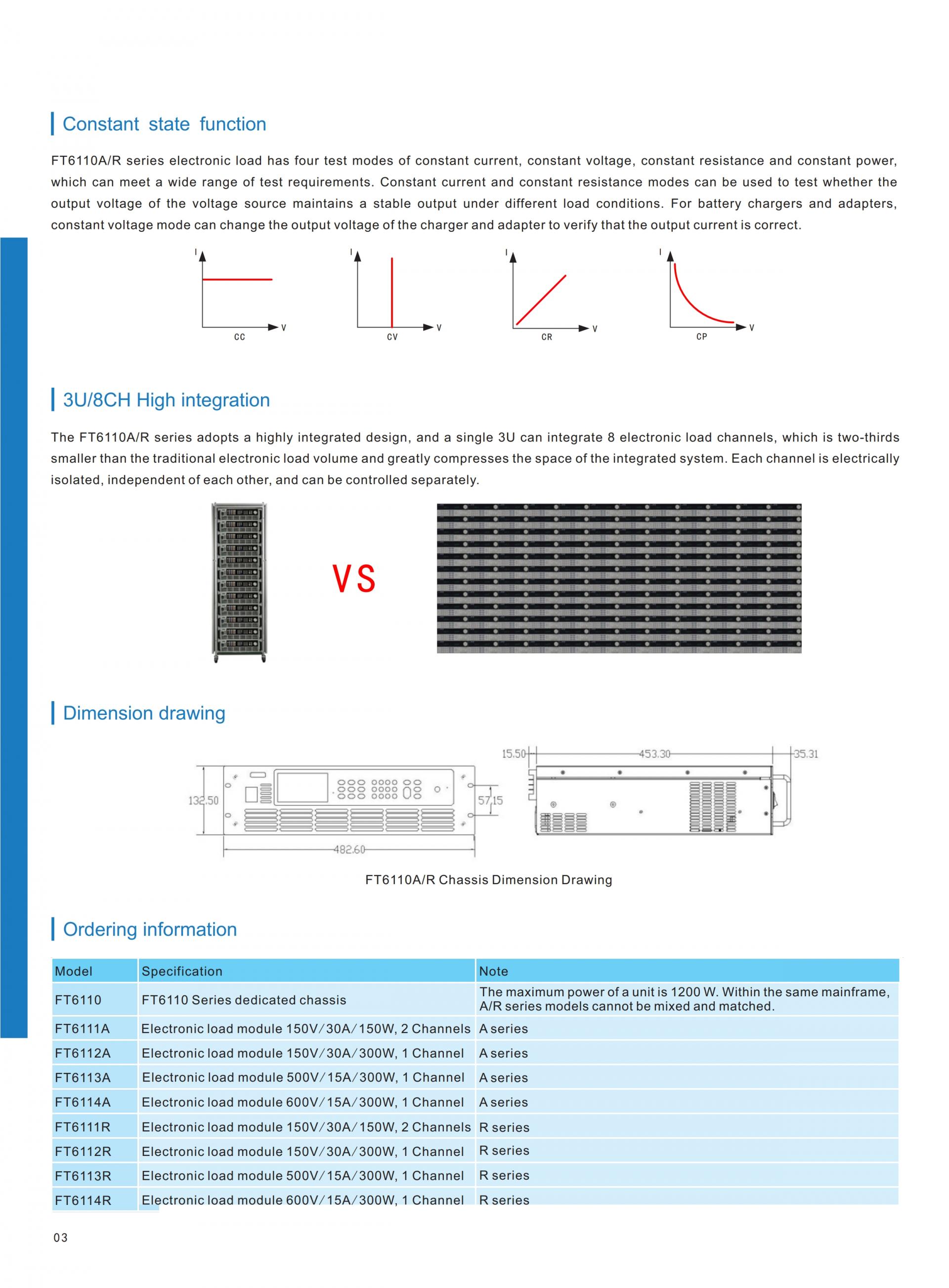 The FT6110A/R series multi-channel electronic load is a high-performance, cost-effective product for power ATE test systems. In integrated applications, it can replace small power single electronic loads, saving a lot of space for system construction, and significantly saving costs