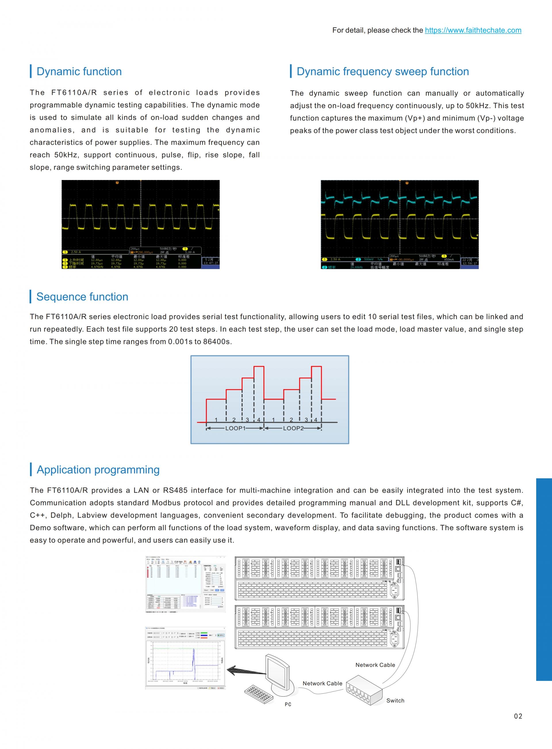 In order to facilitate the development of power ATE test system, FT6110A/R has built-in special functions such as voltage and current ripple test, dynamic frequency sweep, load effect test, LED driver test, OCP test, slope setting, etc., and provides a complete DLL development kit. Support C#, C++, Delph, Labview development languages, convenient for users to secondary development。