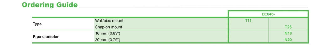 EE046 응축 모니터는 두 가지 타입으로 제공됩니다. 벽/파이프 마운트 타입은 평면의 표면과 최대 50mm(2") 직경의 파이프에 설치하는 데 적합 하며 냉각 천장, 냉각 또는 냉수 배관, 냉각 된 표면 및 냉각 빔에 설치됩니다.
