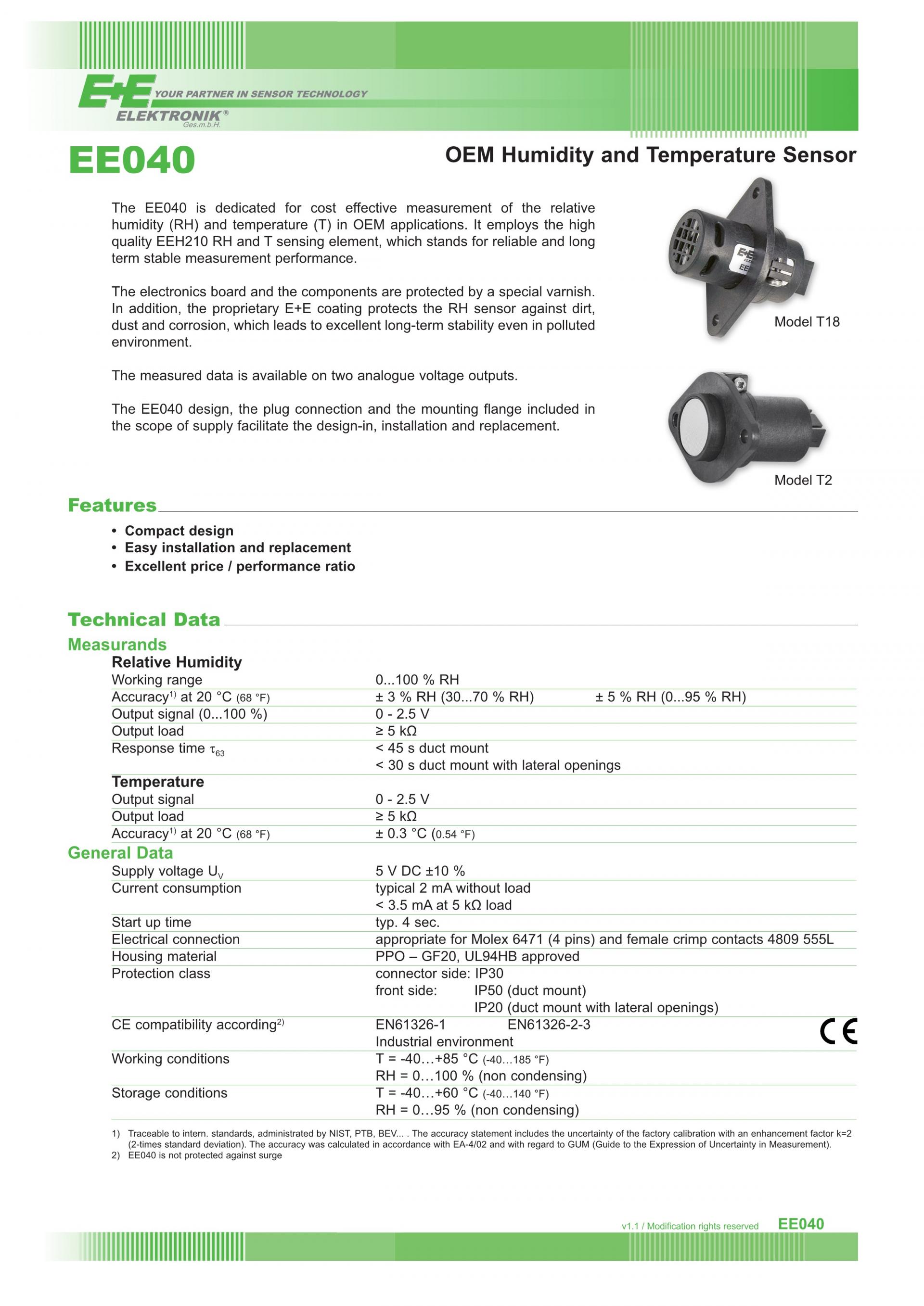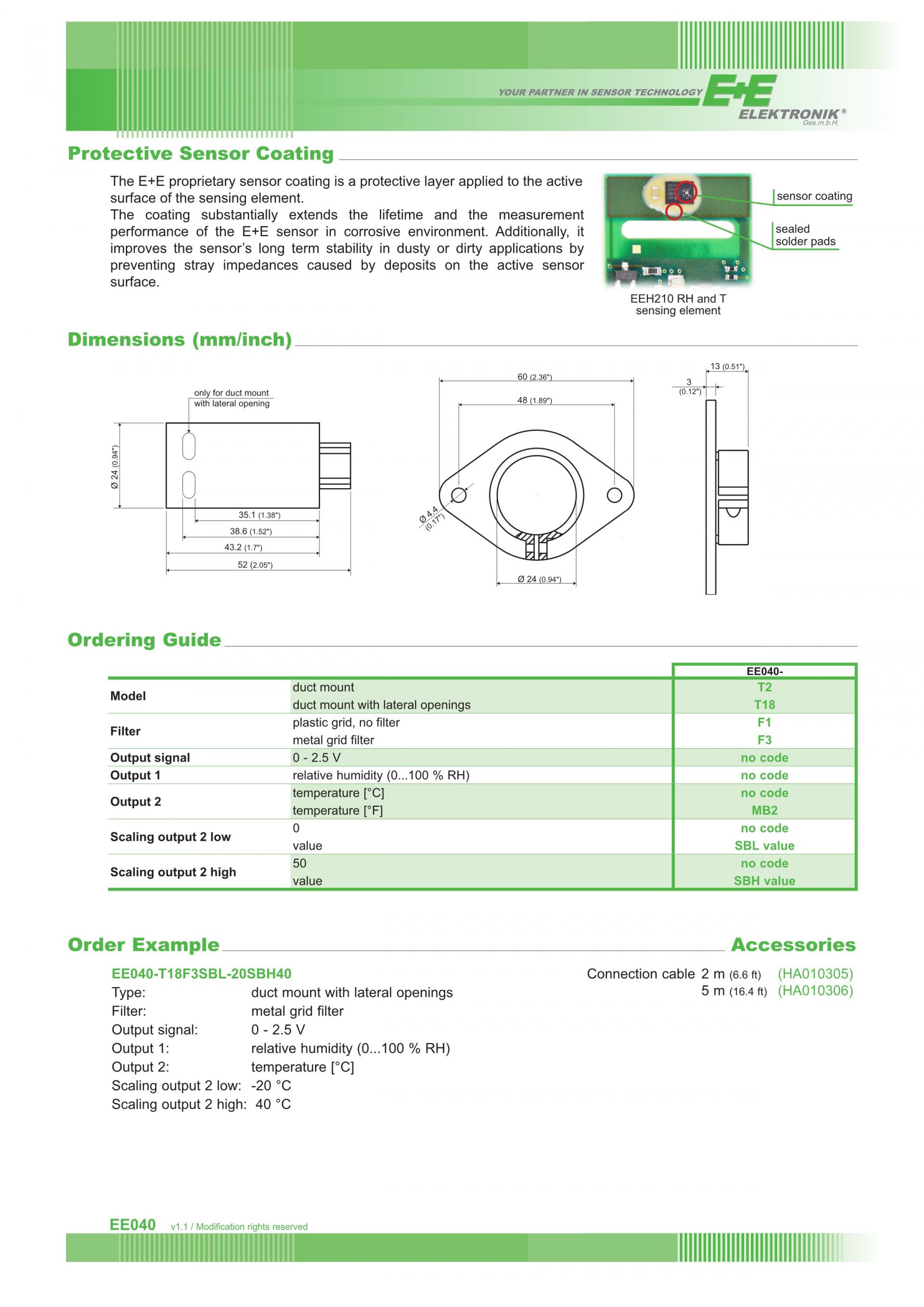 EE040은 가격대비 효율이 우수한 상대습도(RH) 및 온도(T)센서로 OEM 시장에 적합합니다.