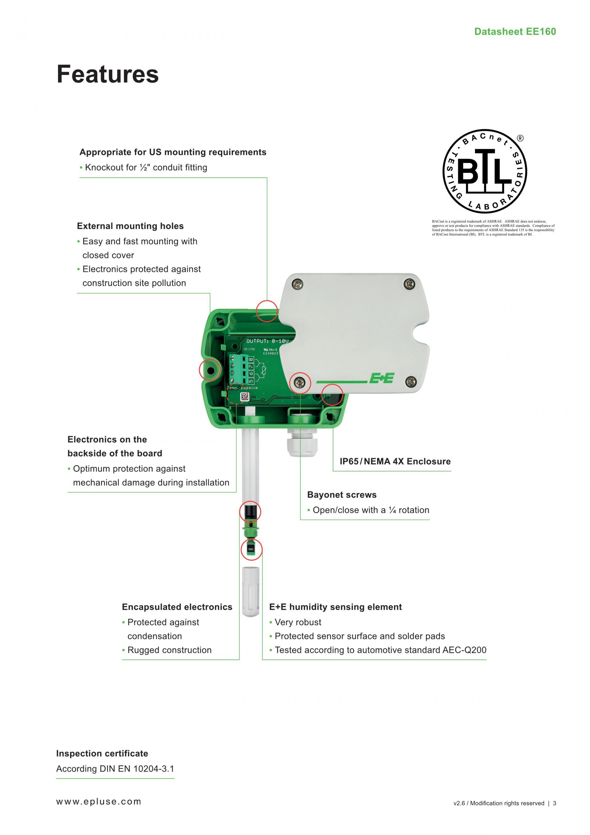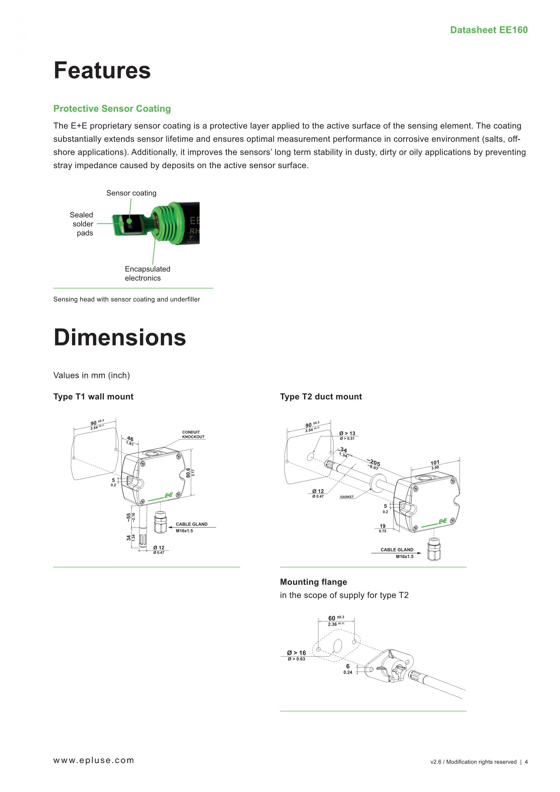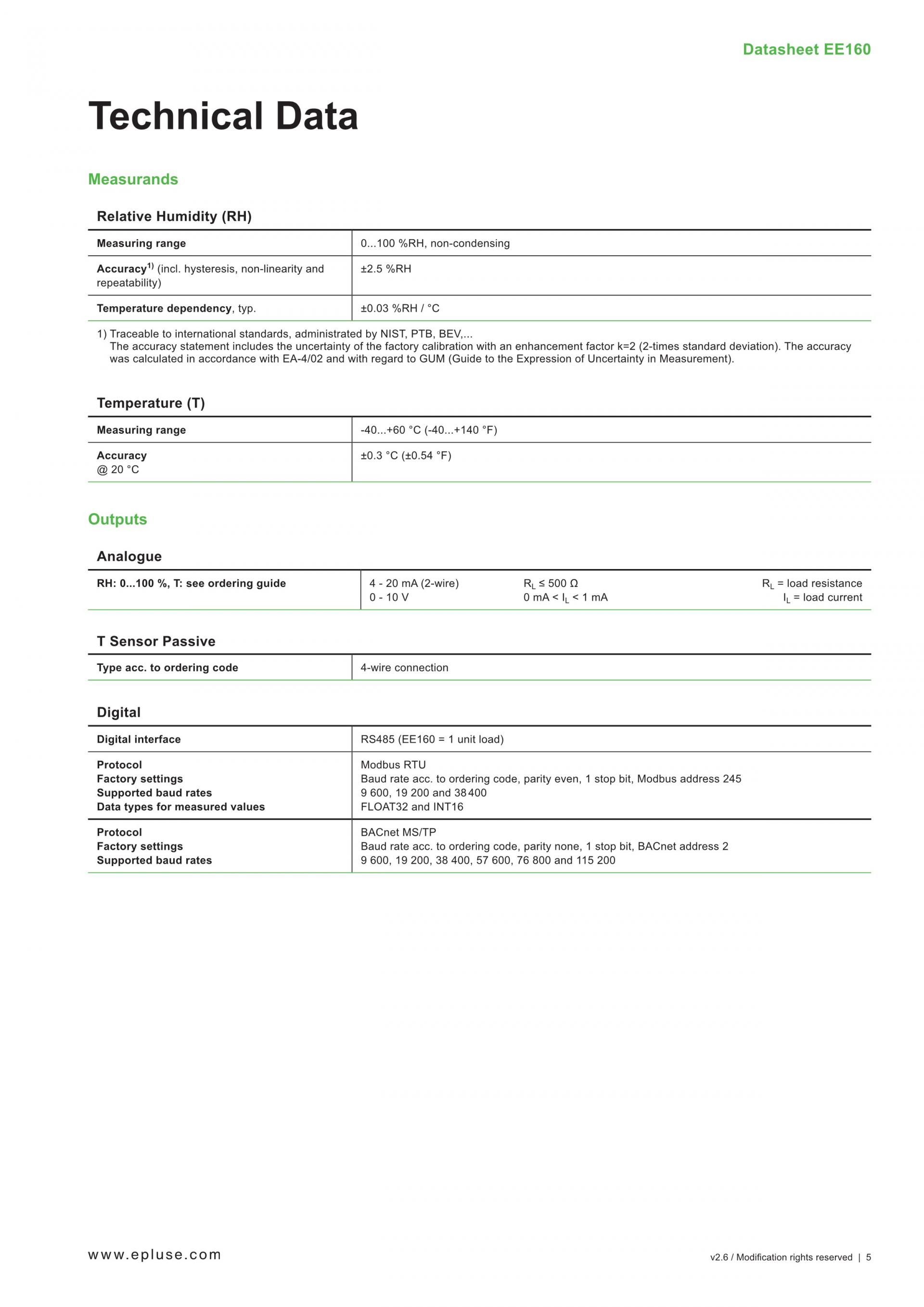 EE160모델은 오염물질로부터 보호되는 E+E의 새로운 온습도 센서 HCT01이 적용되어 장기간 안정적인 측정이 가능합니다. 또한 E+E의 오랜 교정 경험을 바탕으로 ±2.5%RH의 정확도를 가집니다. 벽걸이형과 덕트형의 EE160은 전류, 전압의 아날로그 출력 및 모드버스 RTU 출력 중 선택할 수 있습니다.