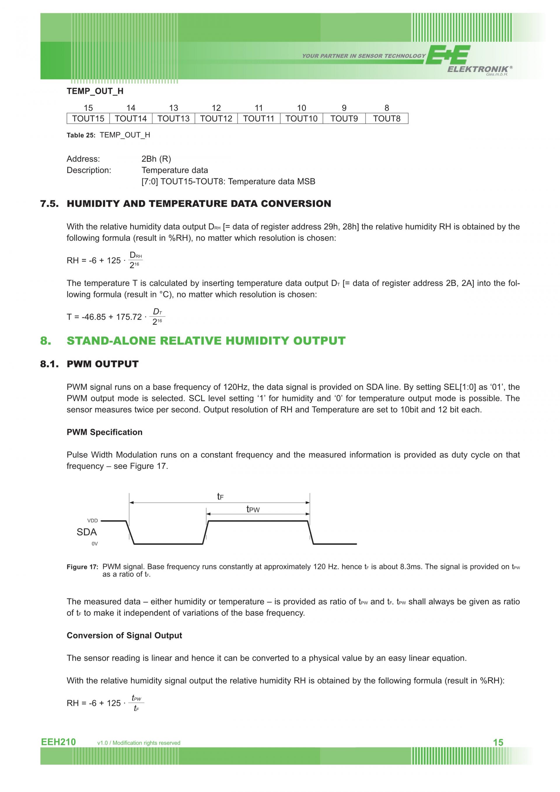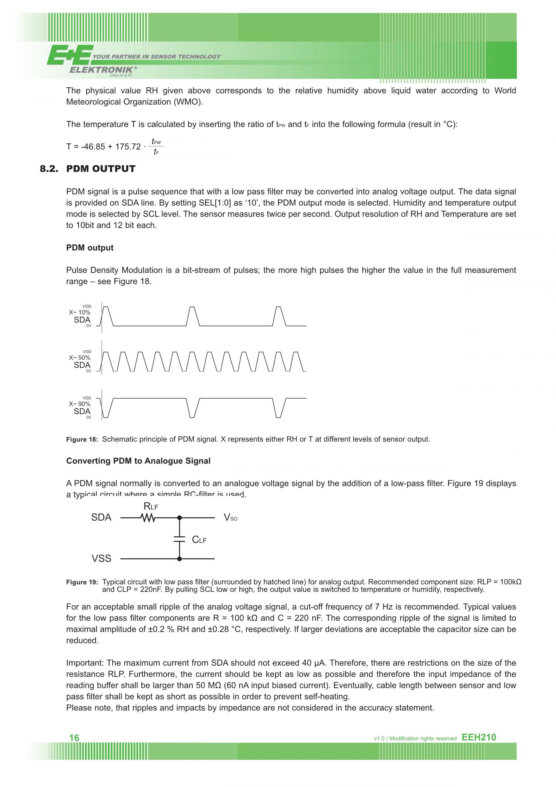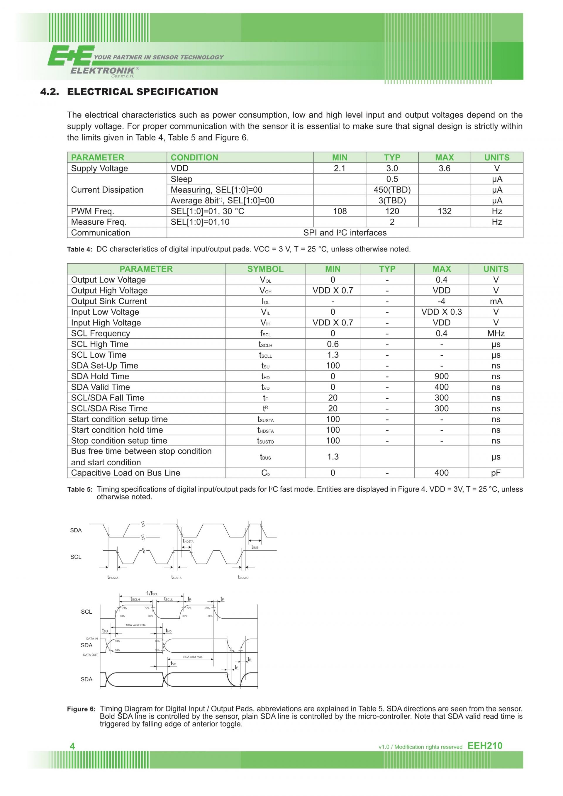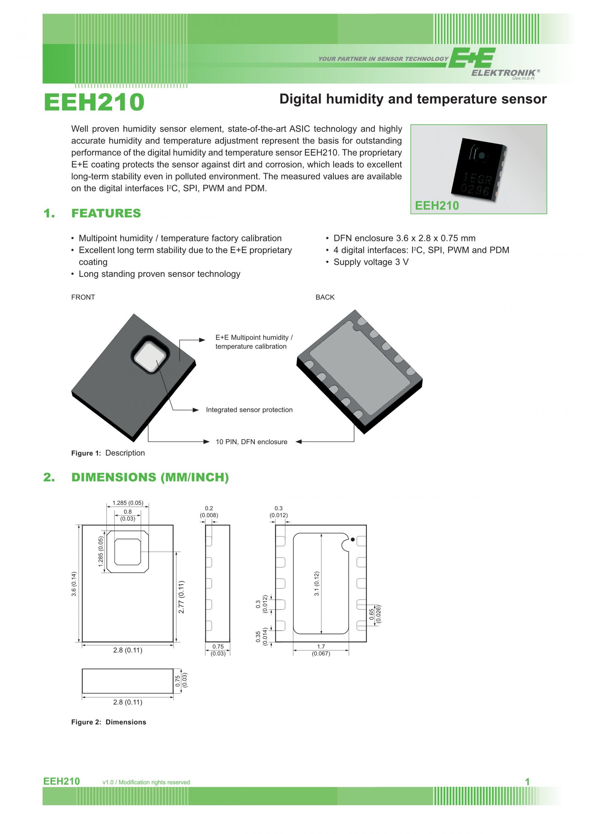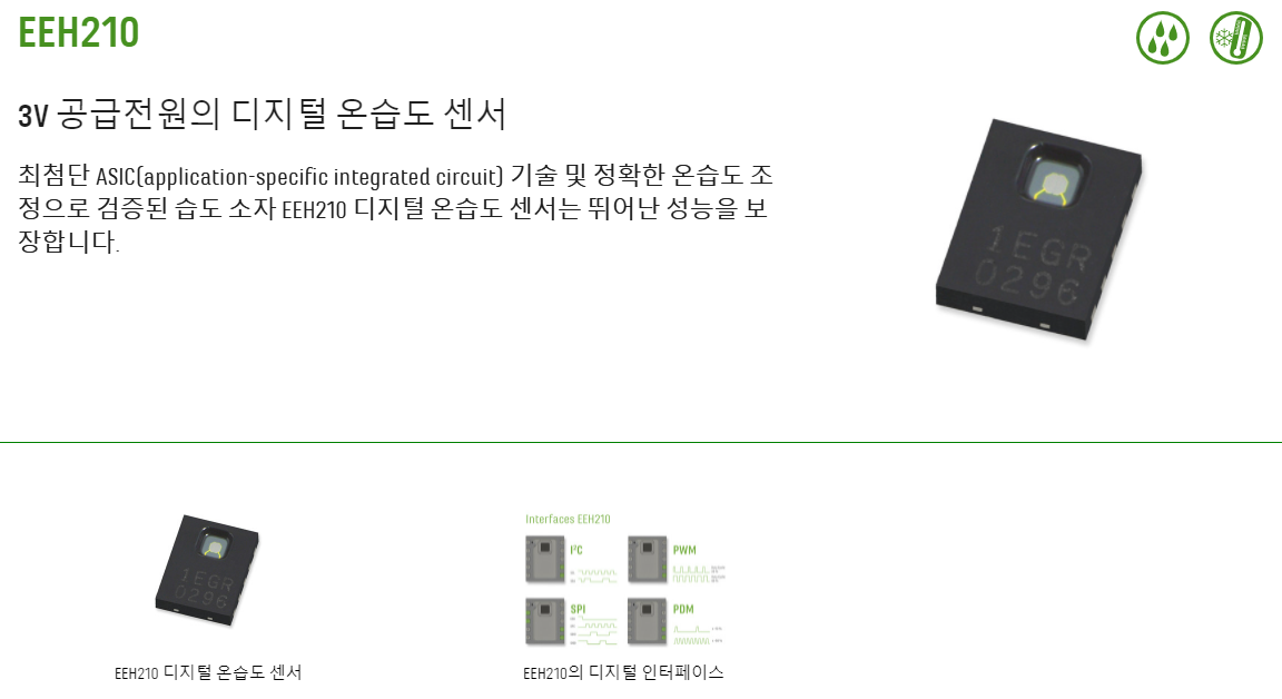 정밀한 온습도 값을 보장하는 EEH210의 정확도는 습도 ±2%, 온도 ±0.3°C (±0.54°F) 이며, 측정 된 값은 I2C, PWM, PDM 그리고 SPI 디지털인터페이스에서 사용할 수 있습니다.