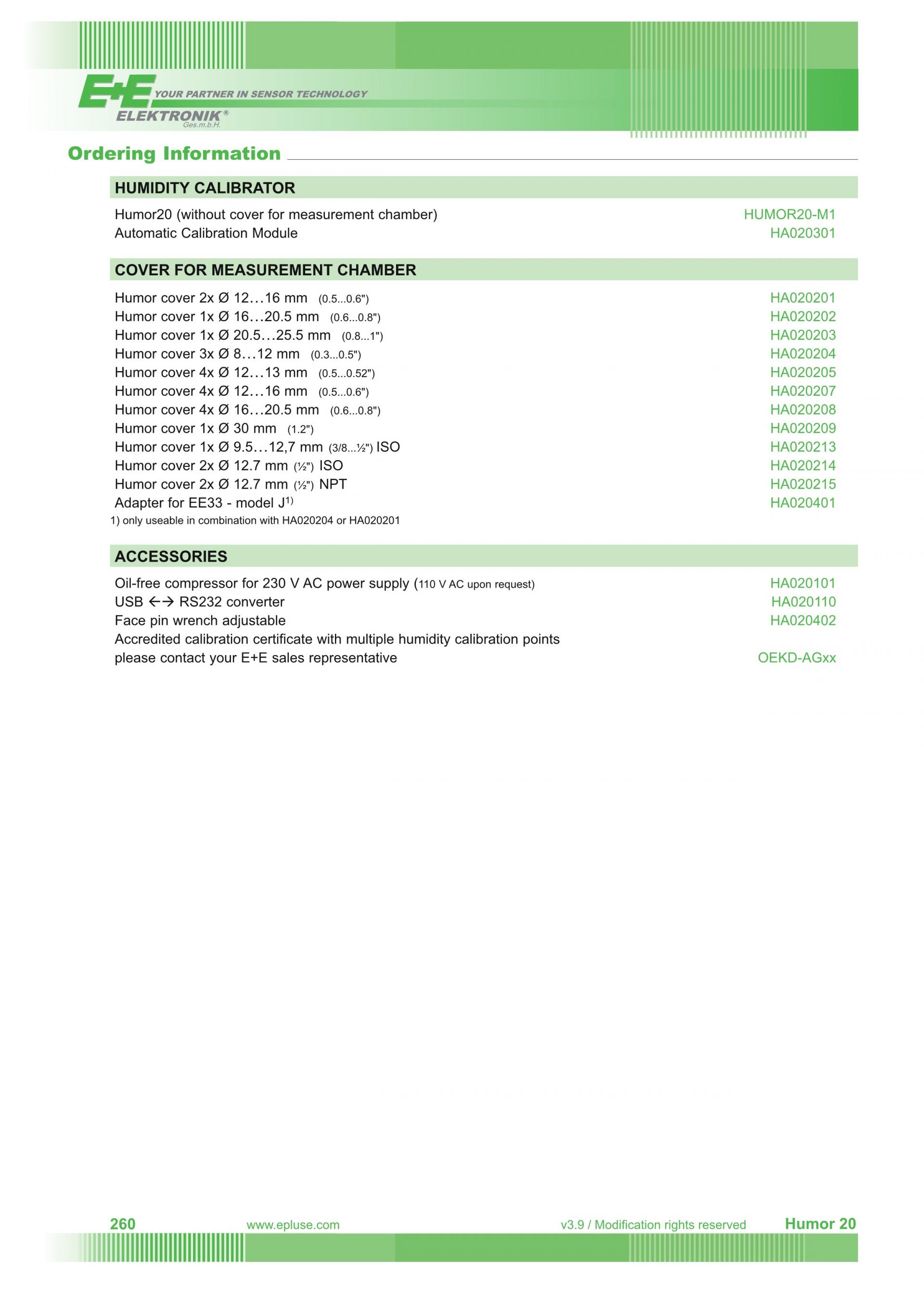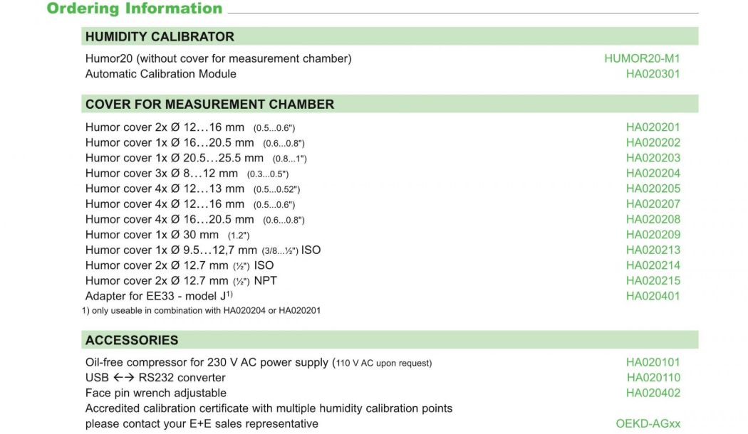 Humor 20 은 습도 범위 10-95%에서 원형과 정방형의 계측기기를 모니터링 할 수 있습니다.