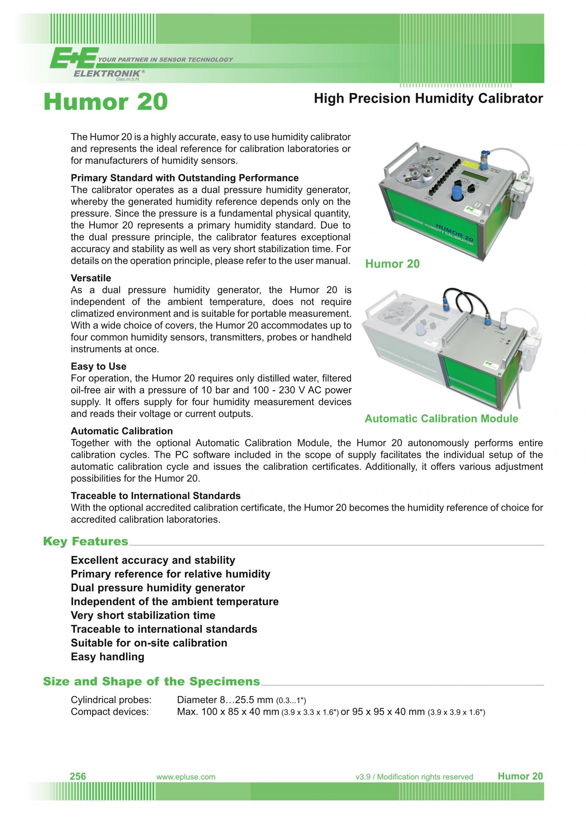 Humor 20 은 기본적인 이중 압력 공정(two pressure process)에 근거하여 작동하며 국가 표준기관에서 사용하는 장비들의 표준 규격과 유사합니다.