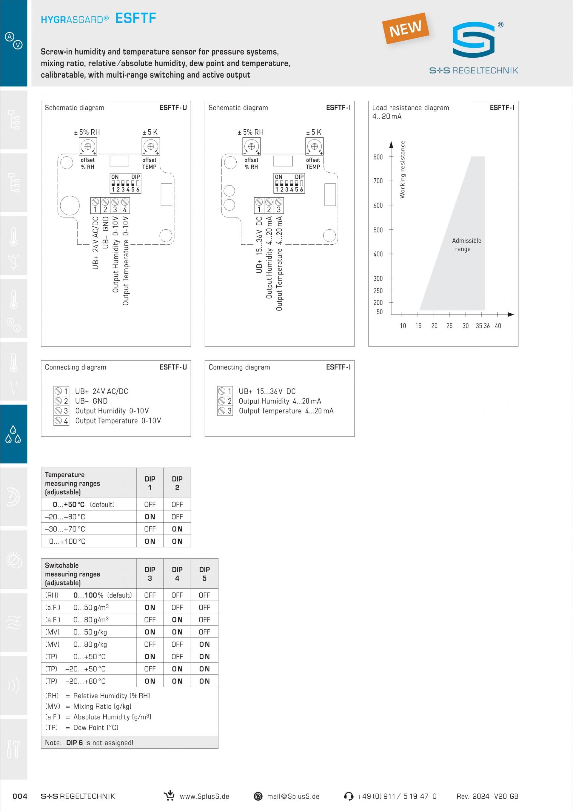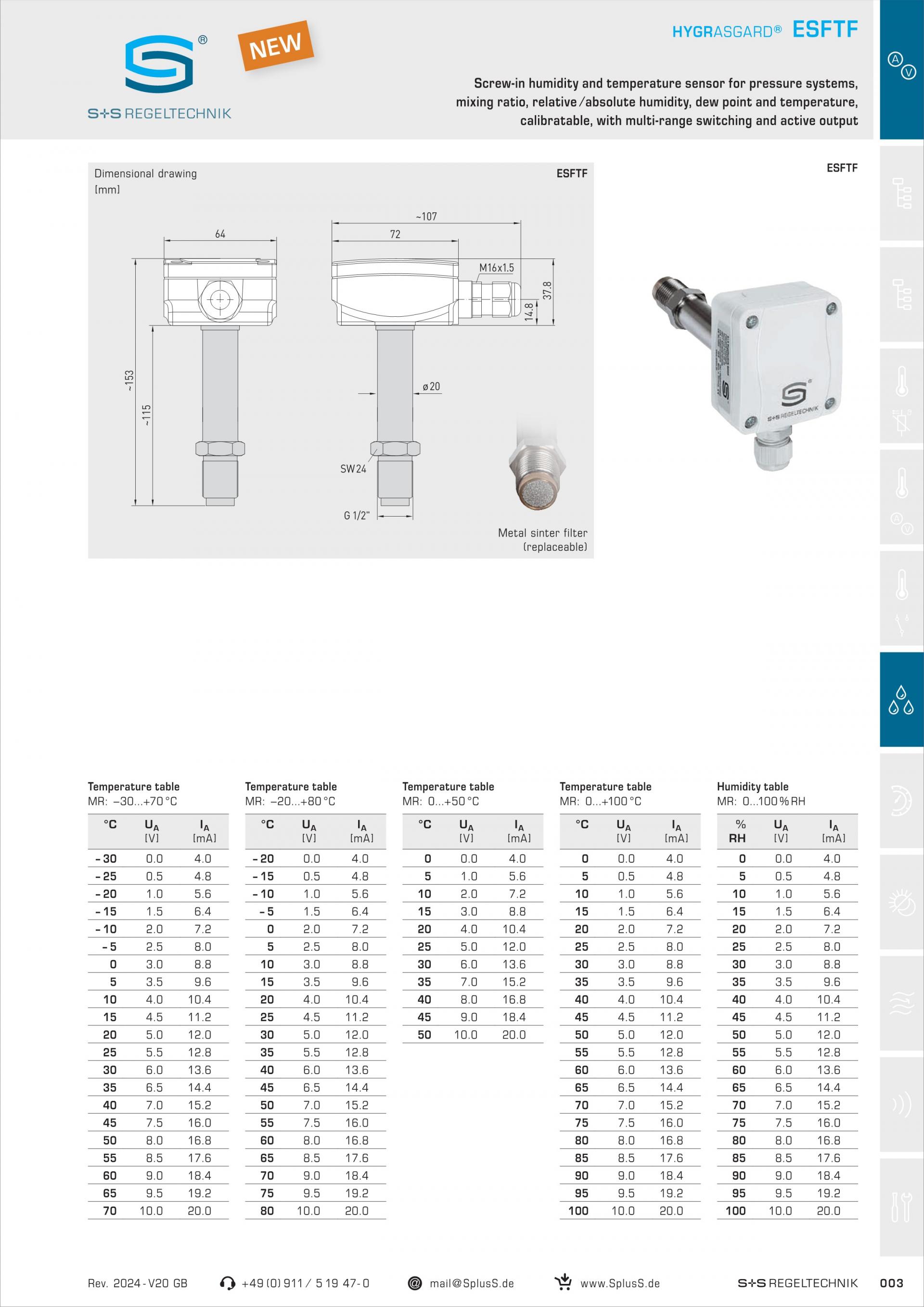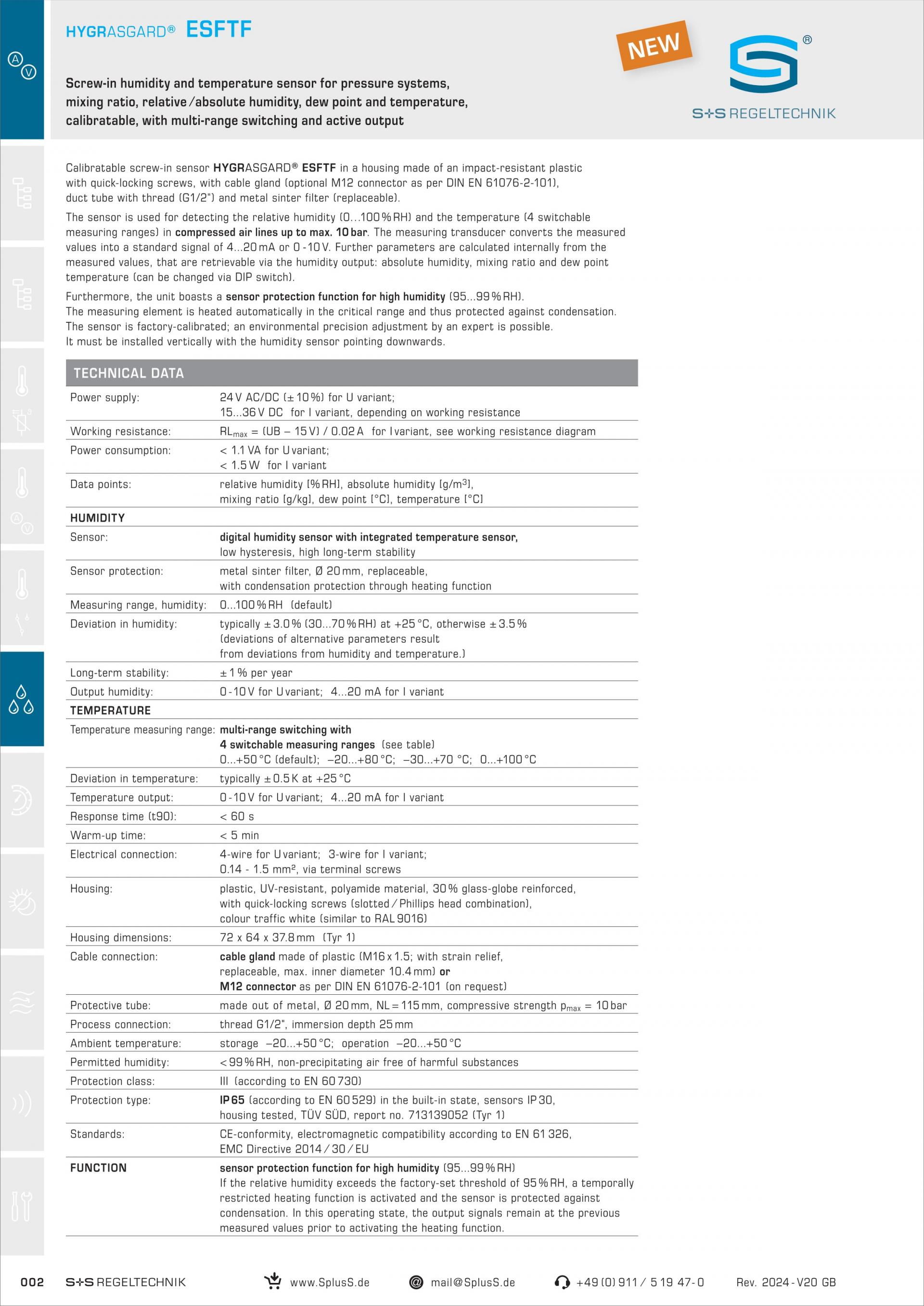 S+S ESFTF-I Screw-in humidity and temperature sensor for pressure systems