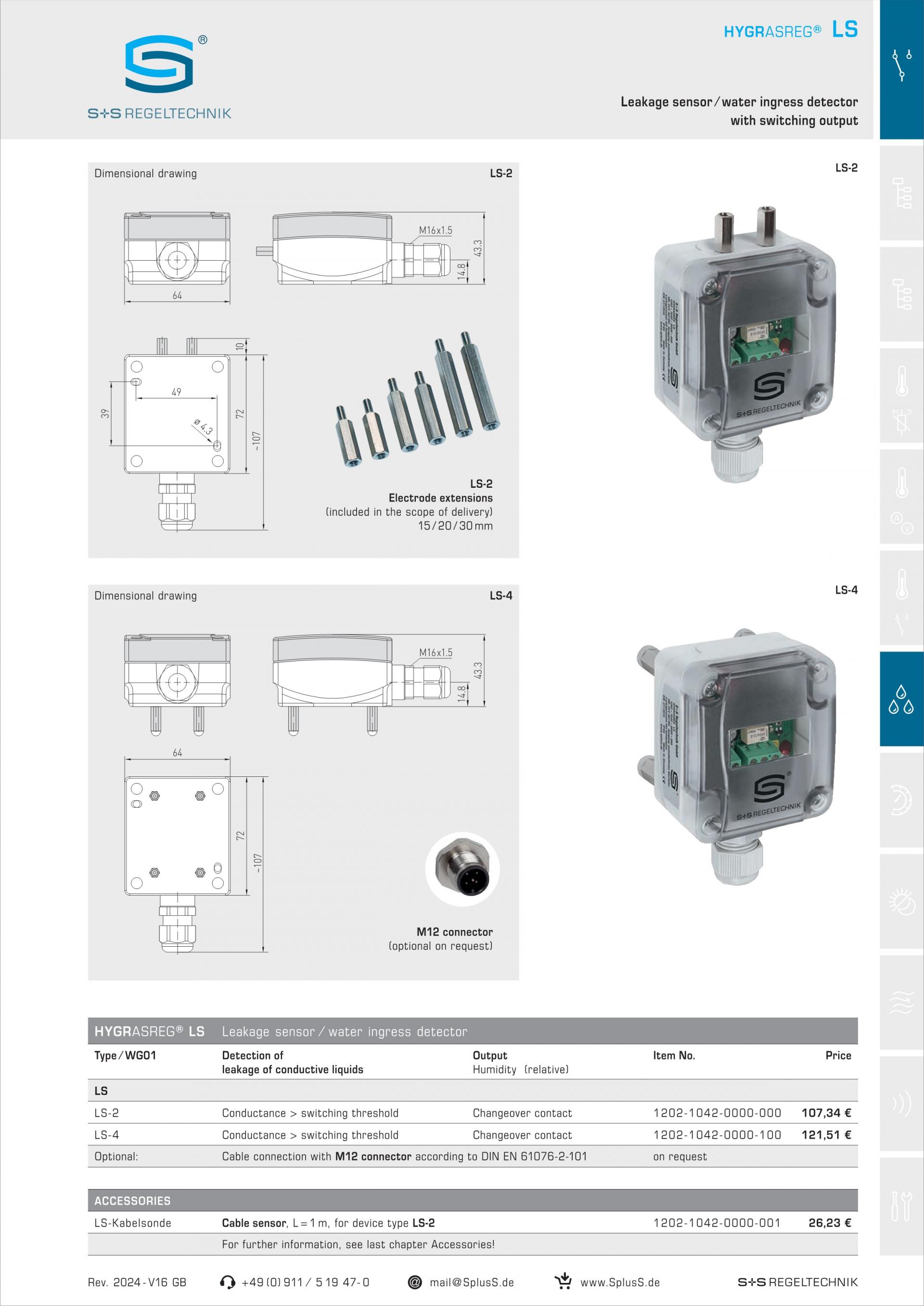 LS-2 Leakage sensor/ water ingress detector with switching output