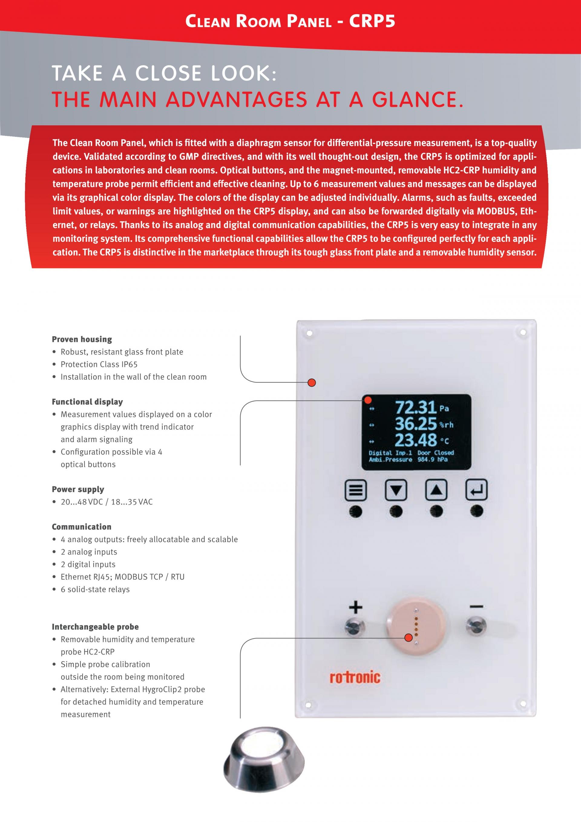 ROTRONIC CRP5 CLEAN ROOM PANEL