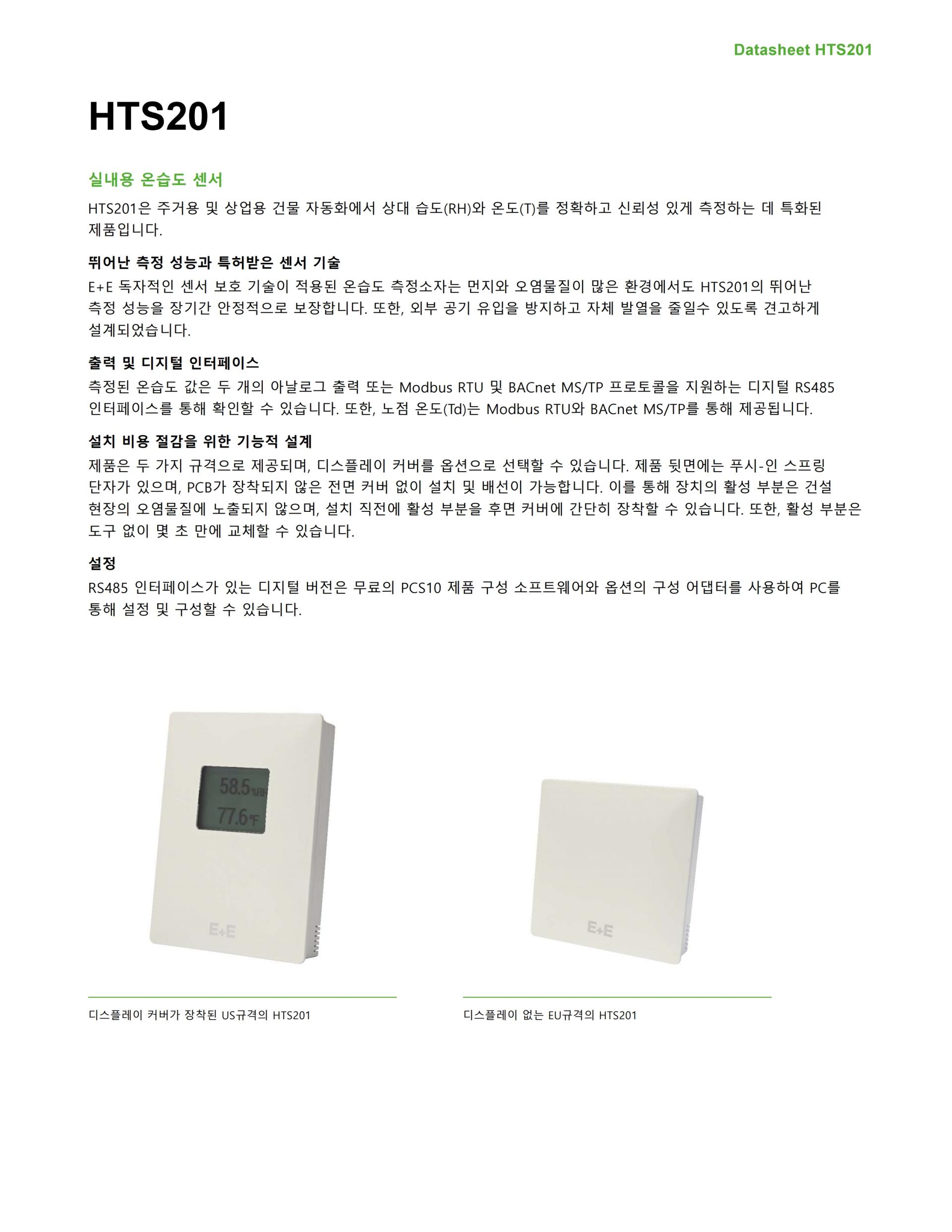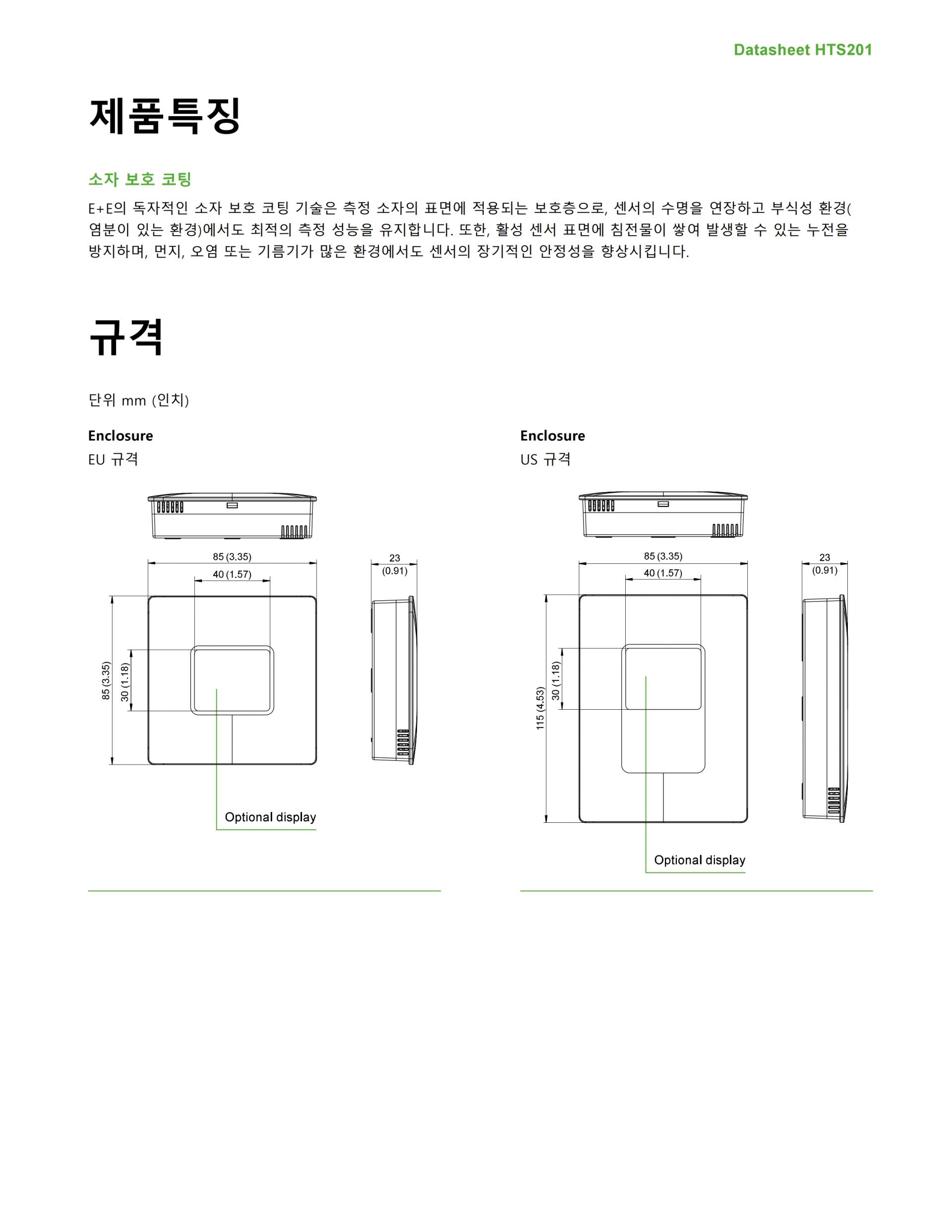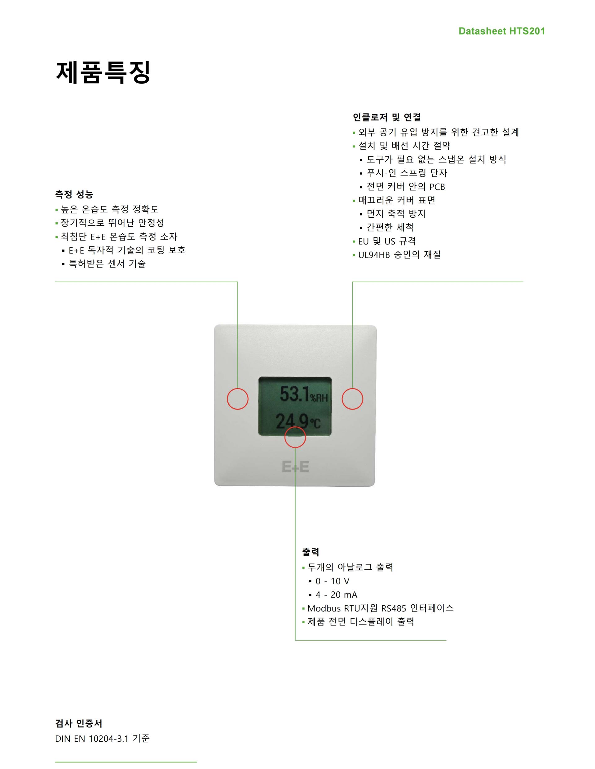 HTS201의 E+E 상대 습도 온도 센서 요소는 자체 보호 기능을 갖추고 있습니다.