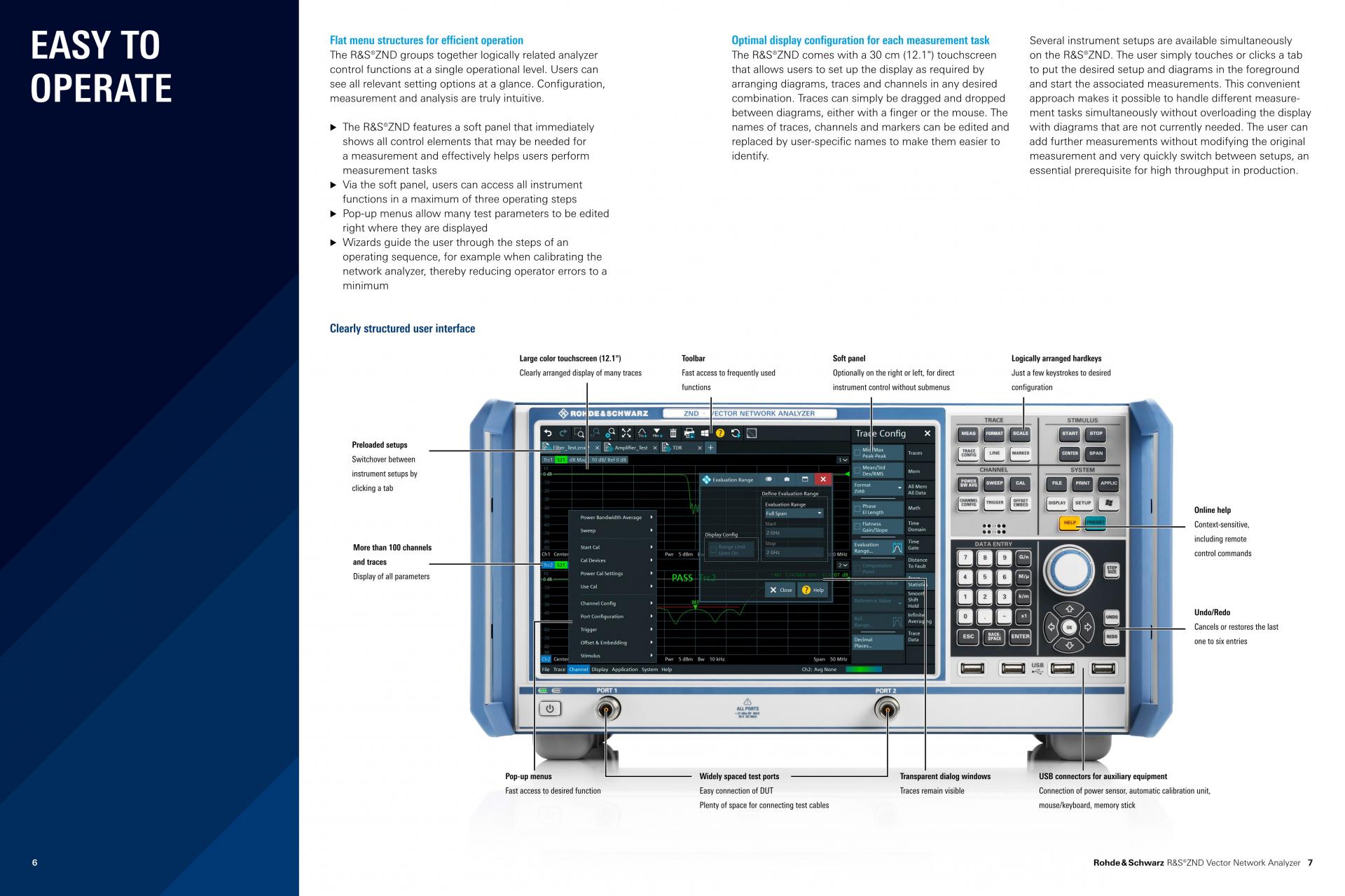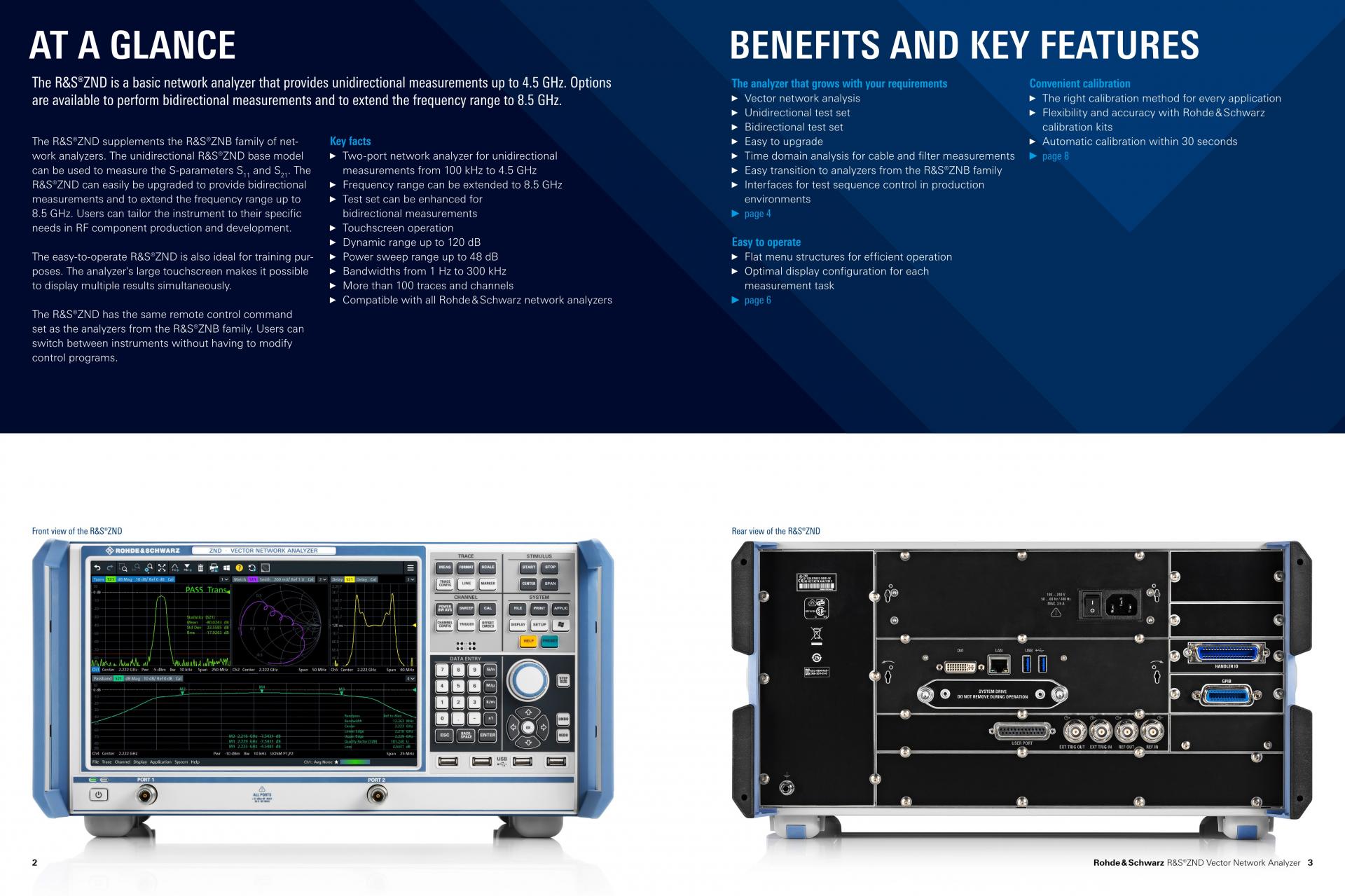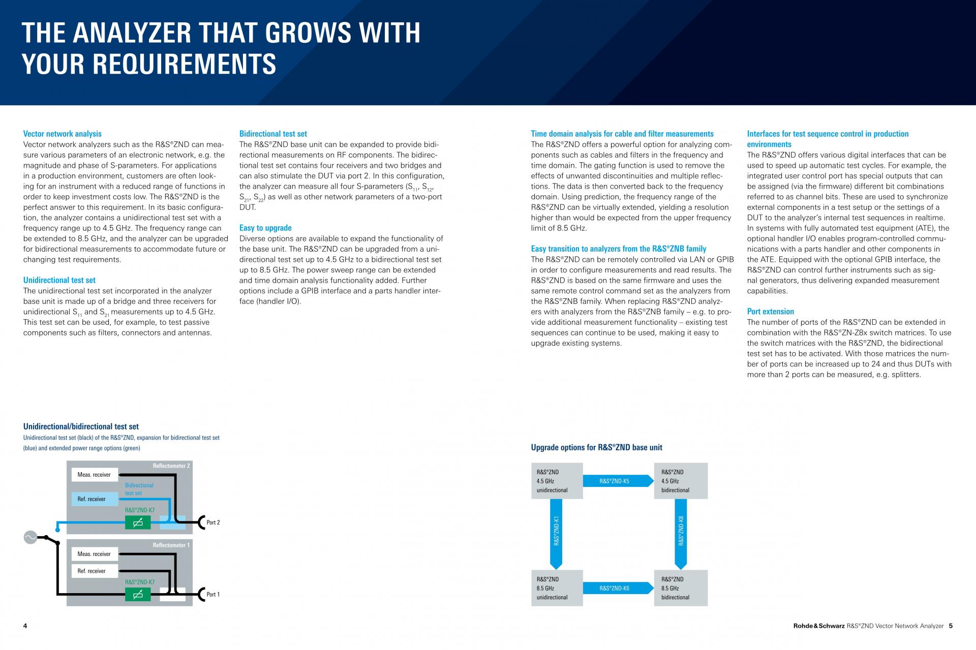 R&S®ZND Network Analyzer는 기본 모델에서 최대 4.5GHz까지 단방향 측정을 수행합니다. 확장을 통해 양방향 측정을 수행할 수 있으며 주파수 대역을 8.5GHz까지 확장할 수 있습니다. R&S®ZND는 대형 터치스크린을 쉽게 조작할 수 있어 많은 다이어그램이 필요한 경우에도 S-파라미터 측정에 적합합니다. 시간 도메인 측정을 추가하여 더 많은 기능을 사용할 수 있습니다.