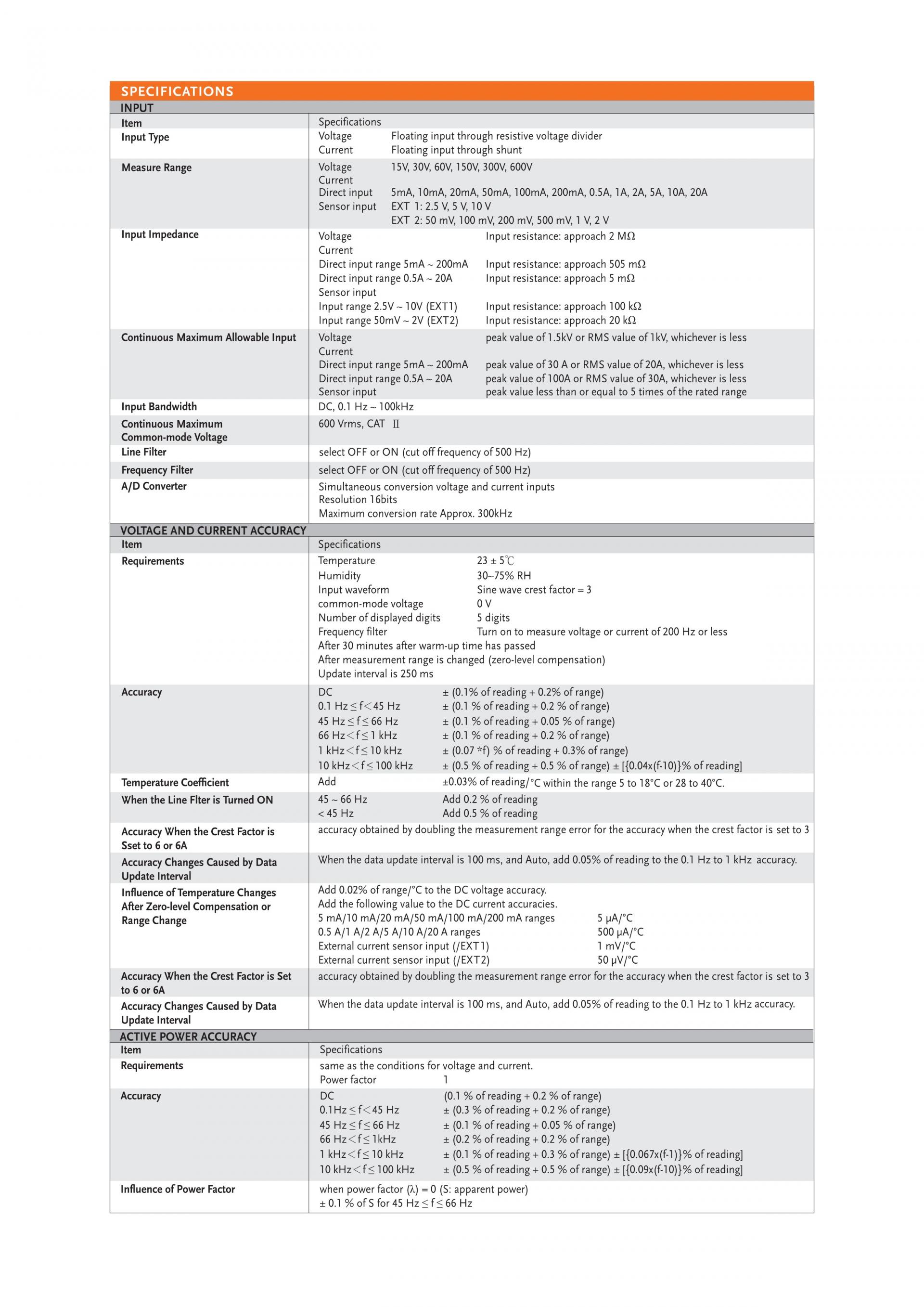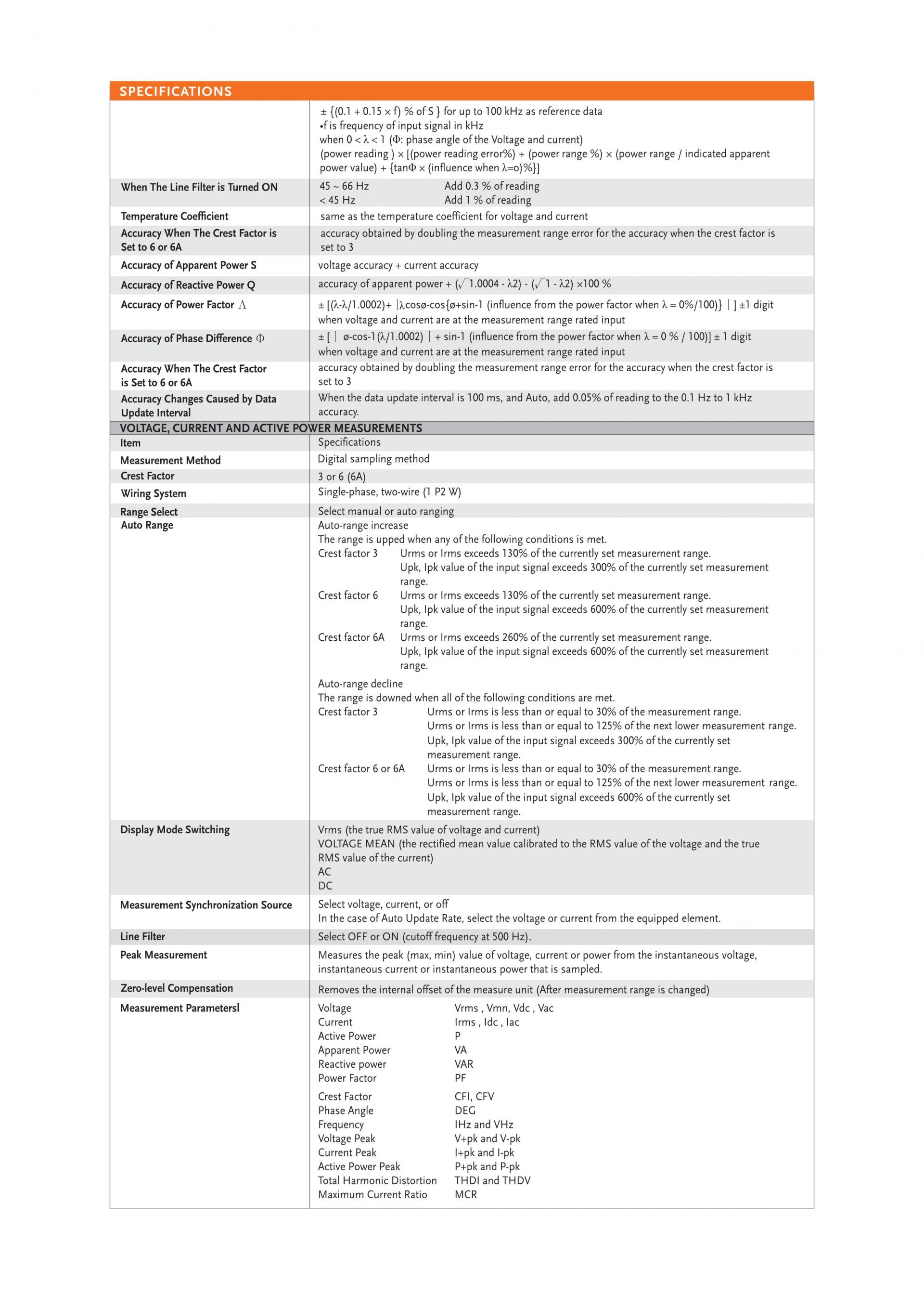 - The current/voltage can be measured to a deformed wave with CF of 3, and the half-range CF can reach 6 or 6A