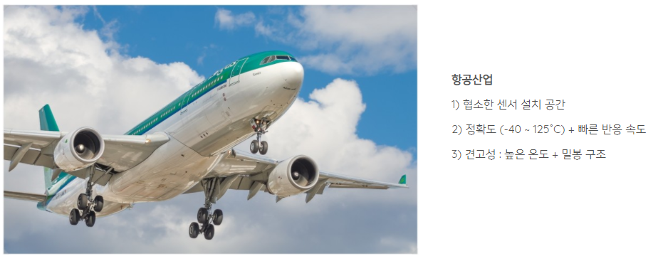 1. 자동차 성능 시험 : 협소한 공간에 센서를 설치하여 엔진룸 같은 고온에서도 정확한 퍼포먼스를 발휘합니다.