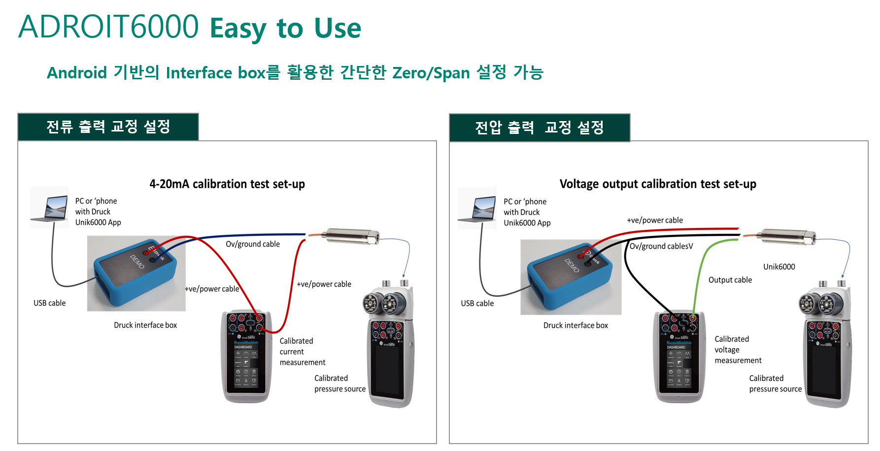 또한 Android 기반의 인터페이스 박스를 활용하여 간단하게 Zero/Span 설정이 가능합니다.