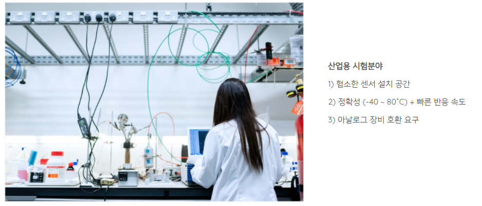 3. 산업용 시험분야 : 넓은 온도대역에서의 높은 정확성을 보증하고, 빠른 응답속도로 넓은 범위에서 사용이 가능합니다.