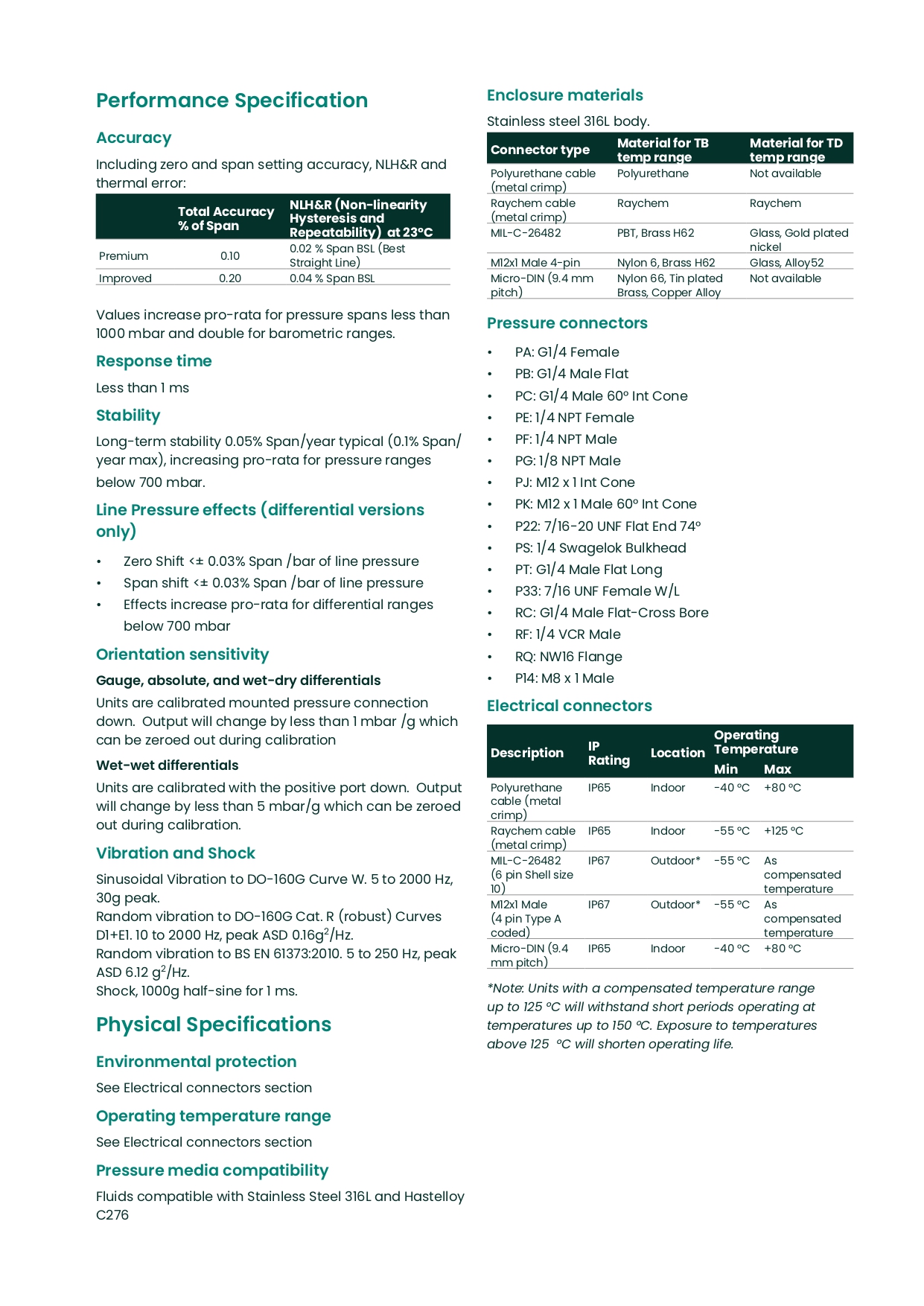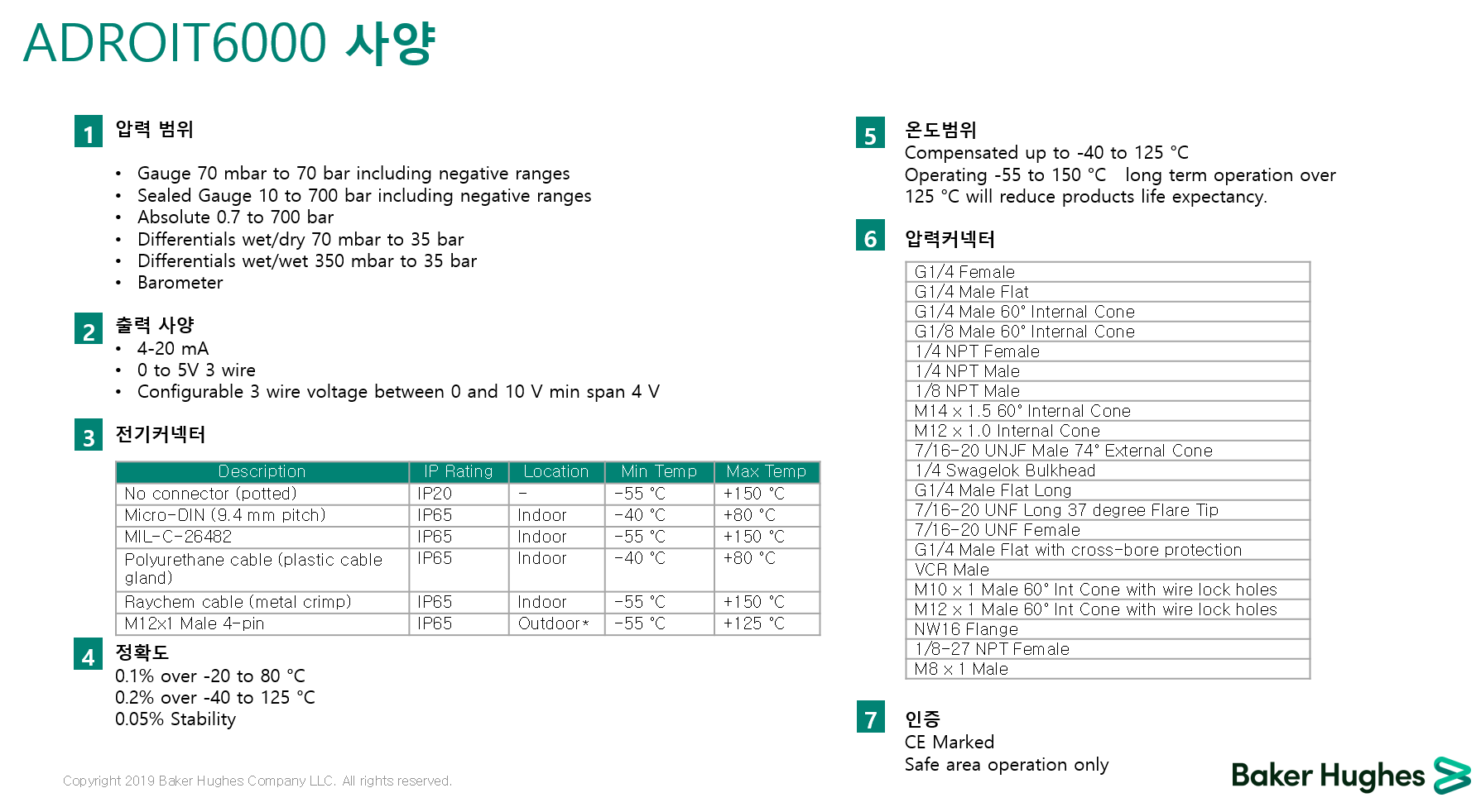 - 70mbar ~ 350bar(1 ~ 5,000psi)의 압력 범위