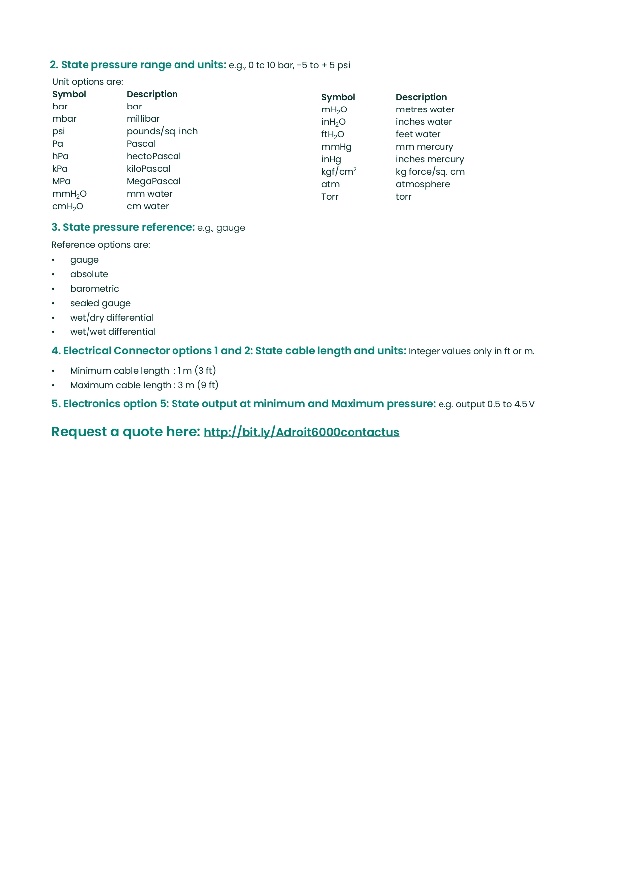- 압력범위 : 200mbar ~ 350bar
