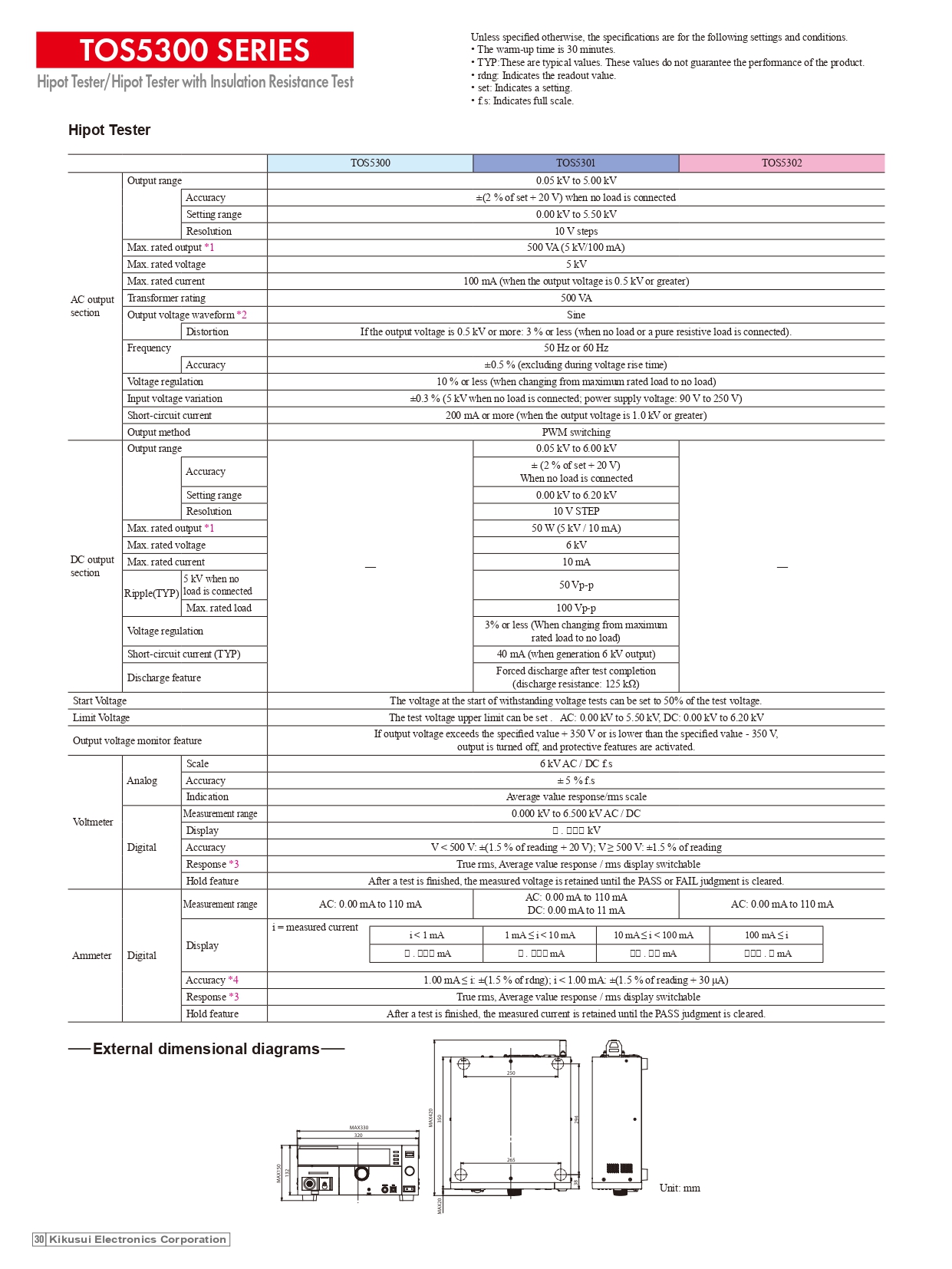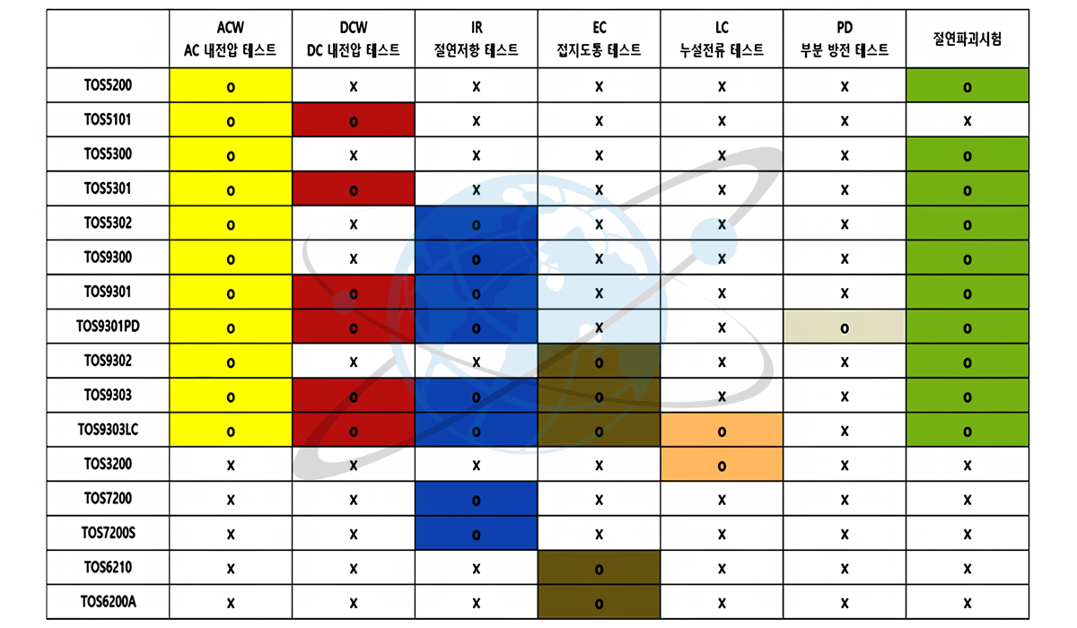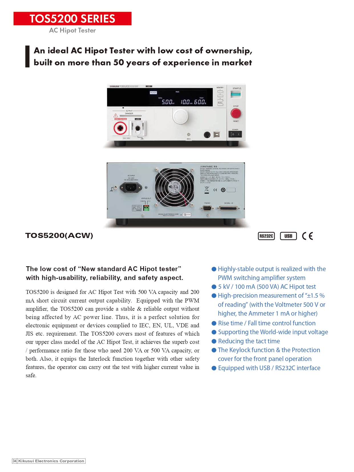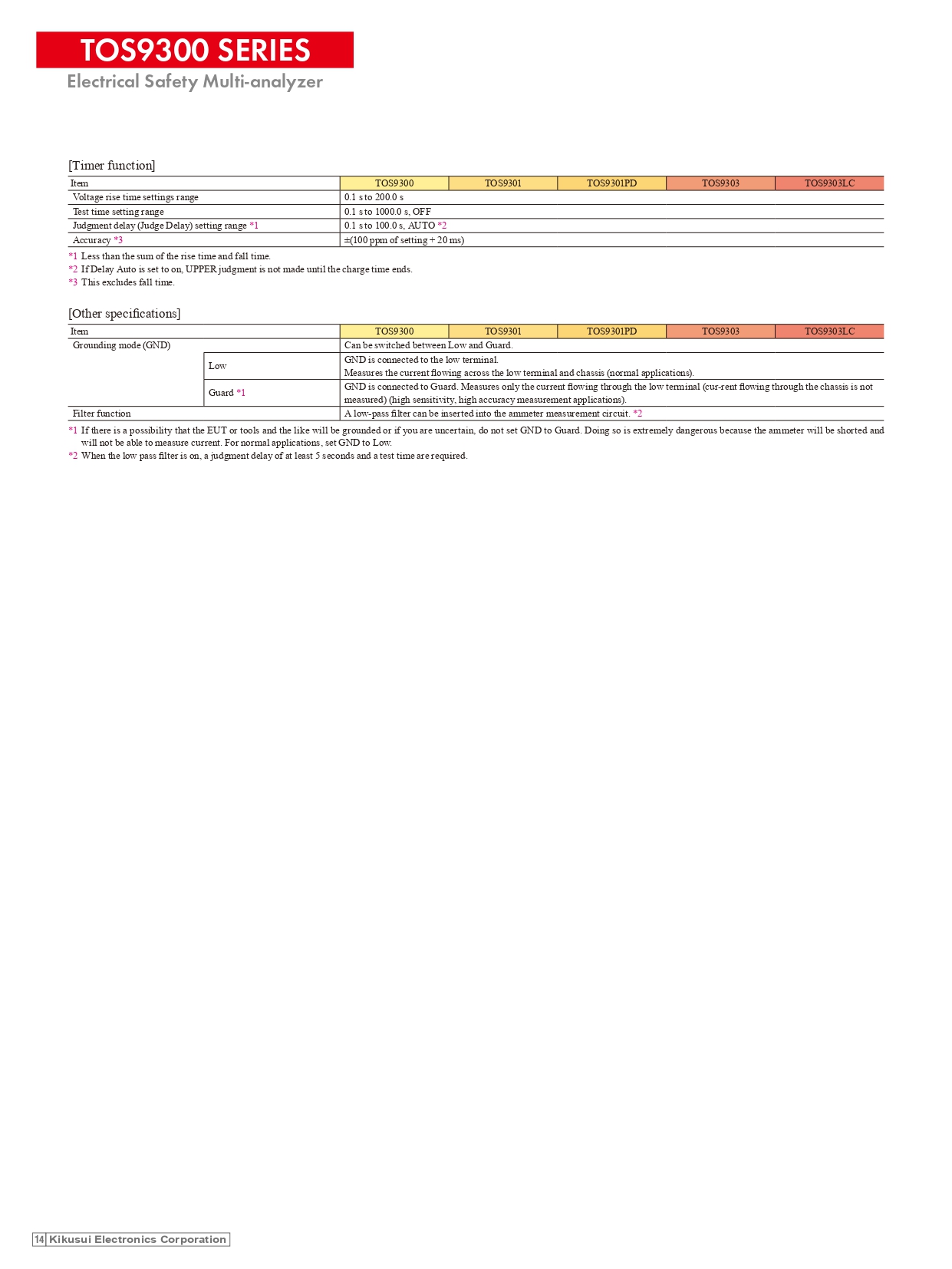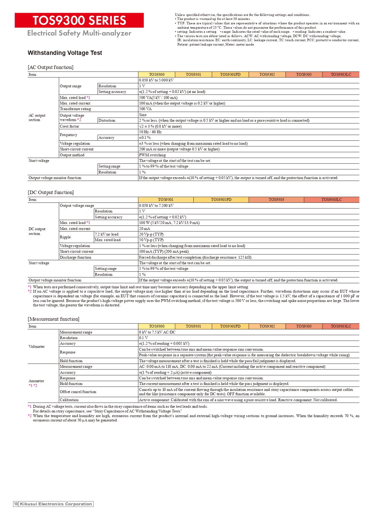 | TOS7200 | Manual...출력전압 설정범위:-25V~ -1000V、저항 측정범위:0.01〜5000M Ω 、SIGNAL I/O, 리모컨 단자 탑재、RS-232C 인터페이스 표준 장비 |