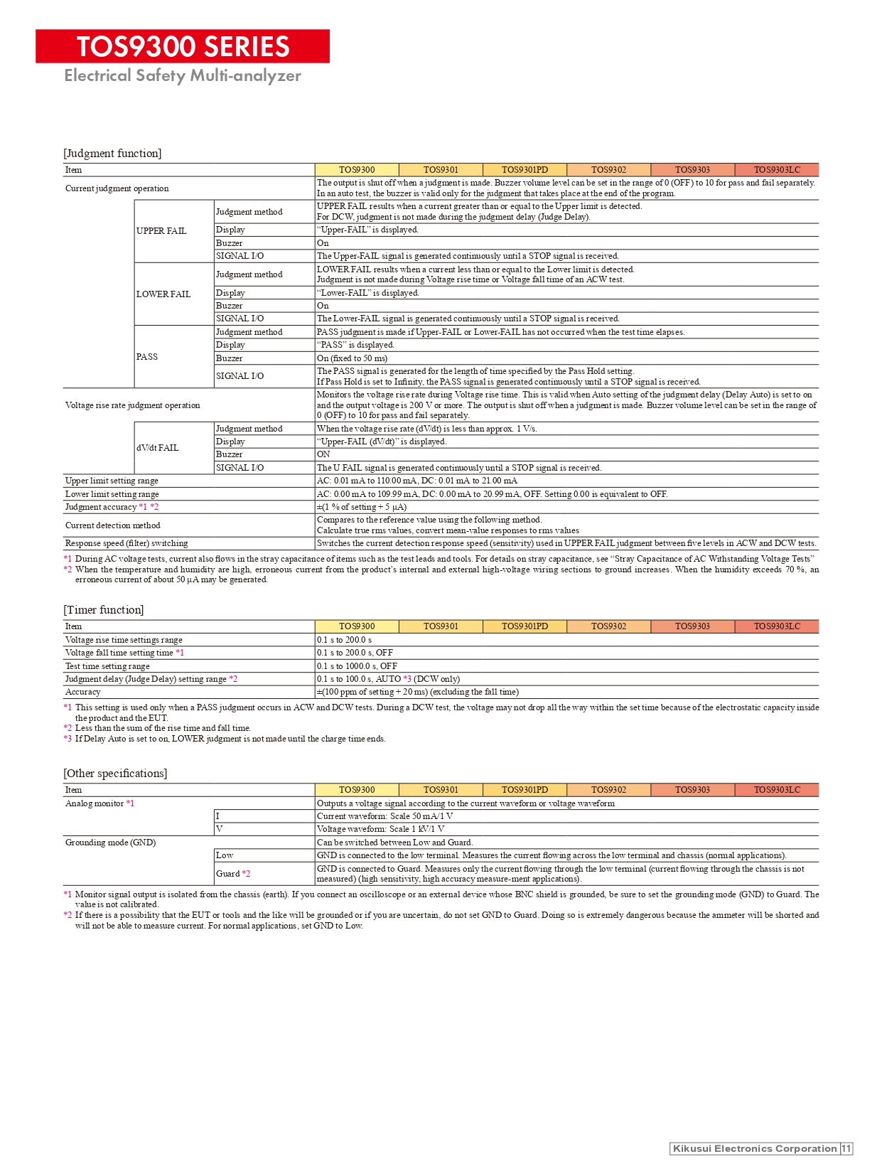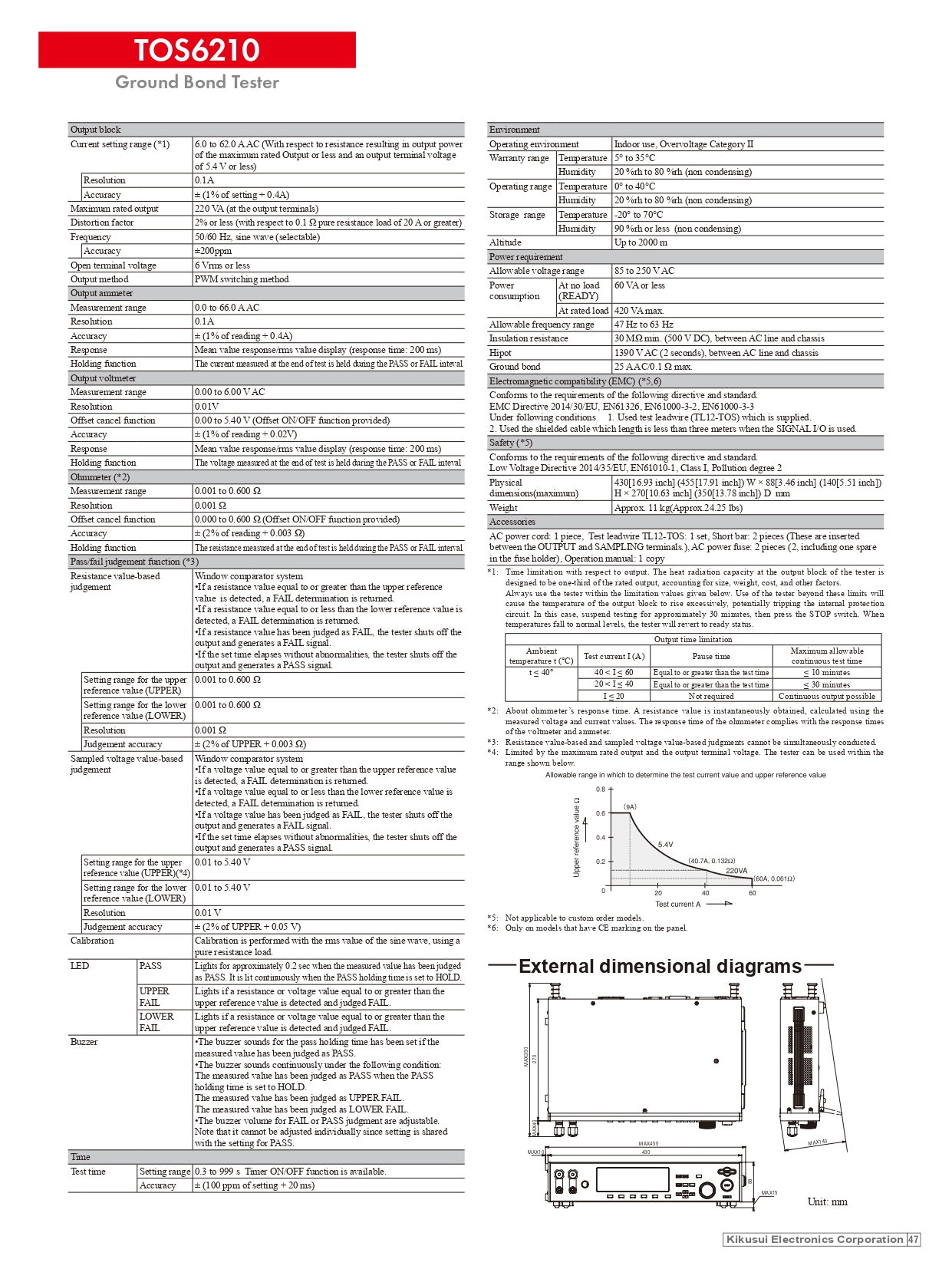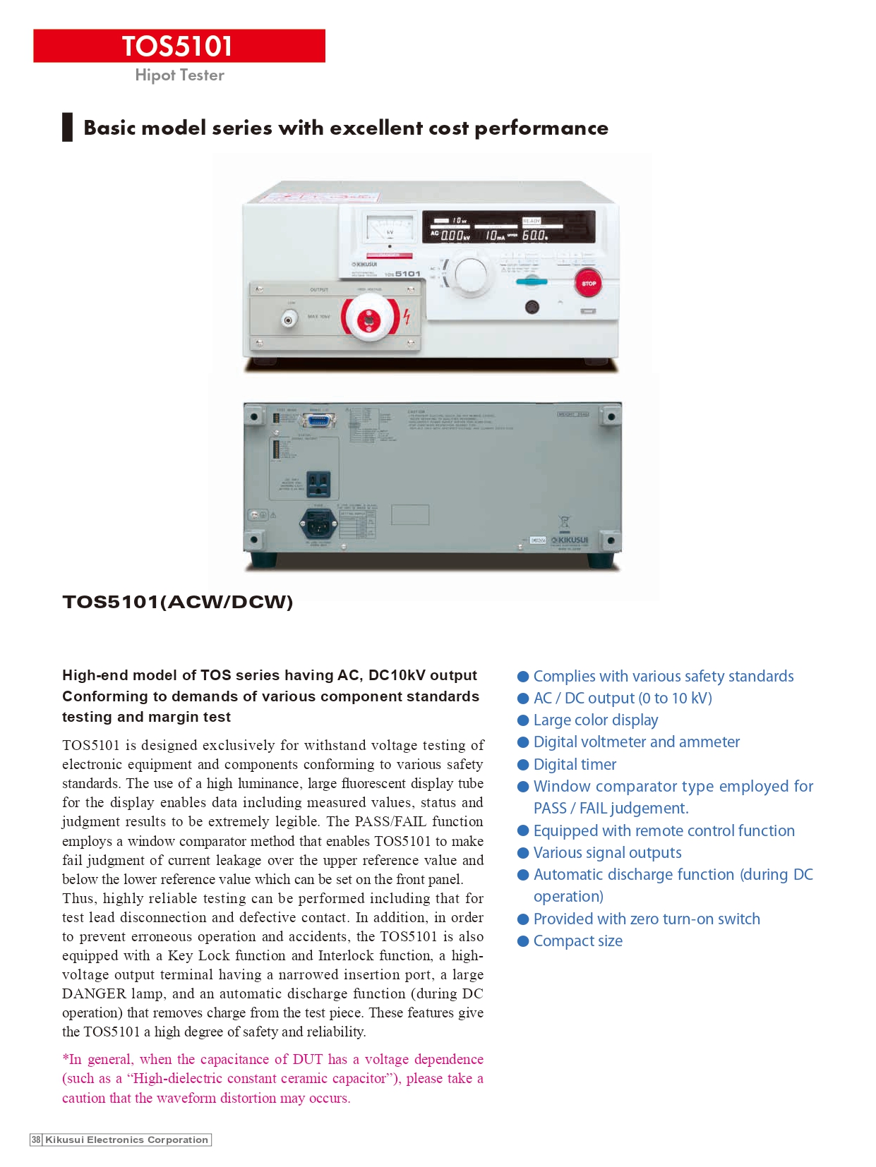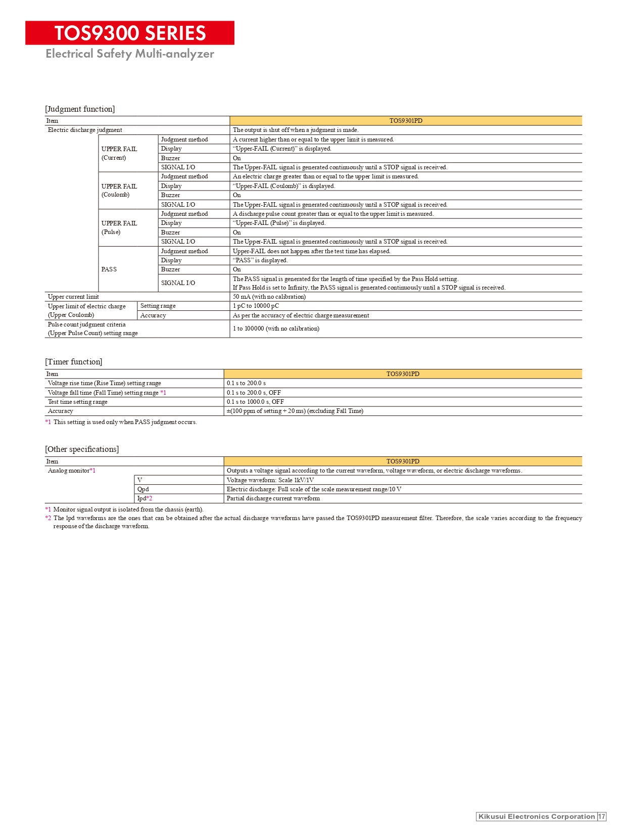 | TOS7200 | Manual...출력전압 설정범위:-25V~ -1000V、저항 측정범위:0.01〜5000M Ω 、SIGNAL I/O, 리모컨 단자 탑재、RS-232C 인터페이스 표준 장비 |