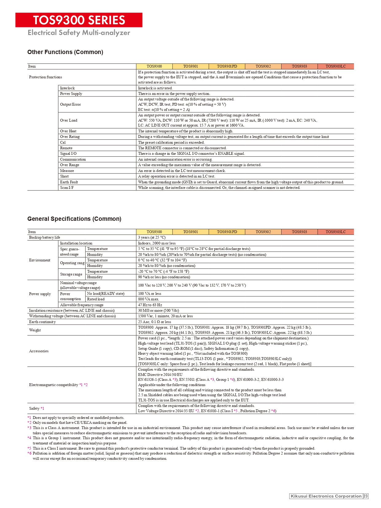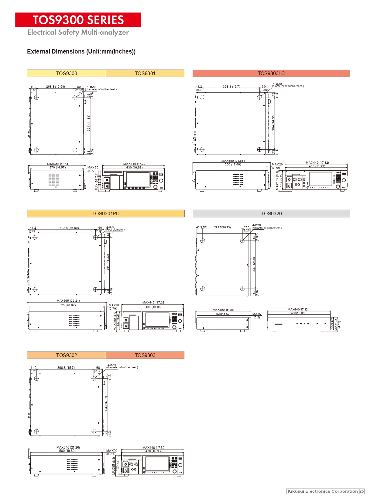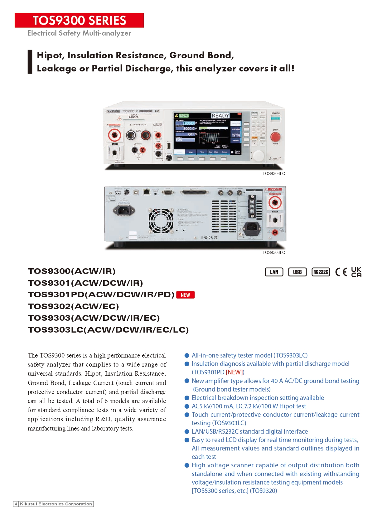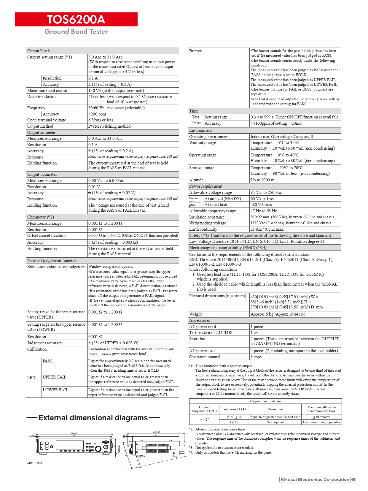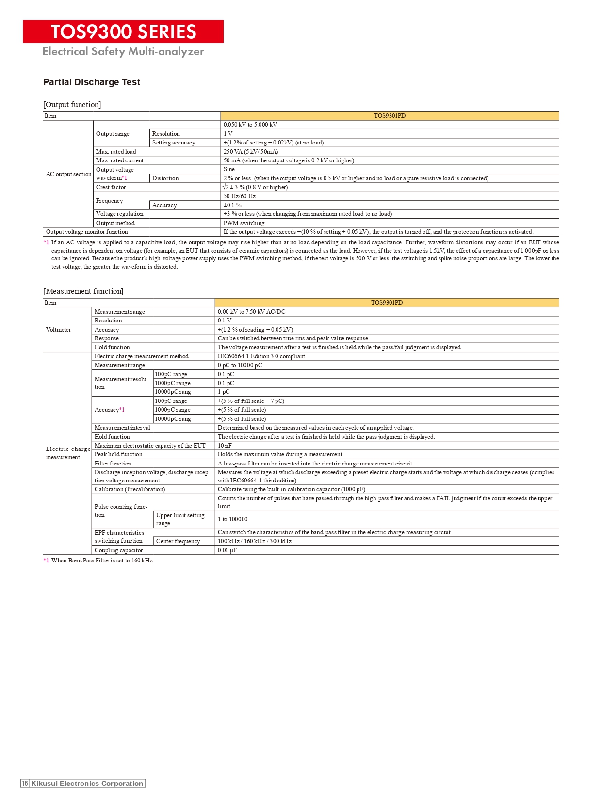 | TOS7200 | Manual...출력전압 설정범위:-25V~ -1000V、저항 측정범위:0.01〜5000M Ω 、SIGNAL I/O, 리모컨 단자 탑재、RS-232C 인터페이스 표준 장비 |