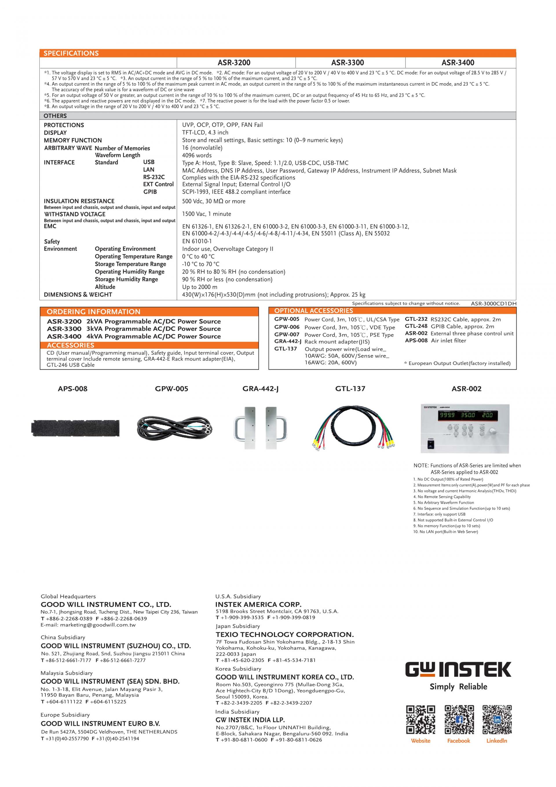 GW INSTEK ASR-3000 Series Programmable AC/DC Power Supply