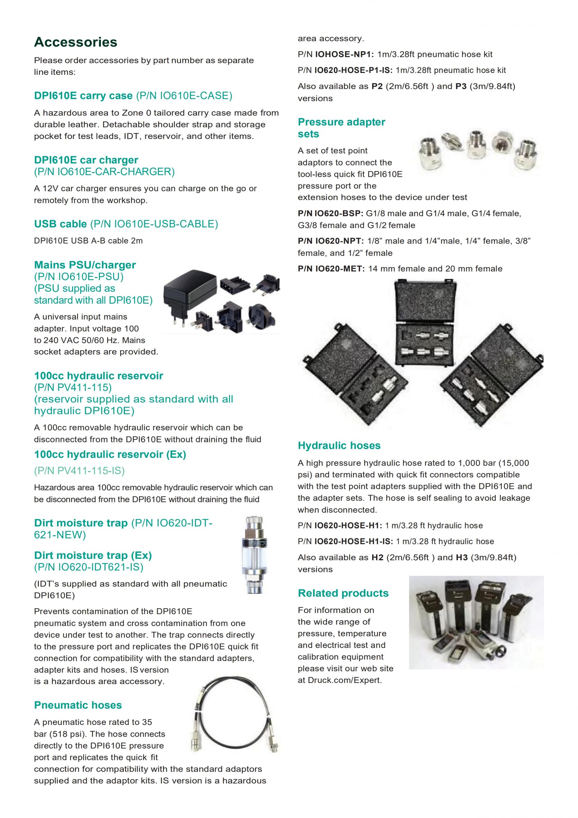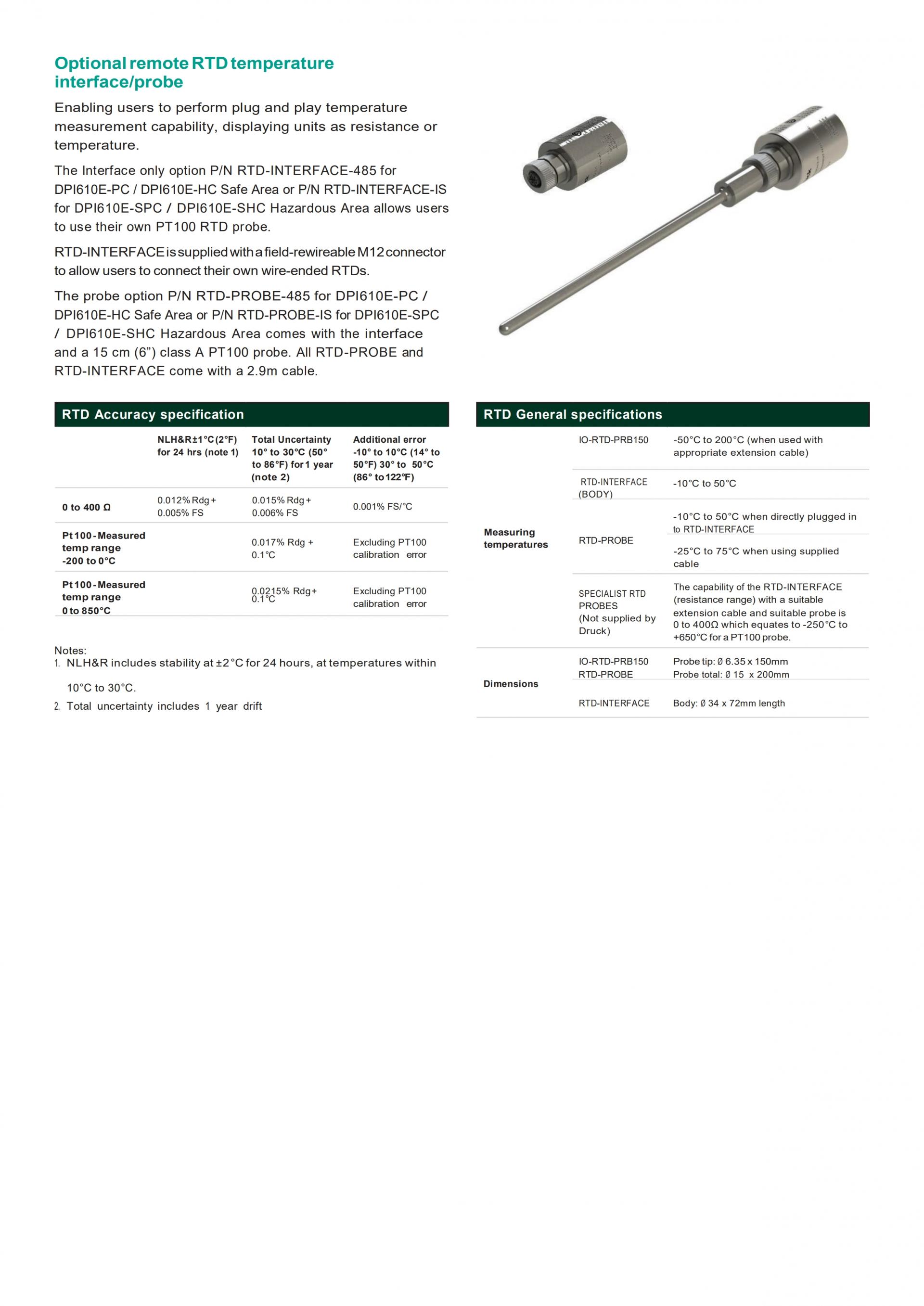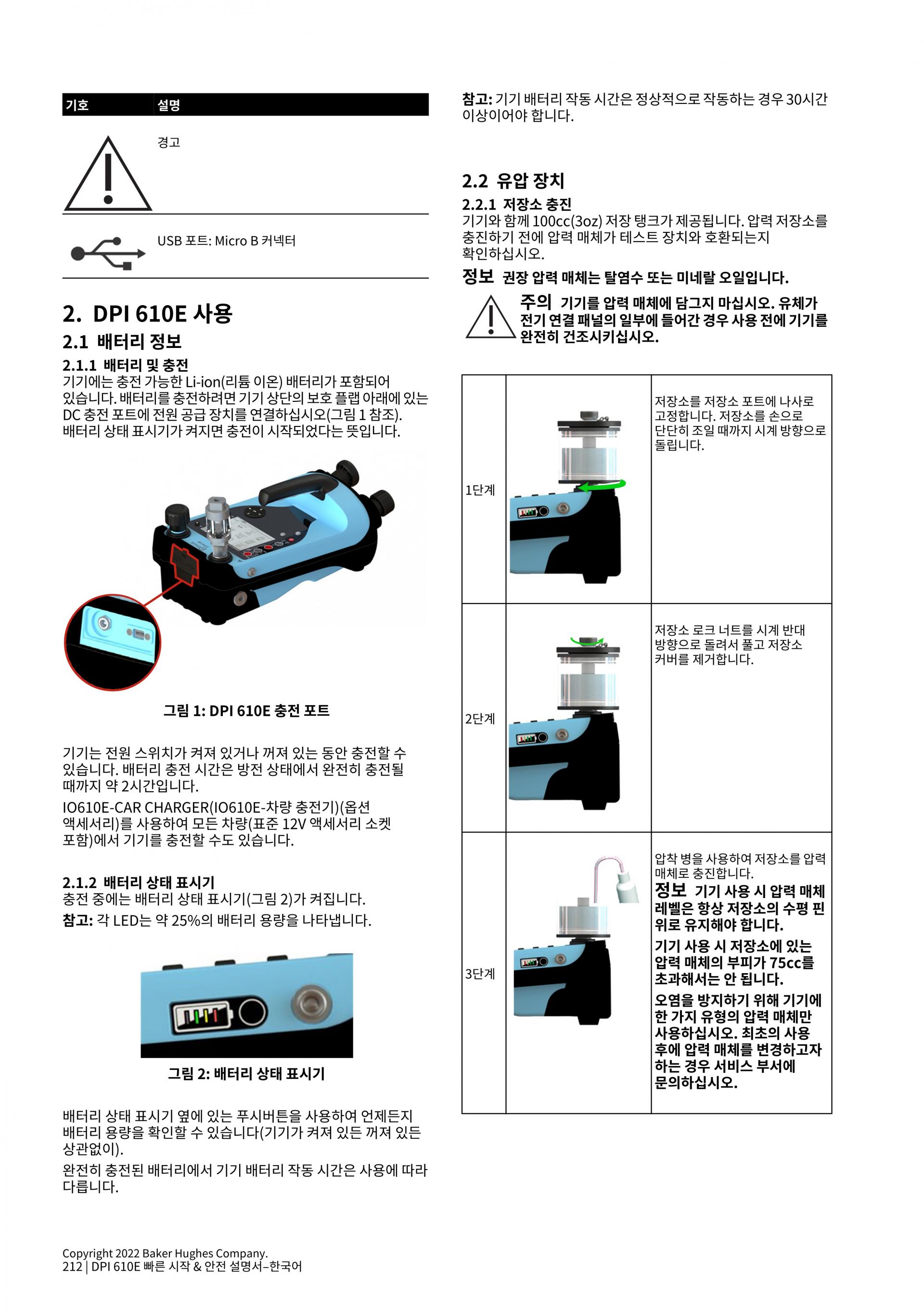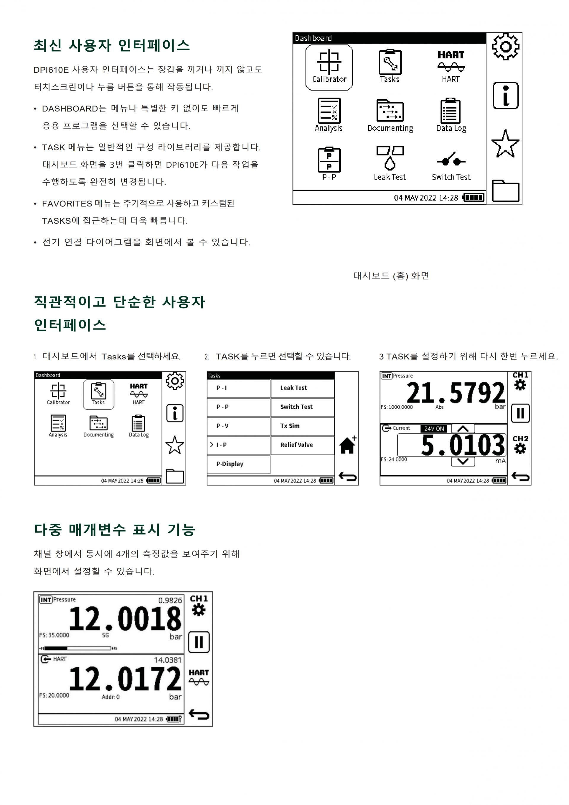 DPI610E는 이전 모델의 상징적인 핸들, 사용 편의성, 견고하고 신뢰할 수 있는 디자인을 그대로 유지하면서, 내부 기압계를 포함한 흥미롭고 새로운 기능과 교정용 기압계 포트를 제공합니다. 이 외에도 DPI610E는 향상된 배터리를 탑재하여 한 번 충전으로 2시간 동안 사용할 수 있으며, 60시간 이상 연속 사용이 가능합니다.