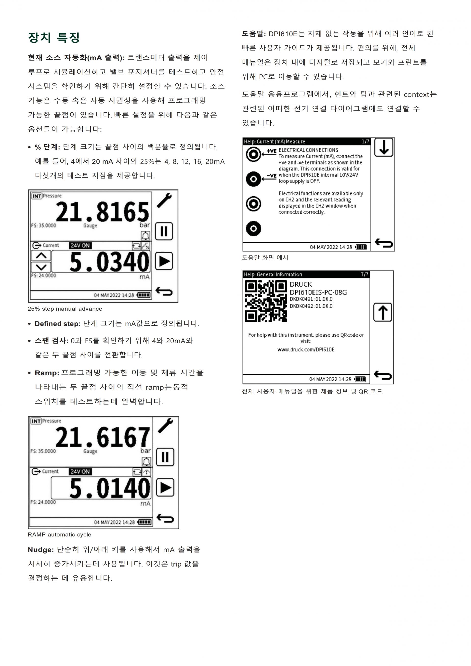 최신 휴대용 제품은 배터리 구동식, 자체 포함형 수동 압력 교정기로서, 압력 생성, 미세 제어, 루프 측정이 가능합니다. 가장 중요한 것은, 이 제품은 현장에서 일하는 사람들의 의견을 반영하여 장비 기술자를 위해 설계되었으며, 압력 교정기 사용자들의 의견을 반영하여 성능이 매우 중요하다는 것을 확인했습니다.