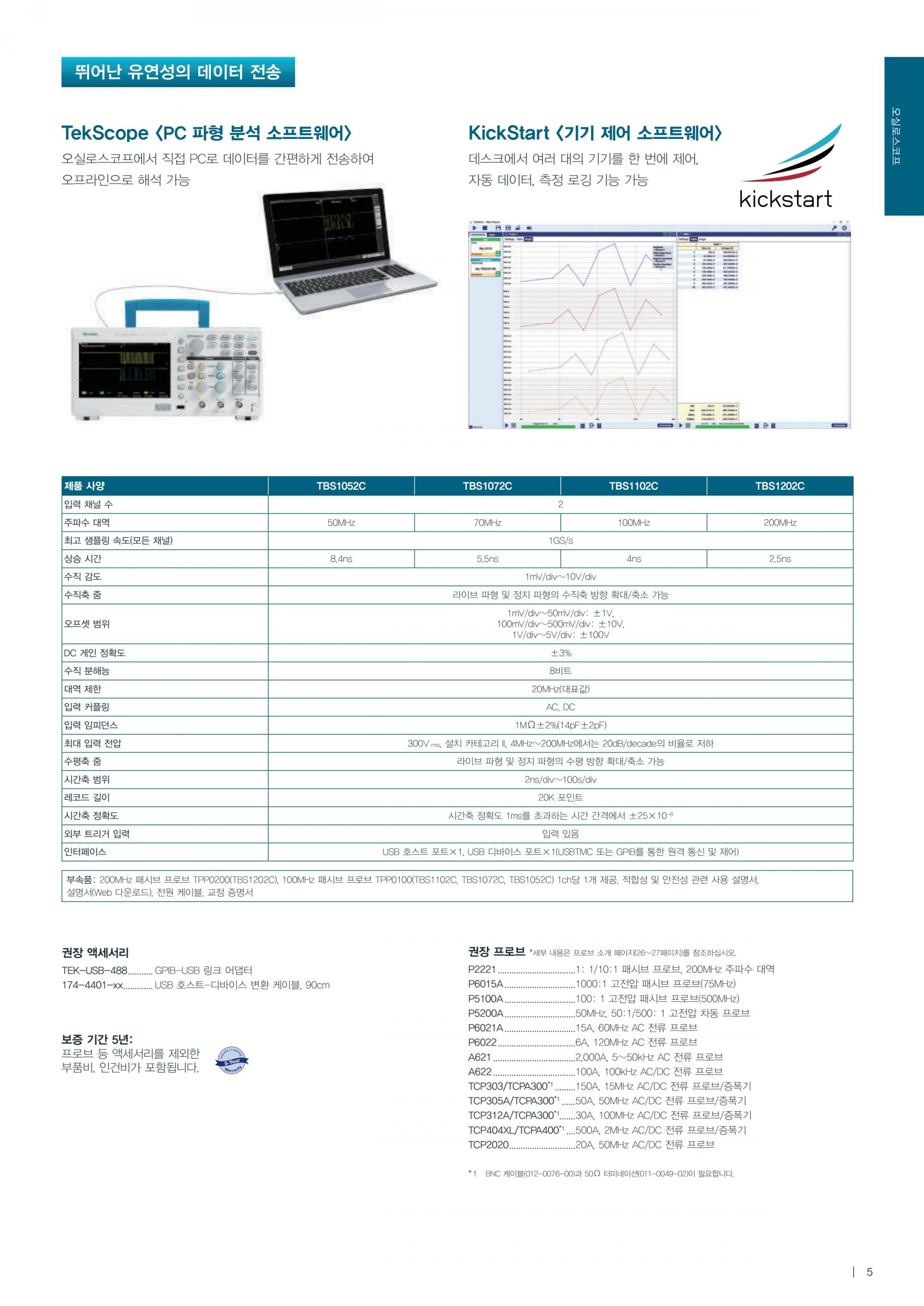 TBS1000C는 최대 1GS/s의 샘플링 속도, 50MHz~200MHz의 대역폭 및 5년 보증을 제공하며 7인치 WVGA 컬러 디스플레이가 포함됩니다.