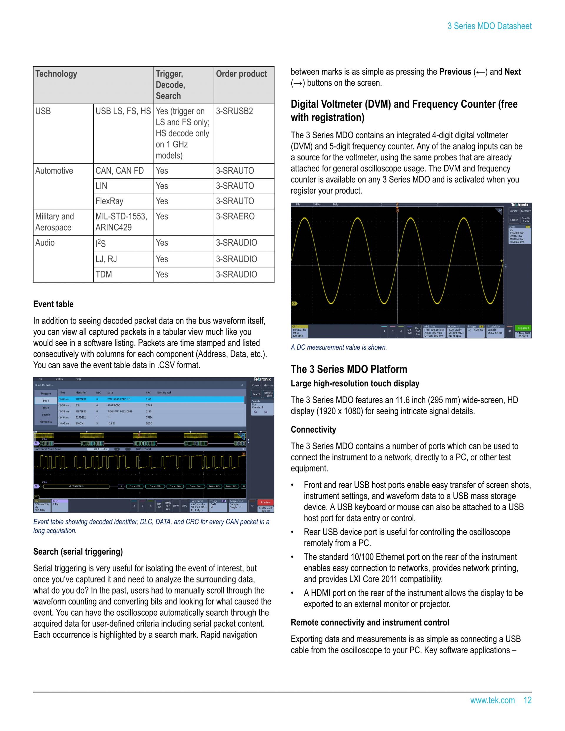 3 시리즈 MDO 혼합 도메인 오실로스코프