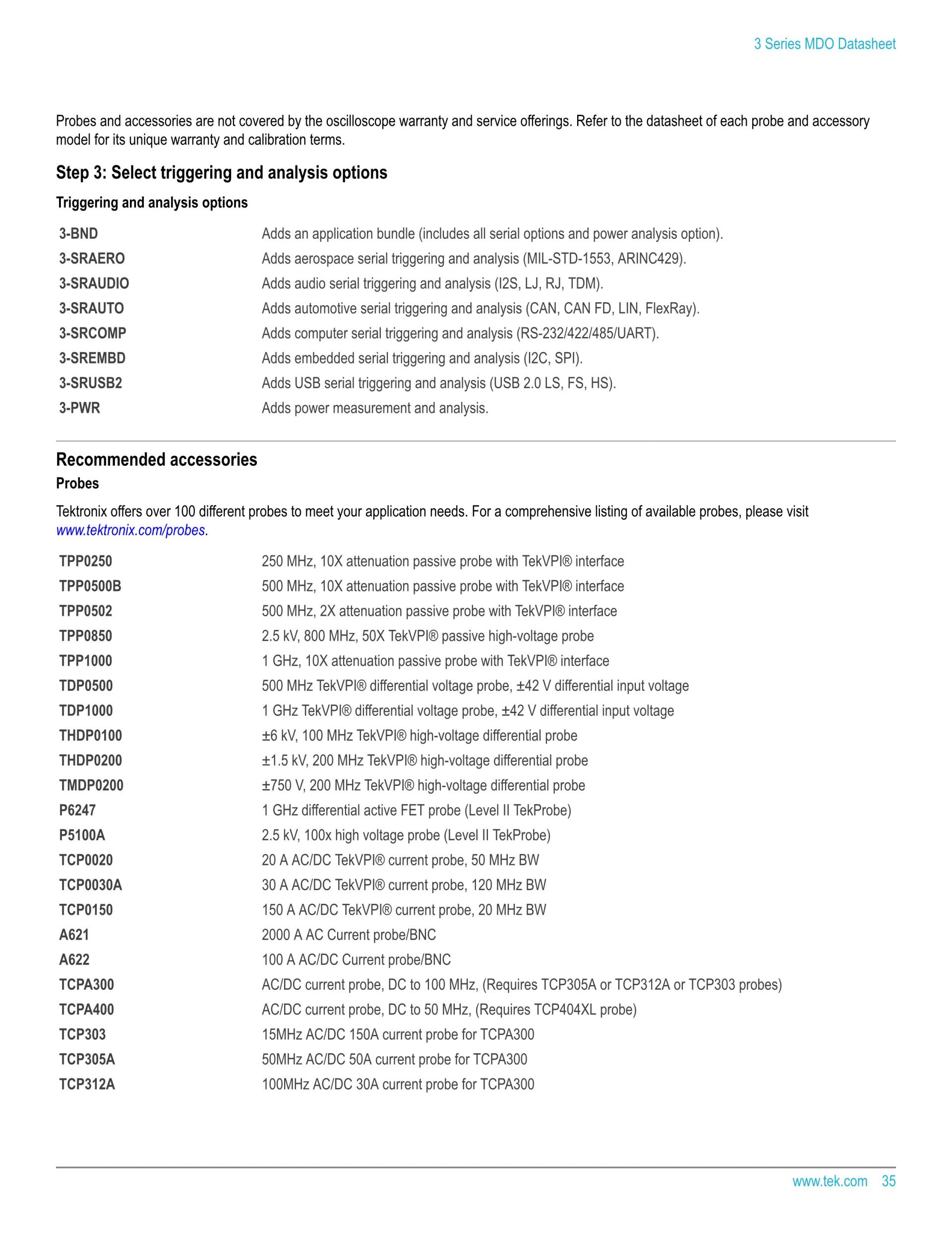 - TPP 프로브 시리즈는 스탠더드를 포함합니다. 아날로그 채널 당 1개.