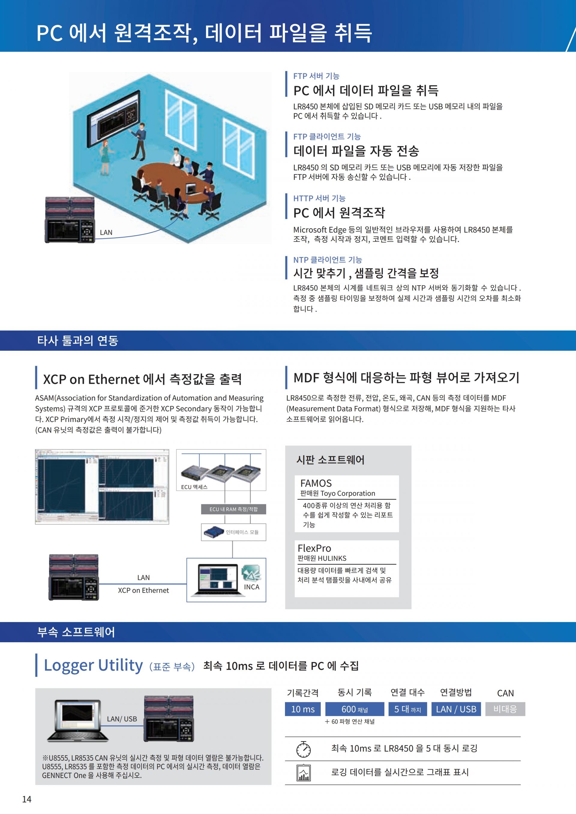 - 전압, 열전대에 의한 온도측정, 습도 측정, 30 ch, 20 ms 샘플링, 사용 ch수가 15 이하에서는 10 ms