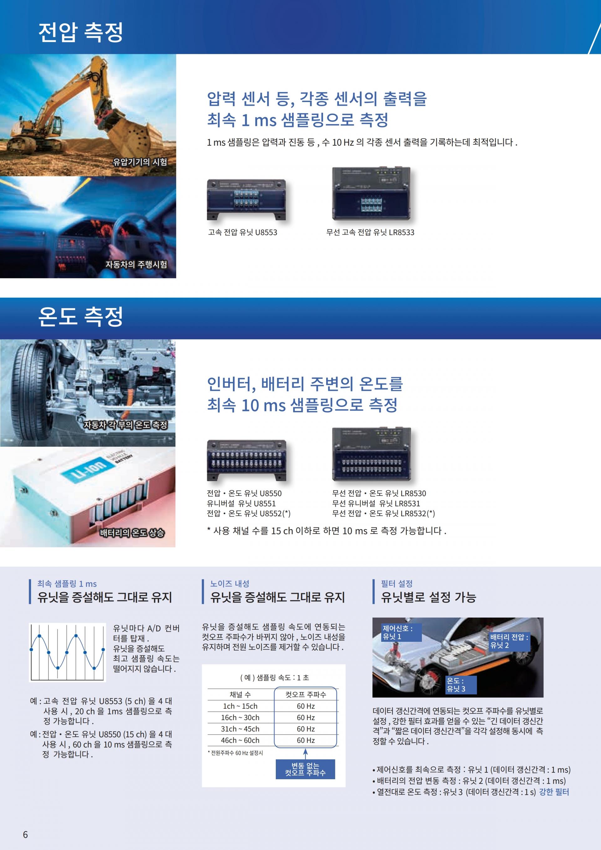 -전압, 열전대, 습도, Pt100/JPt100, 저항측정, 15 ch, 10 ms 샘플링