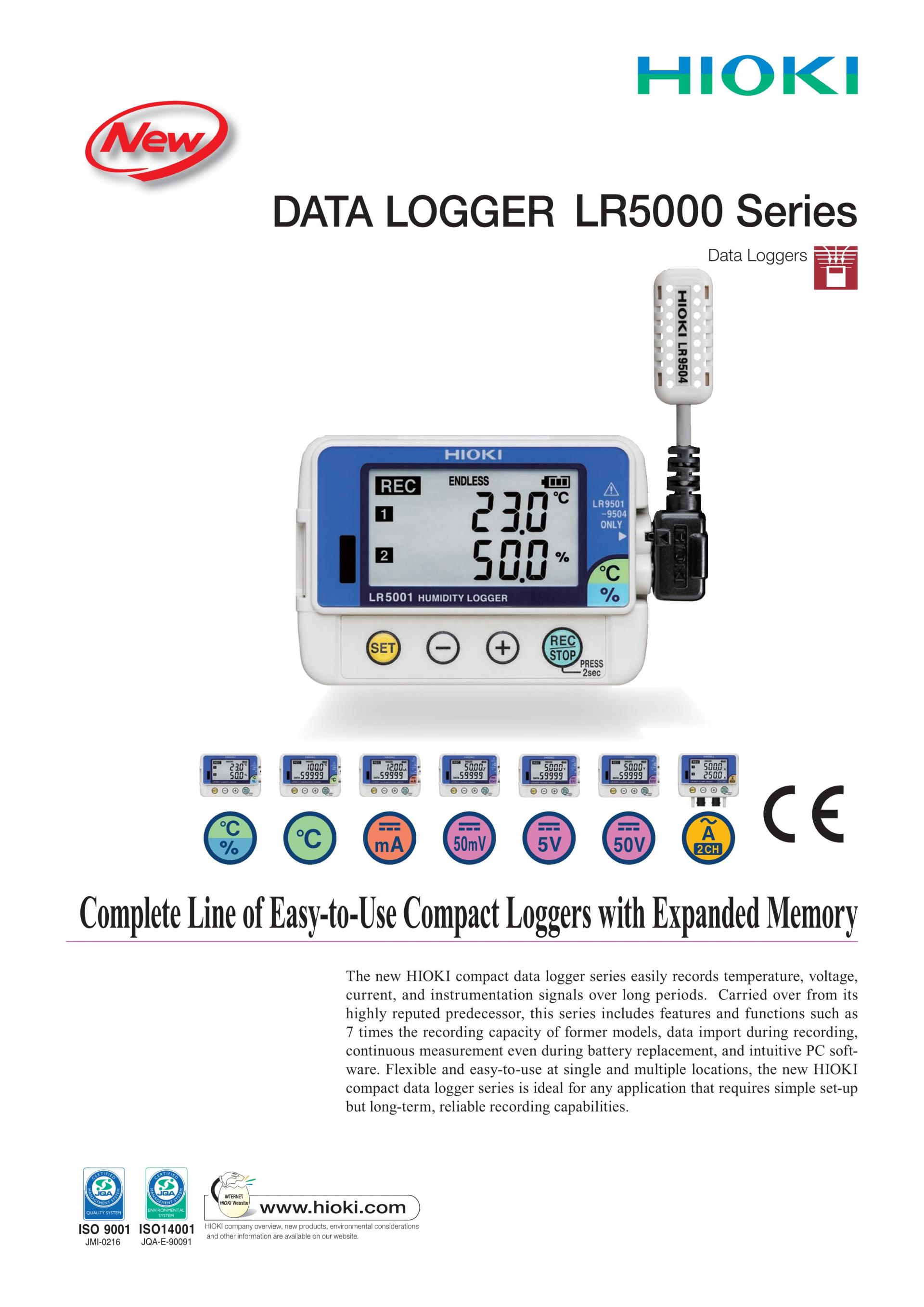 ※ LR5000s 데이터 미니로 기록한 데이터의 수집 및 PC 전송에는 별도로 LR5091 또는 LR5092 중 하나가 필요합니다.