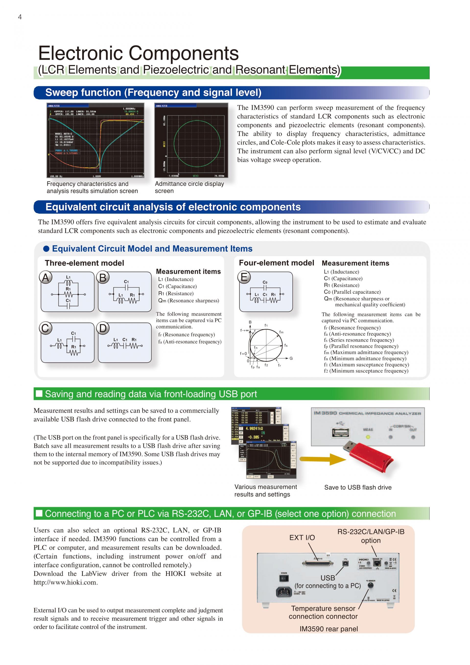 - Cole - Cole 플롯, 등가 회로 해석 등 전기화학 부품 및 재료의 임피던스 (LCR) 측정에 대응