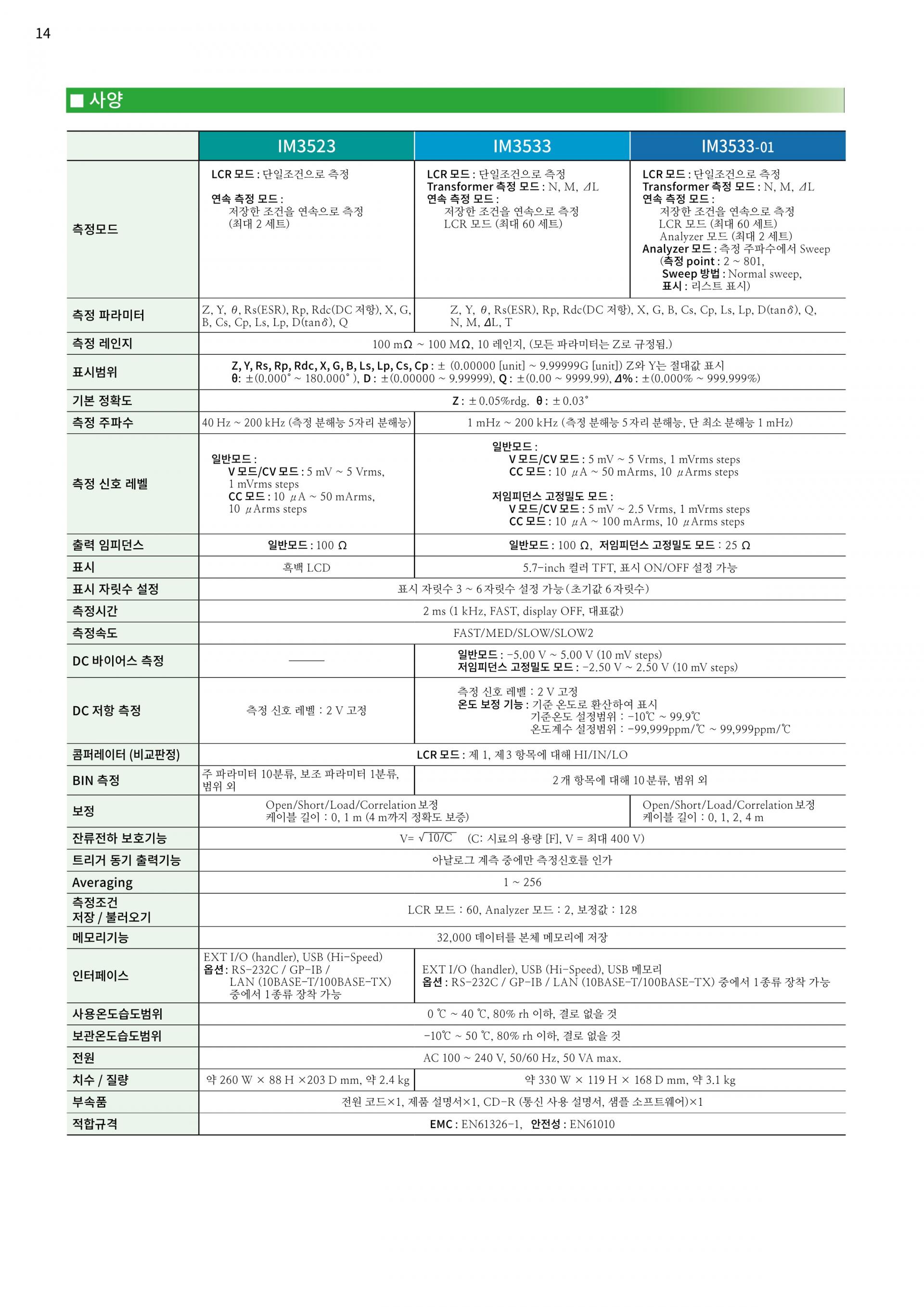- 측정 시간 2msec의 고속 측정 ※ IM3523 / 3533 공통