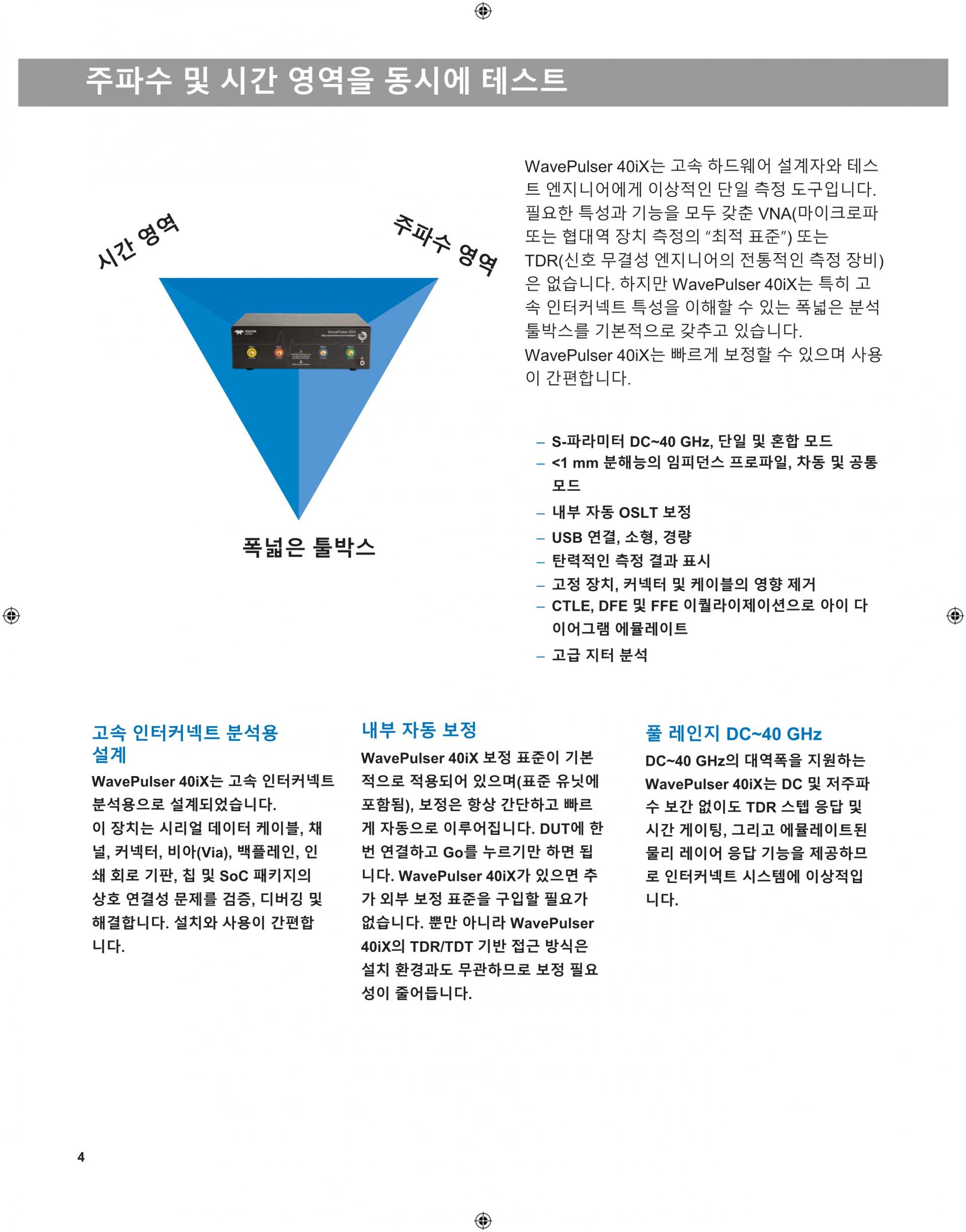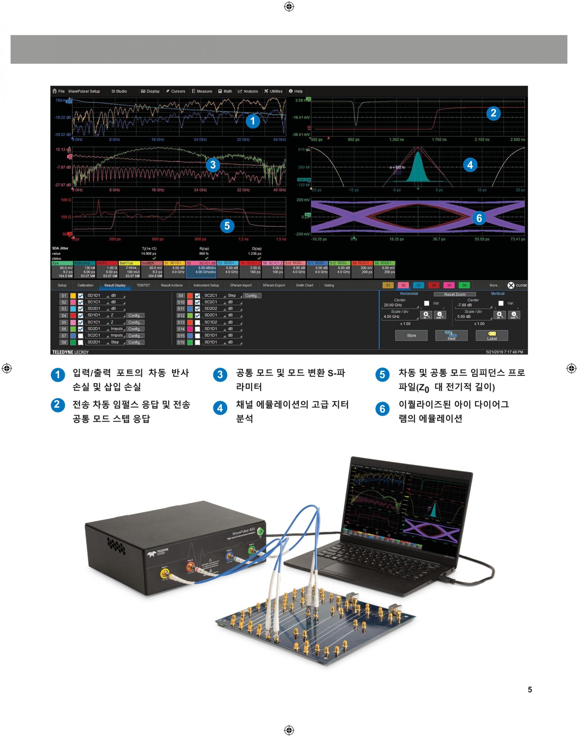 WavePulser 결과를 DC에 제공하고 대역폭을 40GHz로 확장하므로 TDR 스텝 응답과 타임 게이팅 및/또는 에뮬레이트된 물리 계층 신호 응답은 저주파 및 DC 응답을 실측하므로 인터커넥트 시스템 분석에 이상적입니다. 고속 상호 연결 테스트를 위한 설정 및 유용성. |