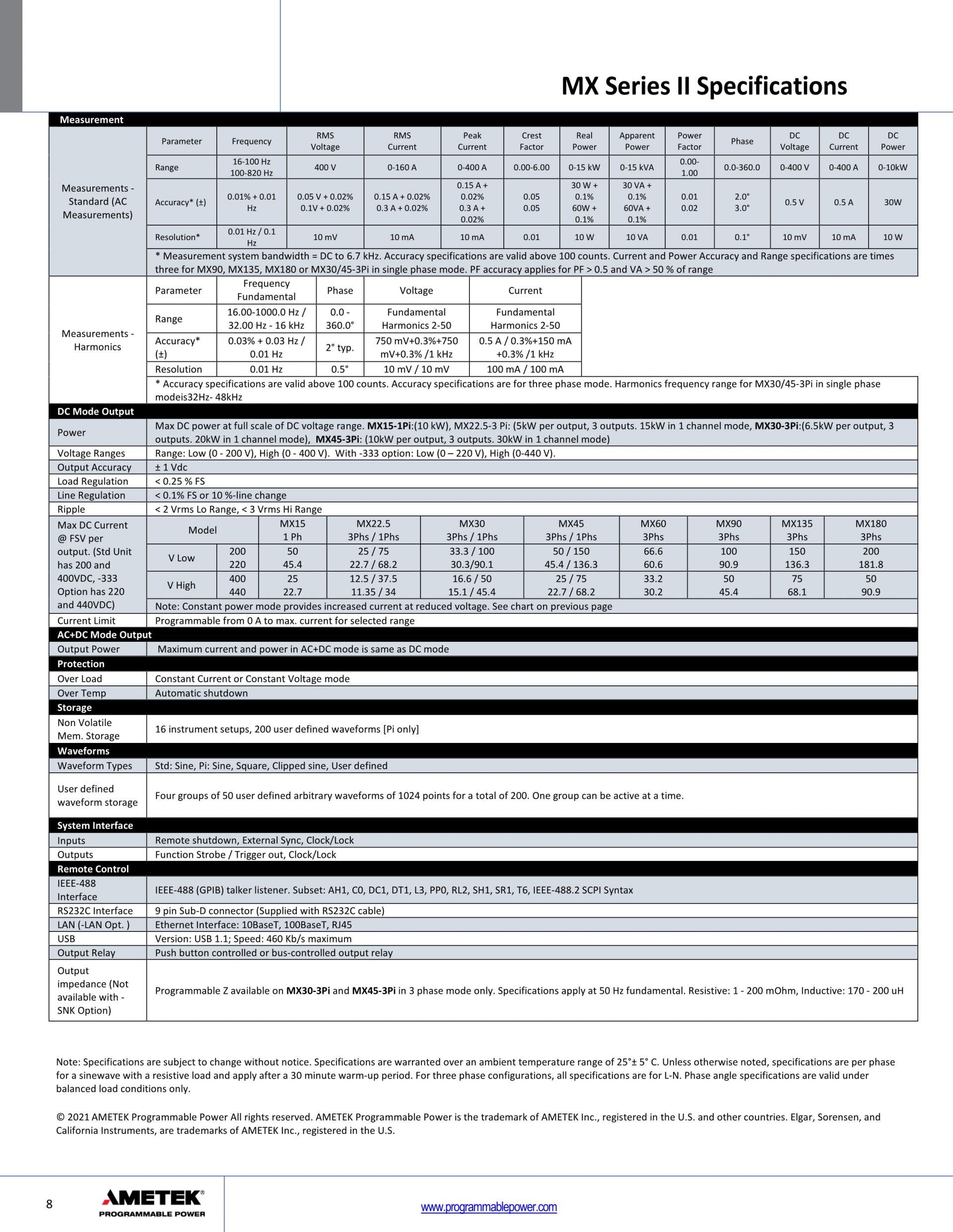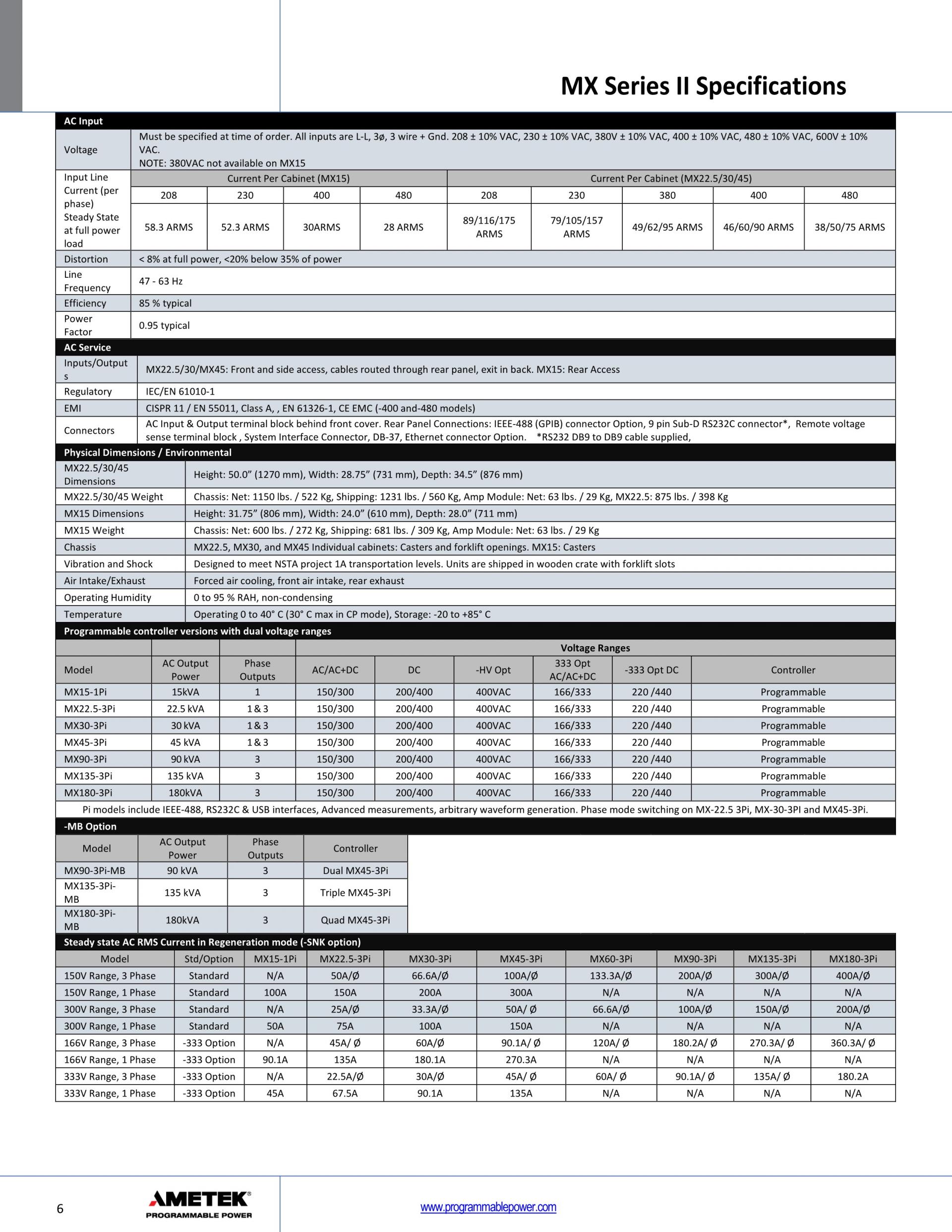 AMETEK MX SERIES High Power AC and DC Power Source