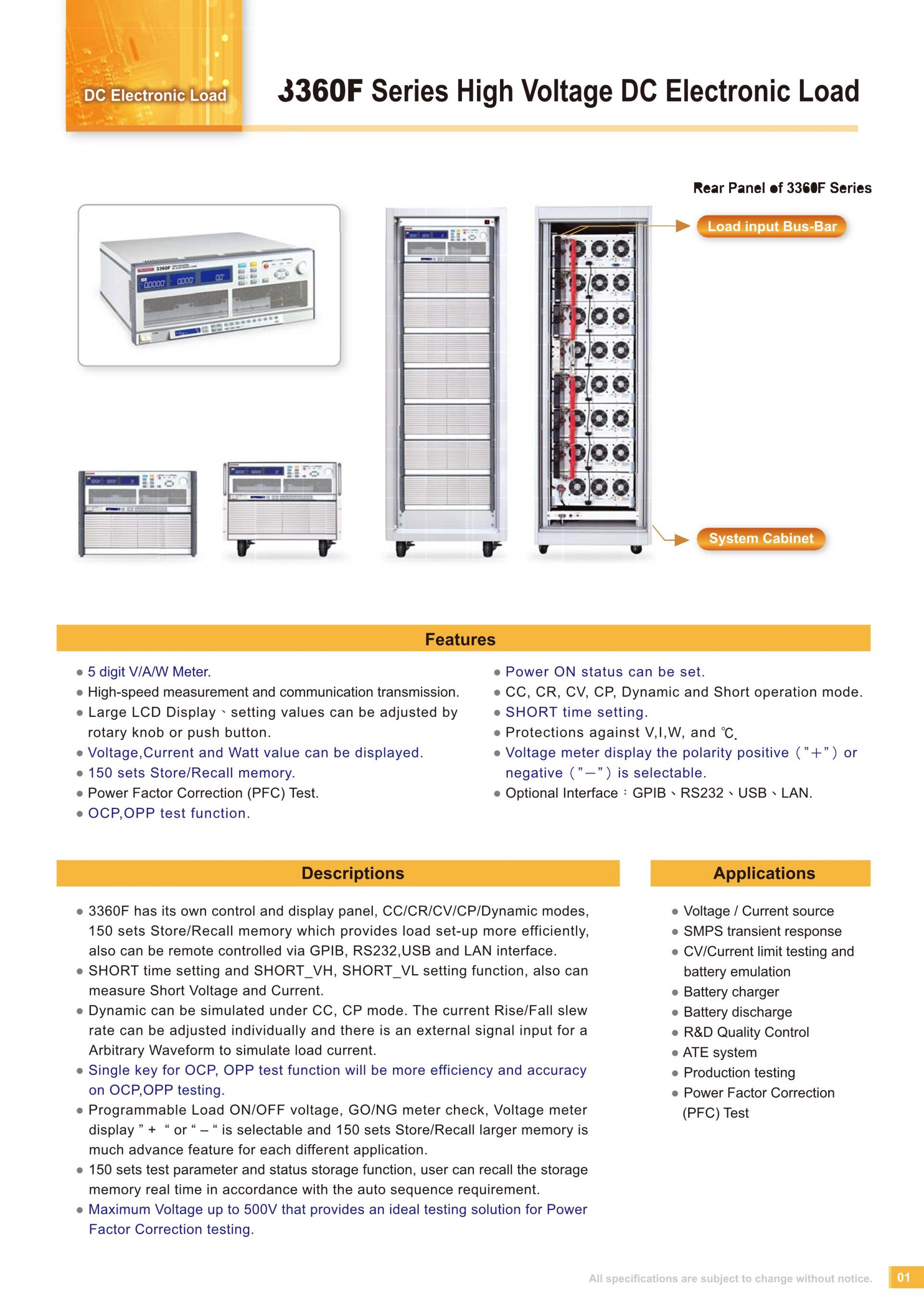 - 3360F has its own control and display panel, CC/CR/CV/CP/Dynamic modes, 150 sets Store/Recall memory which provides load set-up more efficiently, also can be remote controlled via GPIB, RS232,USB and LAN interface.