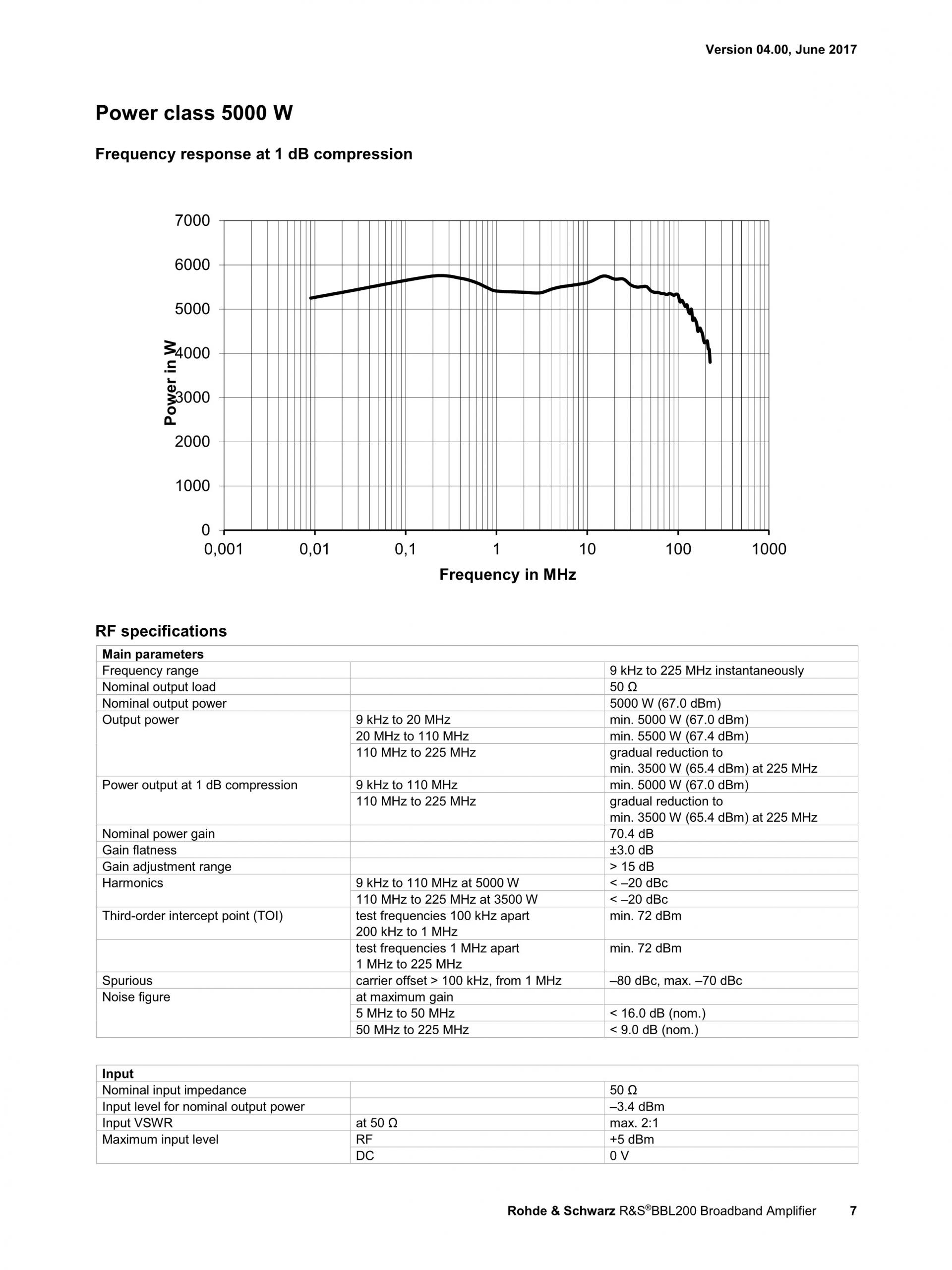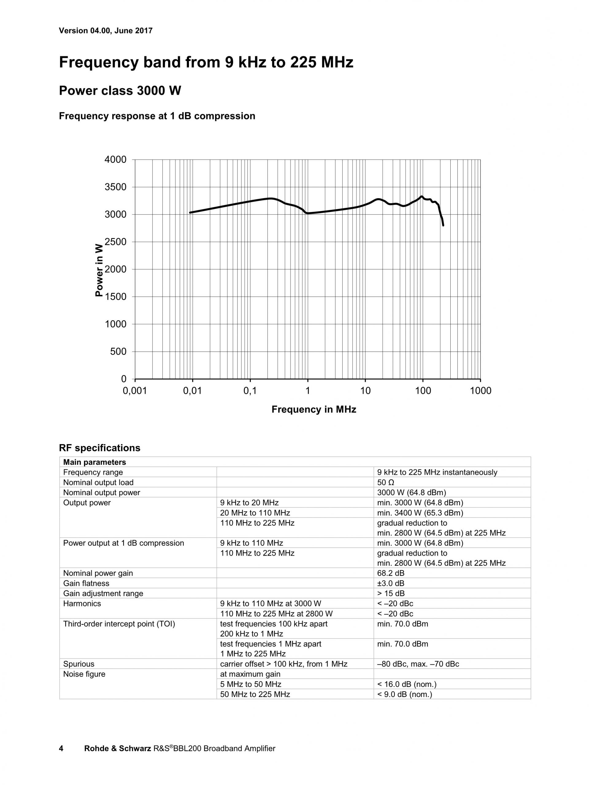 - 1 dB 압축점에서 3000 W, 5000 W 또는 10000 W 출력